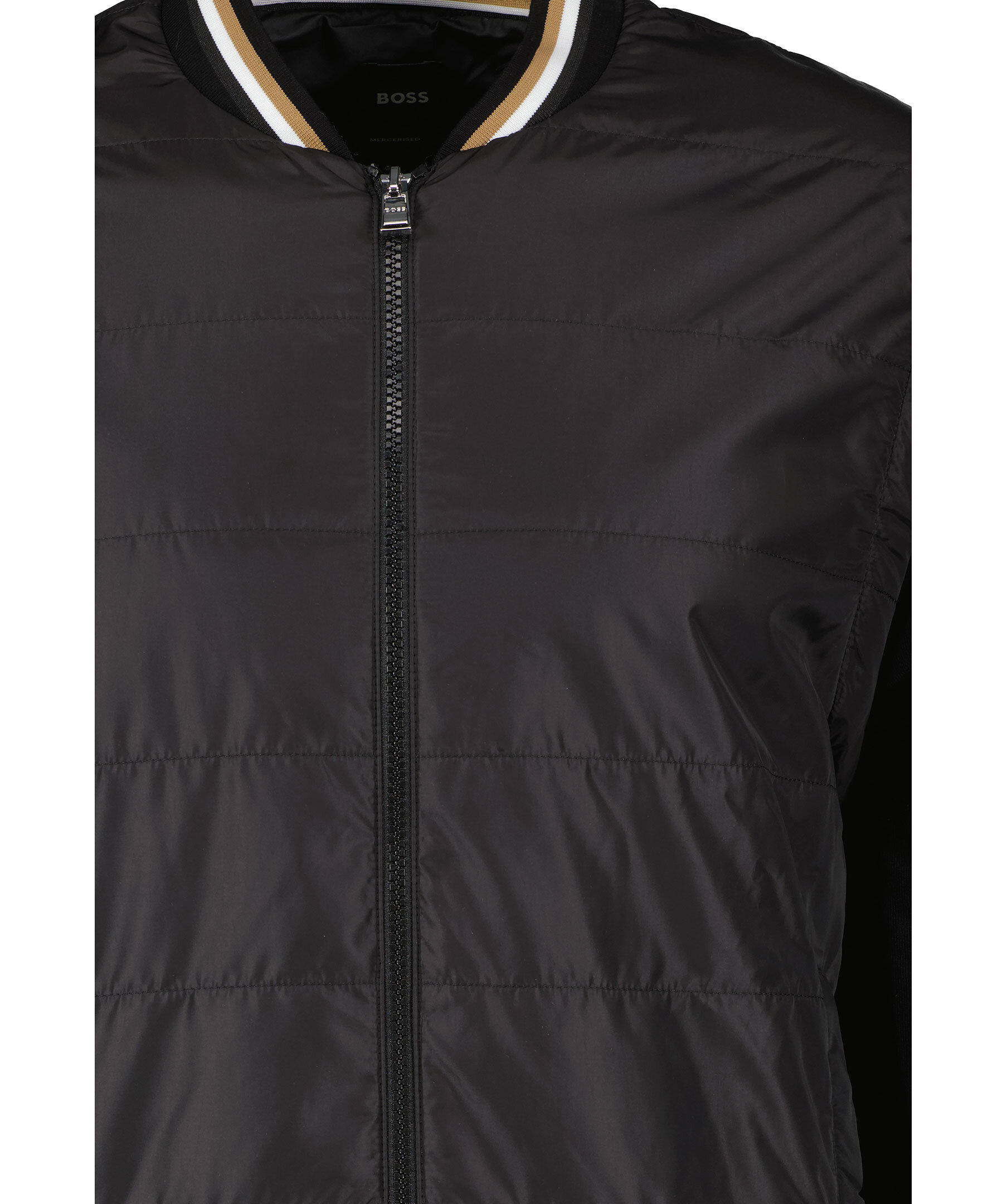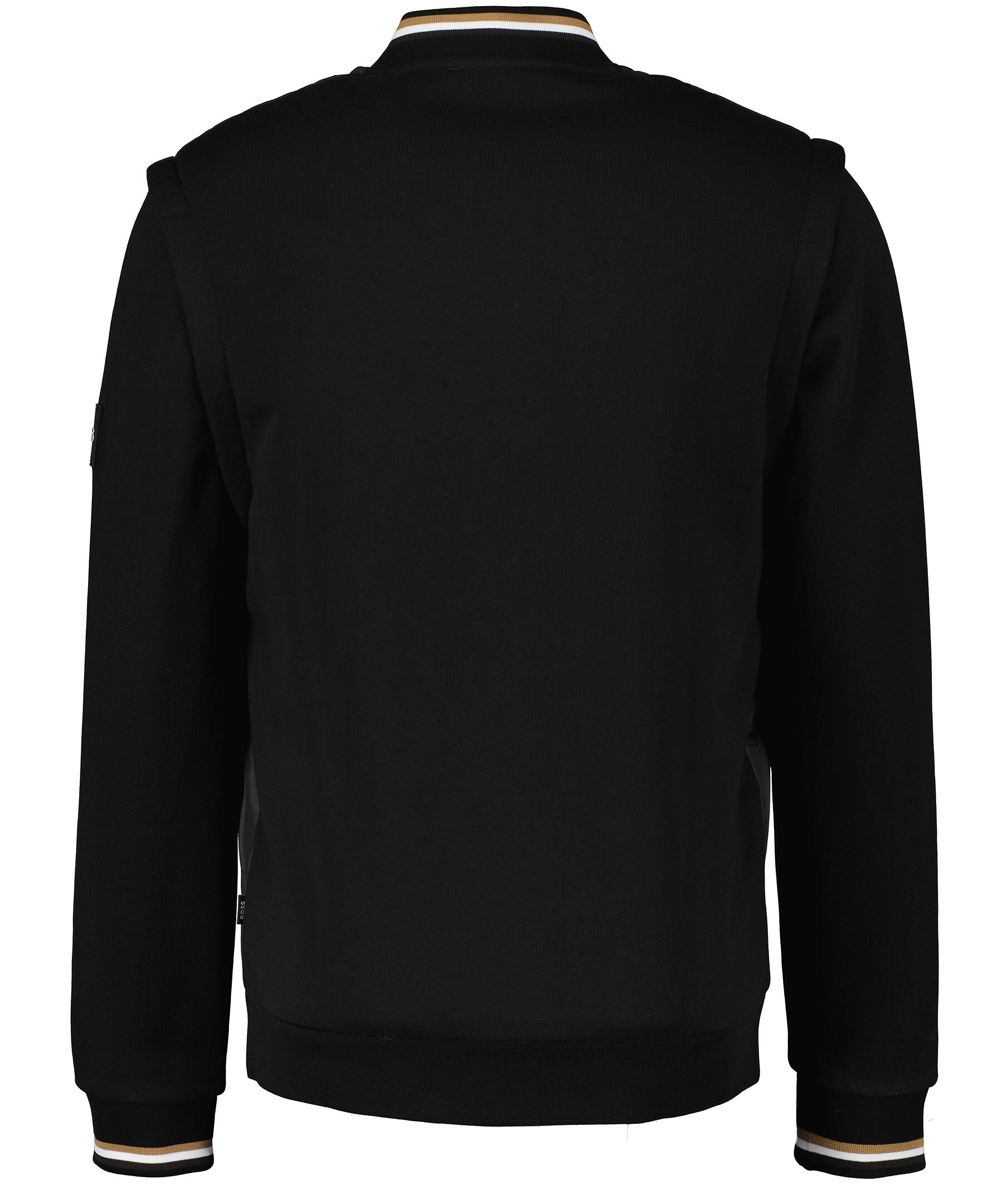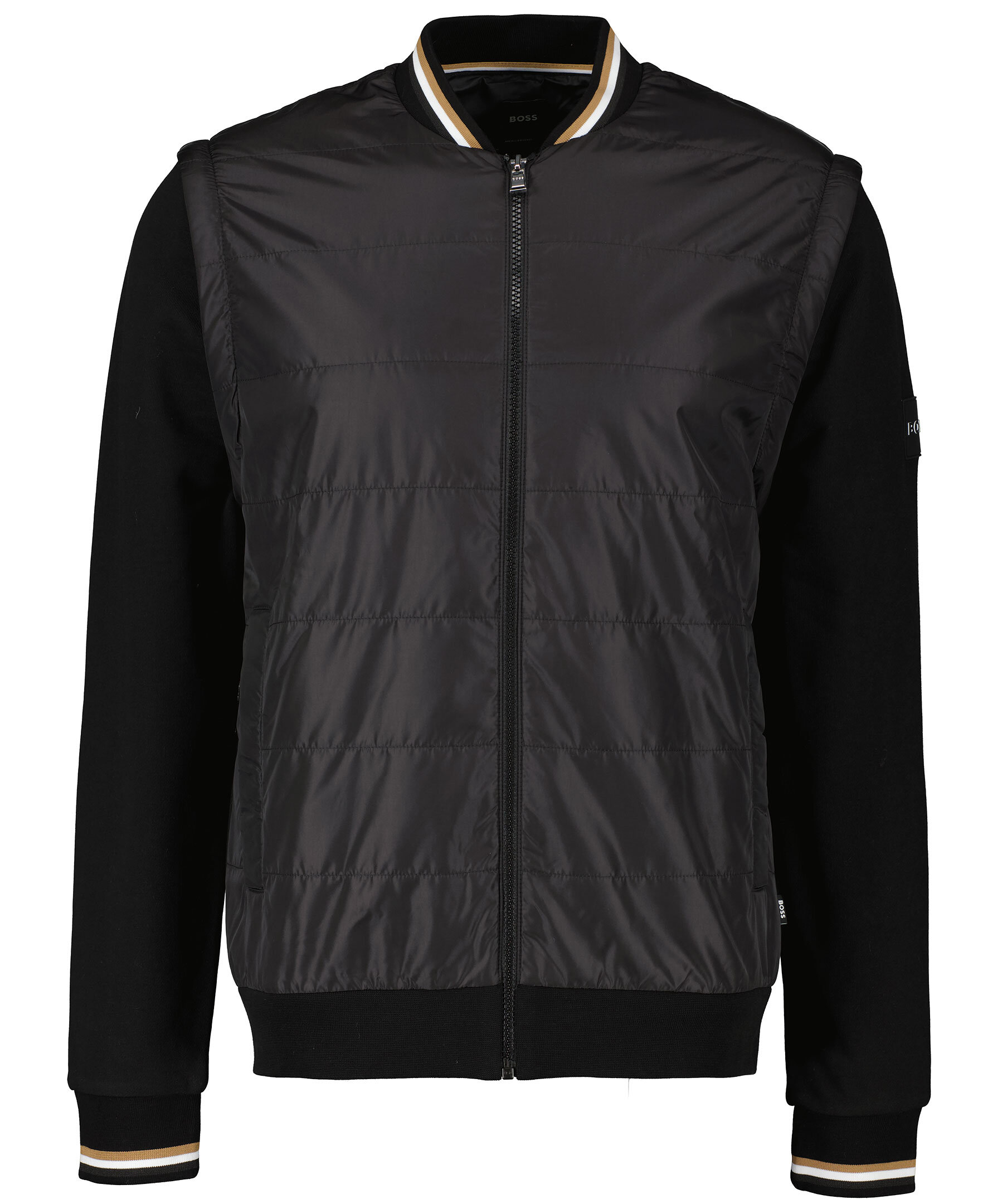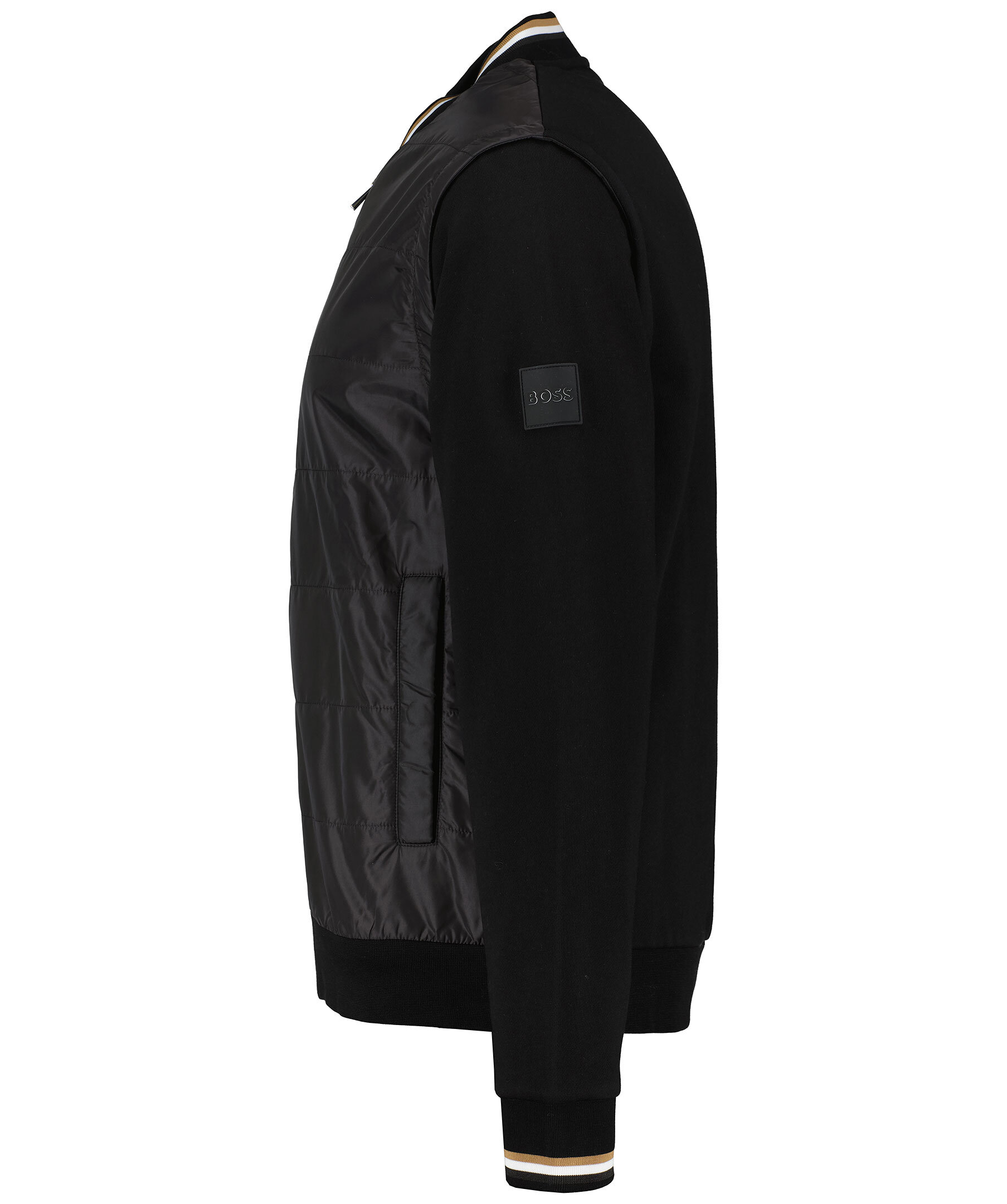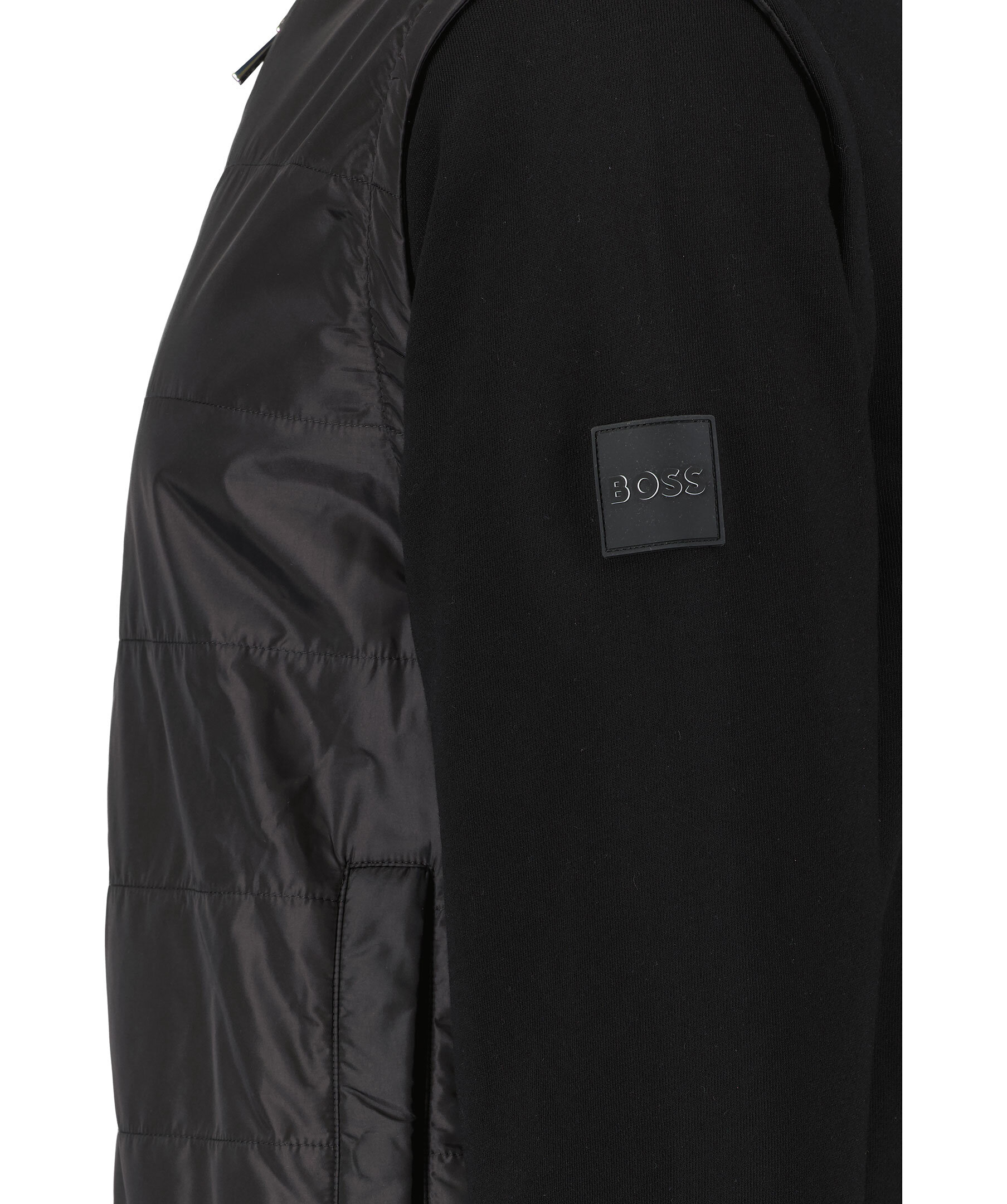 Svart sweatshirt med dragkedja i normal passform från BOSS Black Menswear. Designad i bomull med en kontrasterande vadderad framsida och signaturrandiga kantdetaljer. Två sidfickor som stängs med knäppning.