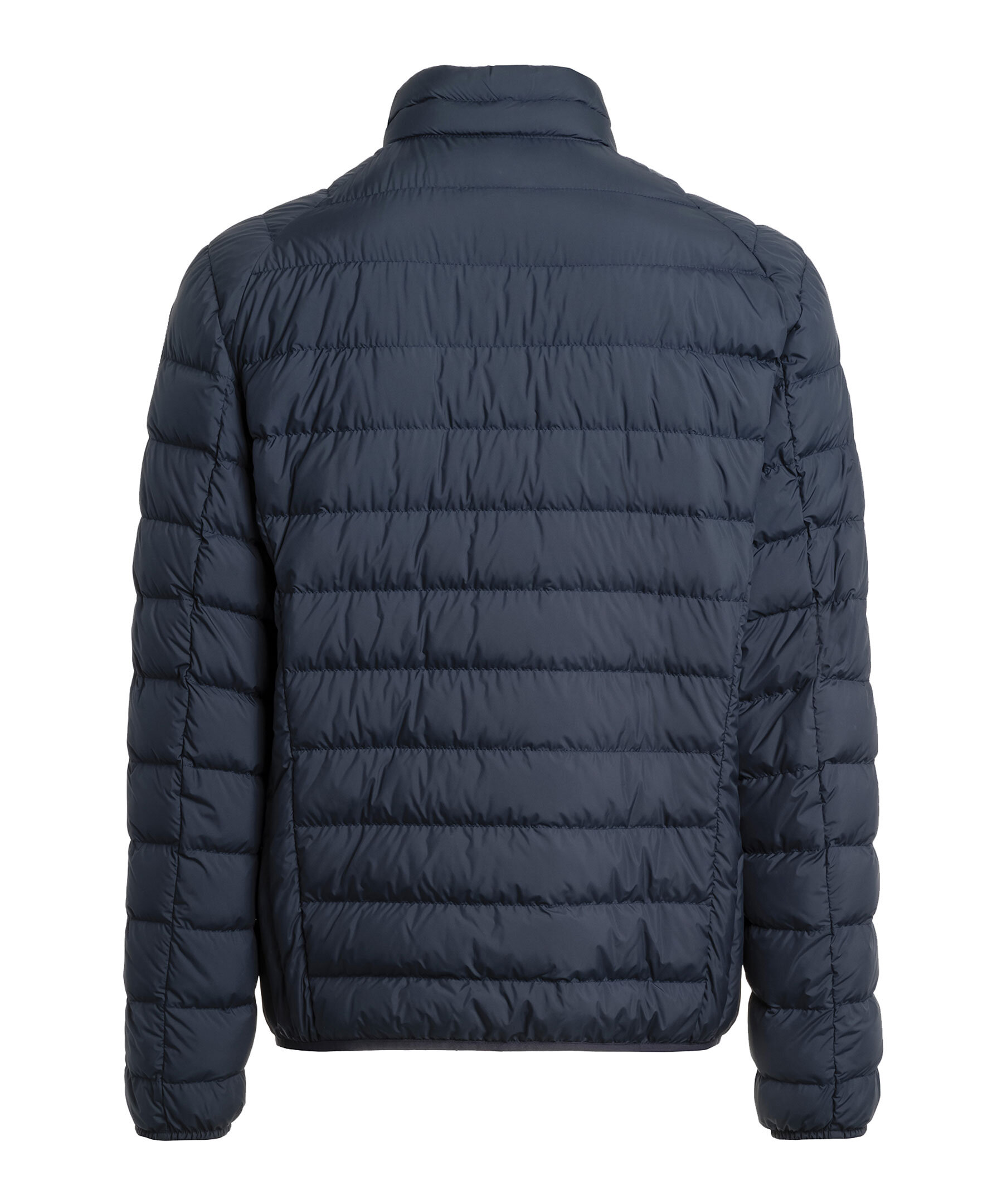 Marinblå guiltad dunjacka från Parajumpers. Stängs framtill med tvåvägsdragkedja och har patch med logotyp på vänster ärm. Smal elastisk resår vid ärm- och plaggslut. Ribbstickad mudd vid kragen. Två fickor framtill som stängs med dragkedja och en bröstficka på vänster sida som stängs med dragkedja.