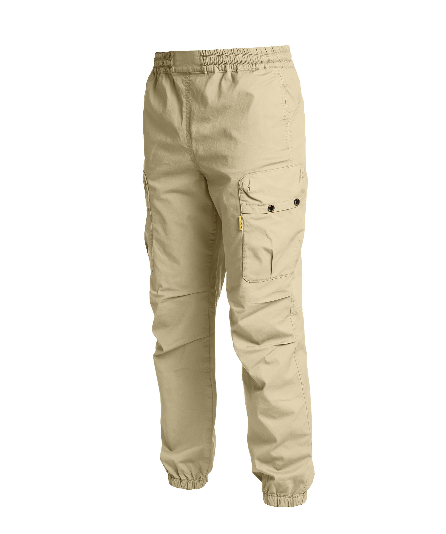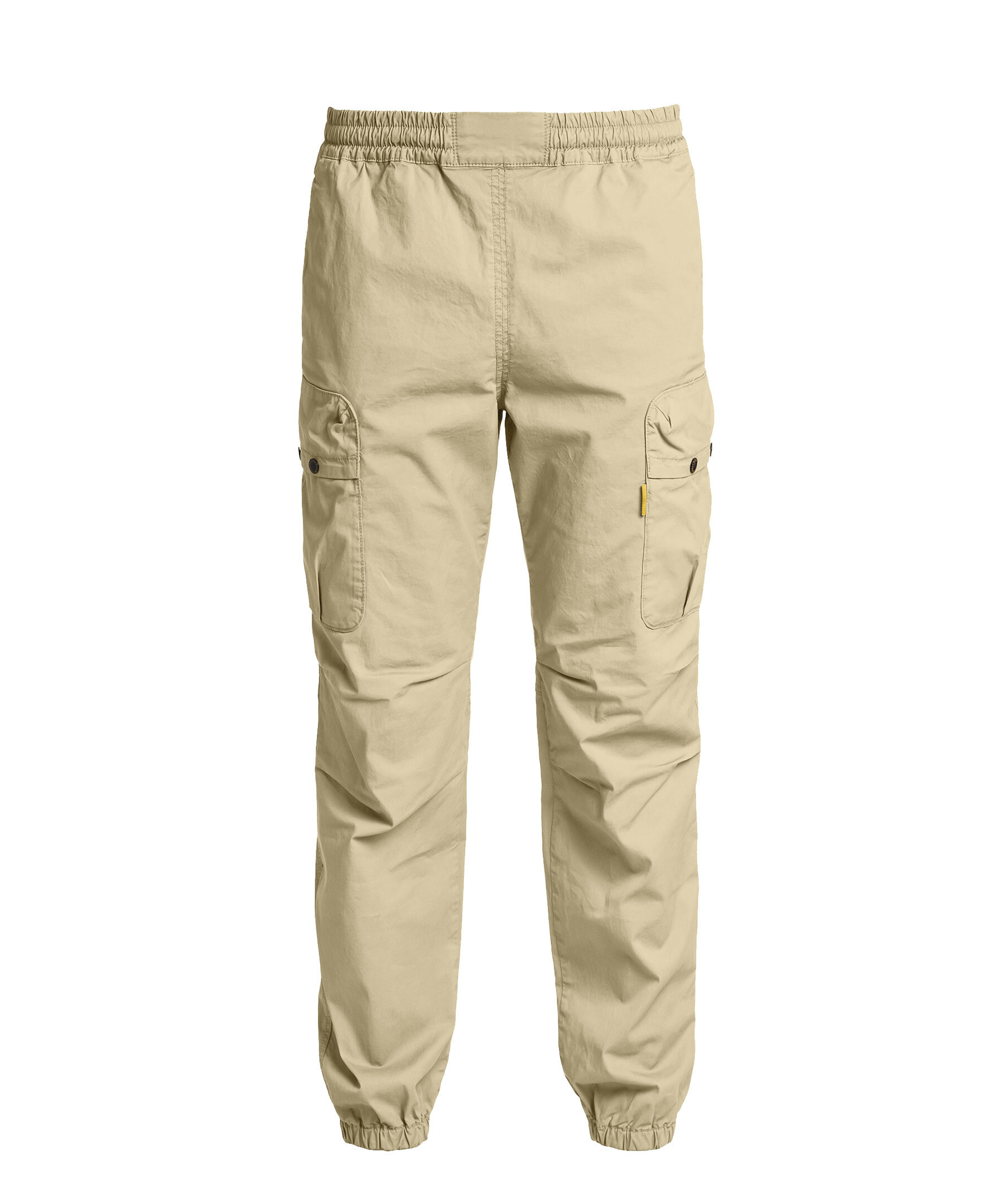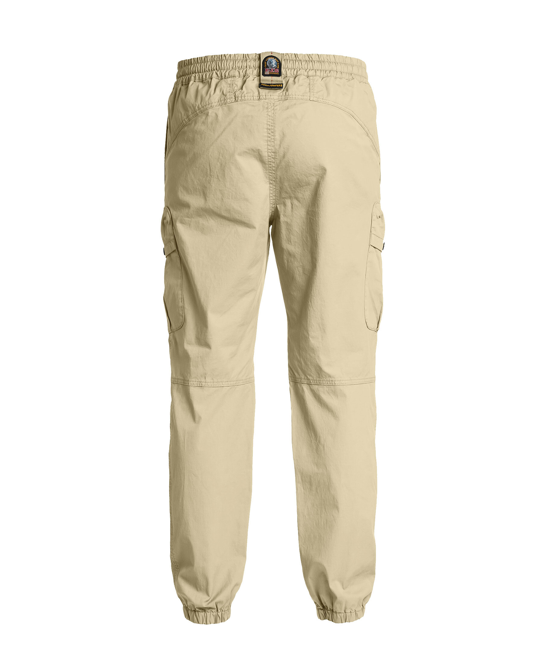 Khakifärgade cargo-byxor från Parajumpers. Resår i midja med Dragsko på insidan. Fyra fickor framtill, Två med lock som stängs med tryckknappar. Resår vid benslut. Patch med logotyp på baksidan. Hälla baktill. Tillverkad i bomullsblandning.