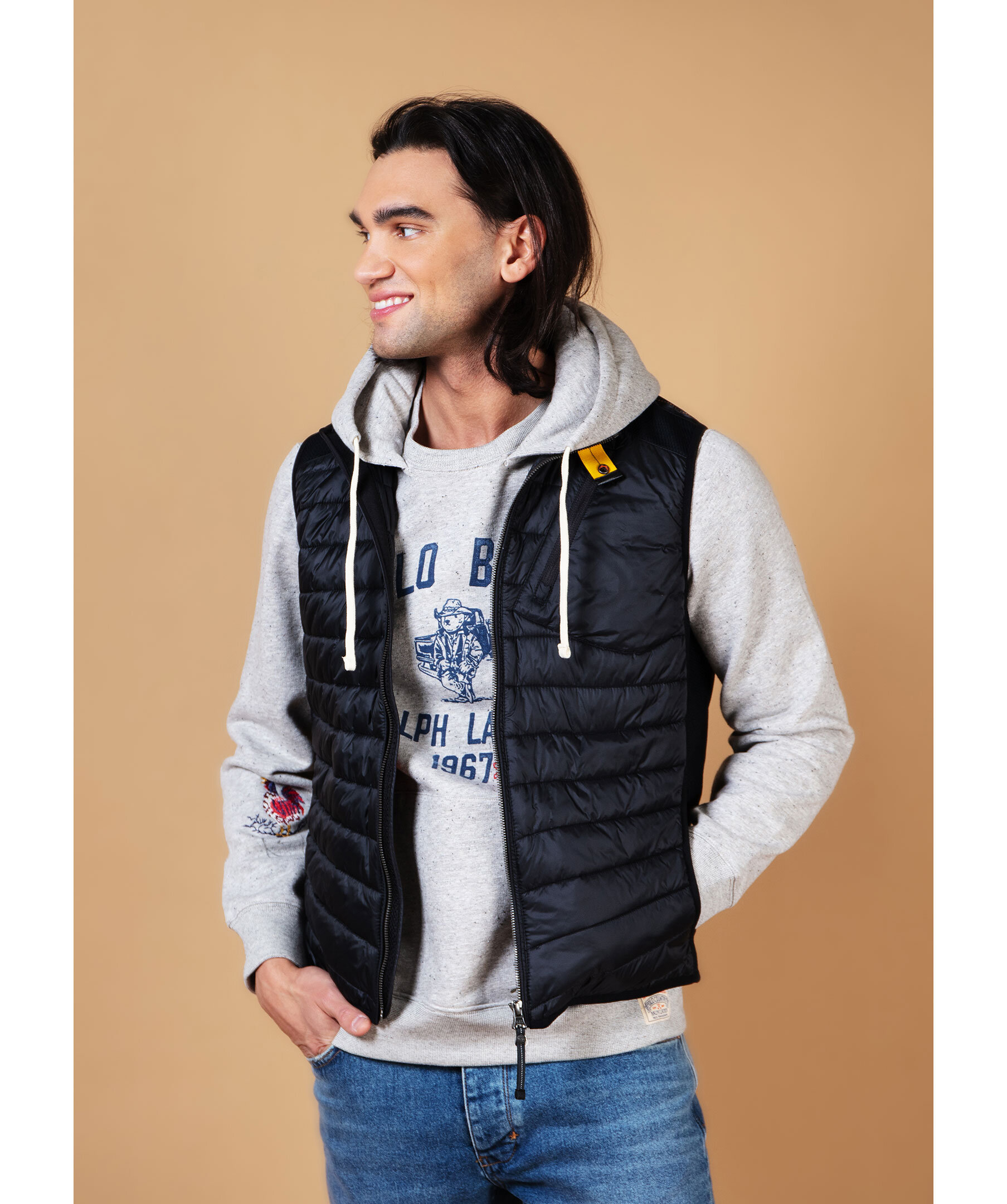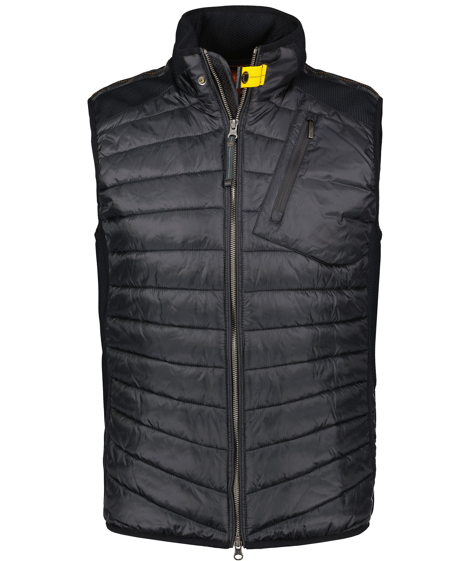 Svart lättviktsdunväst från Parajumpers. Kontrasttyg på västens sida och delar på ryggpartiet. Tvåvägsdragkedja. Två framfickor, en bröstficka och en liten ficka vid ryggslutet. Passar perfekt till höst och vår, både på landet och i city.