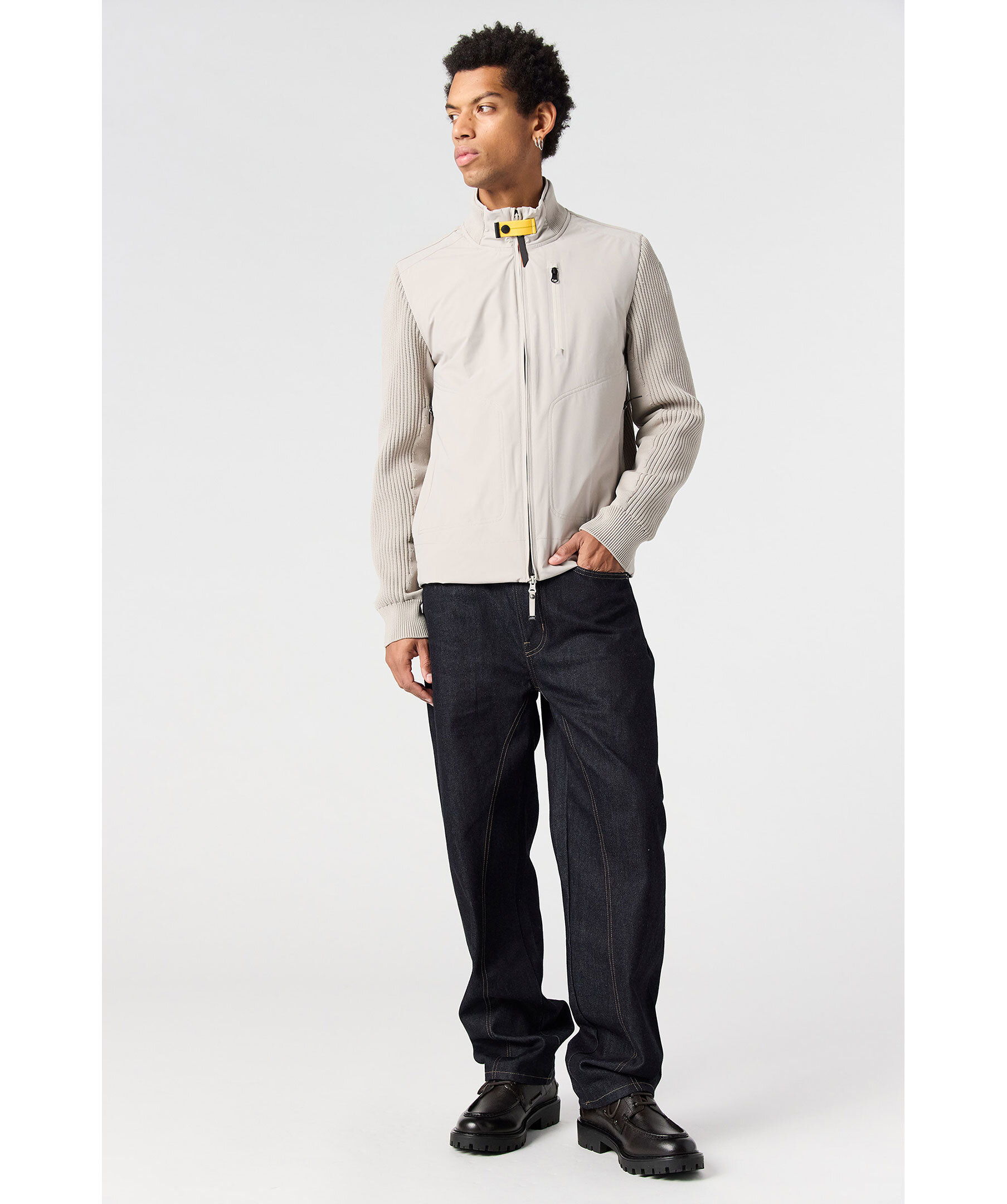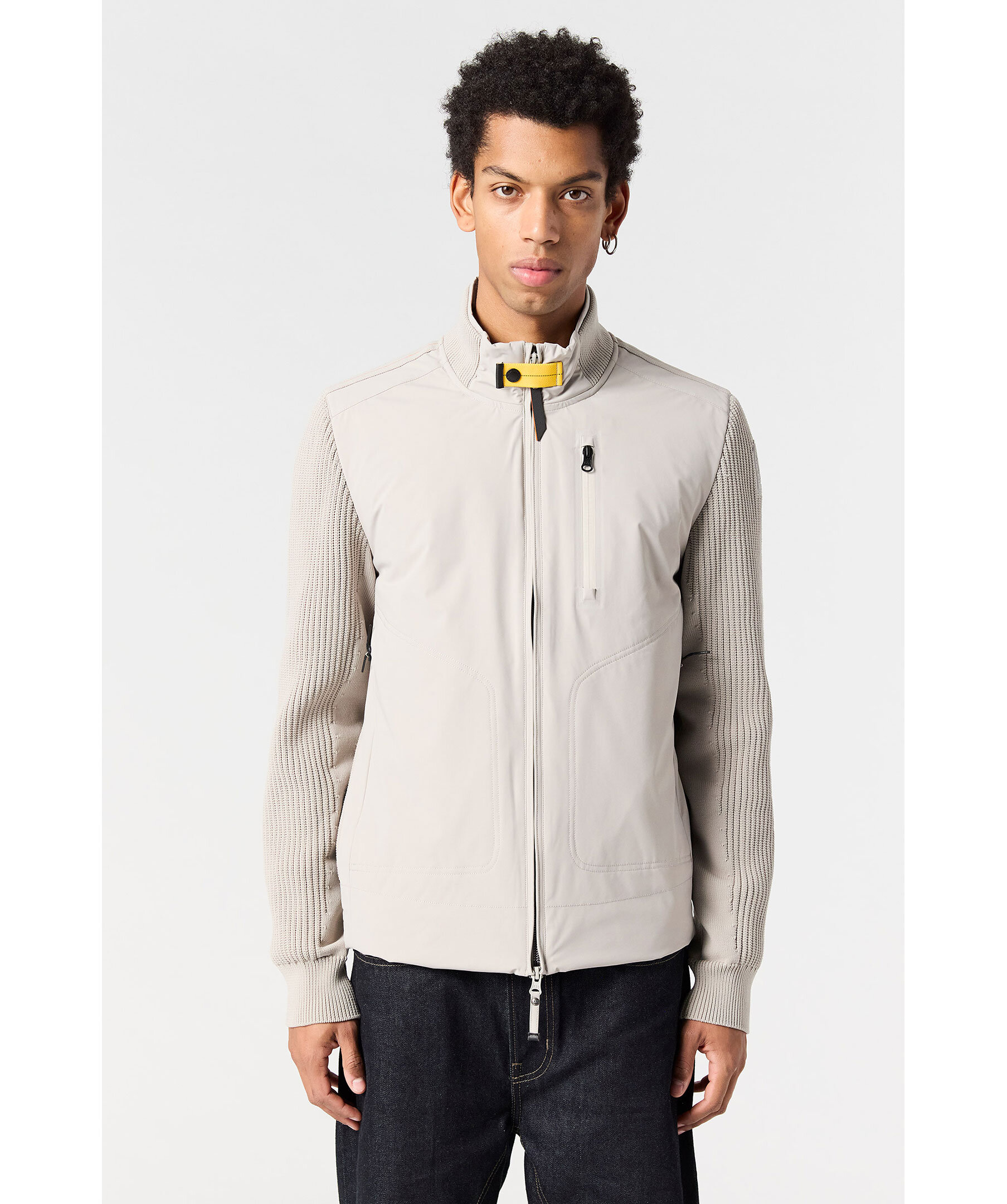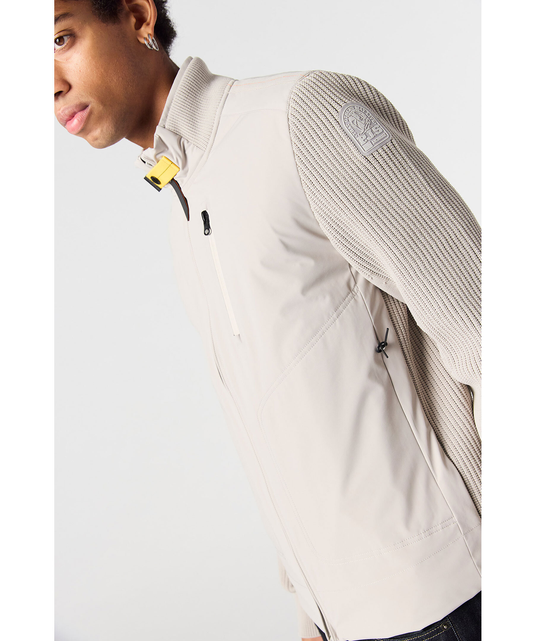 Greige hybridjacka från Parajumpers. Jackan stängs med tvåvägsdragkedja och har ribbstickad rygg samt ärmar och en bröstficka med dragkedja. Logotyp i gummi på vänster ärm. Tillverkad i en polyamid- och polyesterblandning.