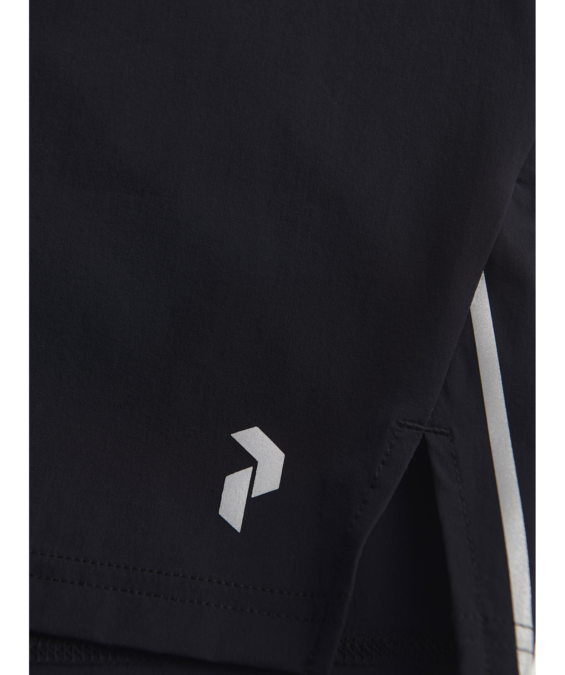 Tunna och lätta shorts i svart, från Peak Performance. Resår i midjan, slitsar i sidorna, reflexlogga på byxbenet.