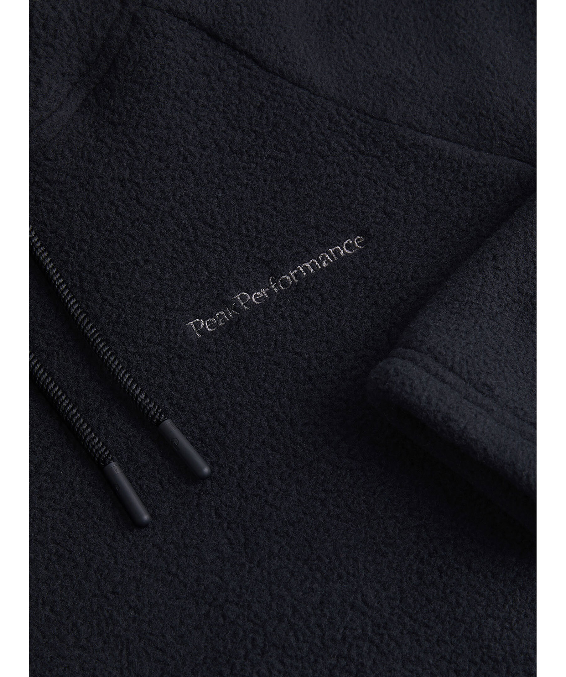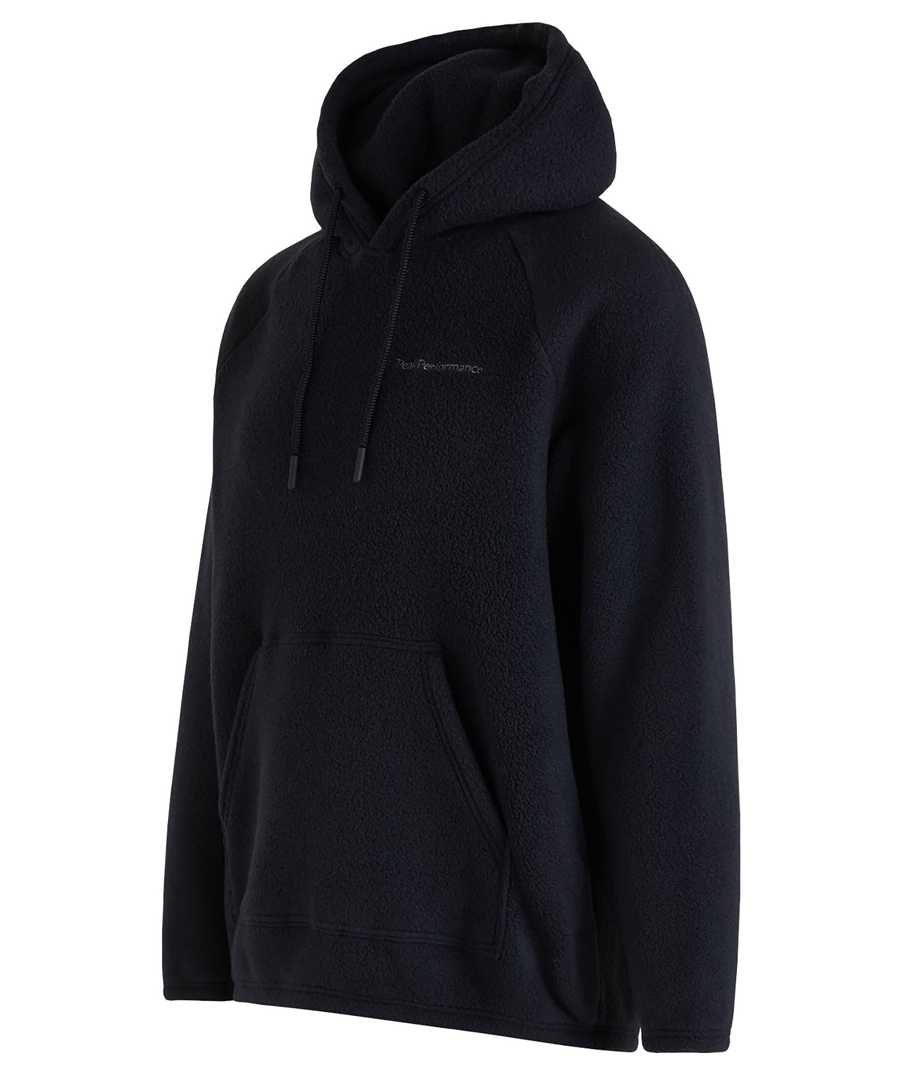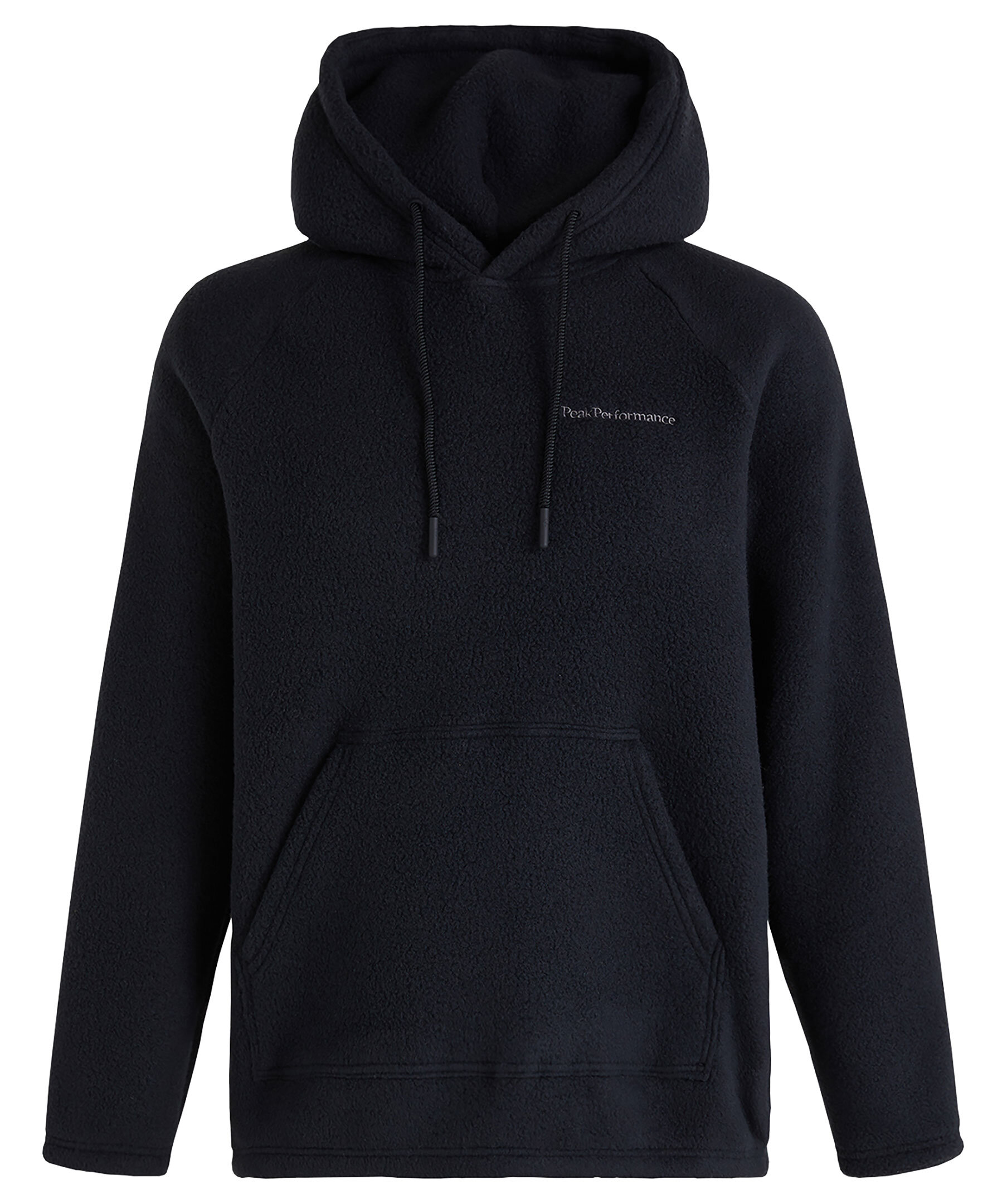 Svart, varm och skön fleecehoodie från Peak Performance. Magficka, snörning i luvan och broderad logotyp på bröstet.