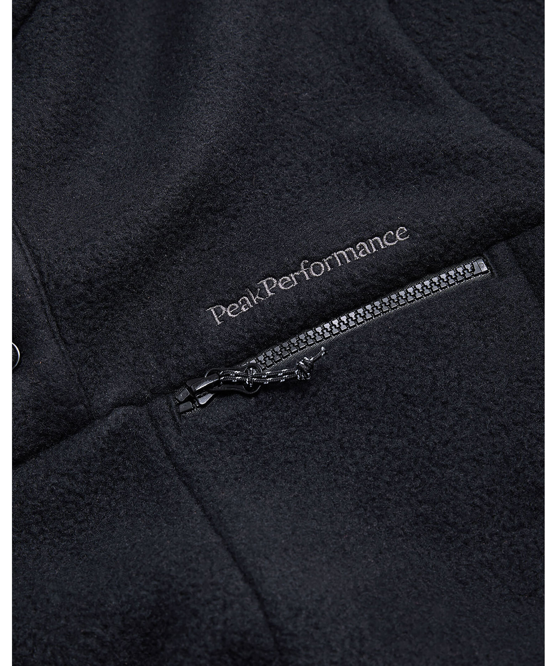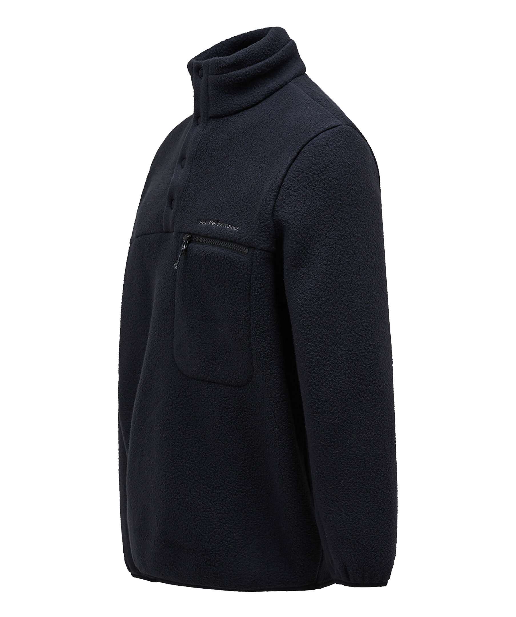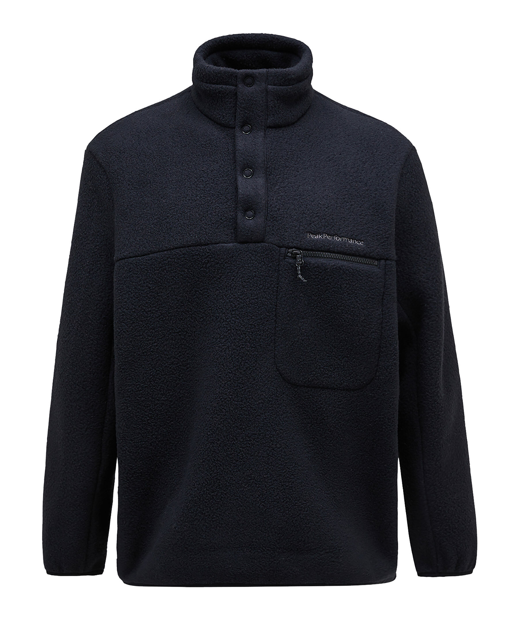 Svart fleecetröja från Peak Performance. Vintageinspirerad design som har uppdaterats med en modern touch. Tillverkad av ett mjukt och slitstarkt material som kommer att kännas bekvämt många säsonger framöver. Den halvöppna framsidan med knappar gör att du kan kontrollera din temperatur och gör den enkel att ta på och av. Något avslappnad passform.