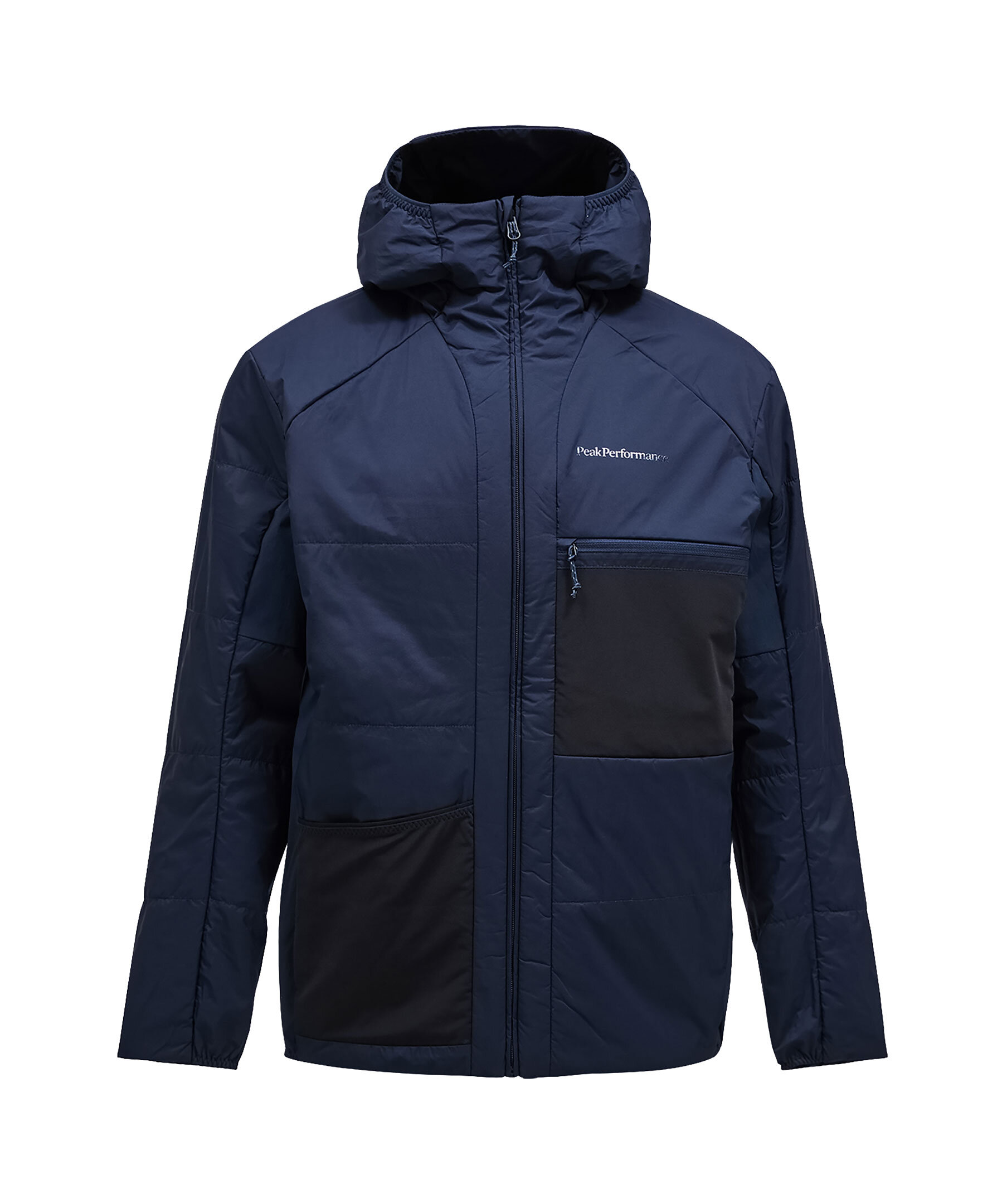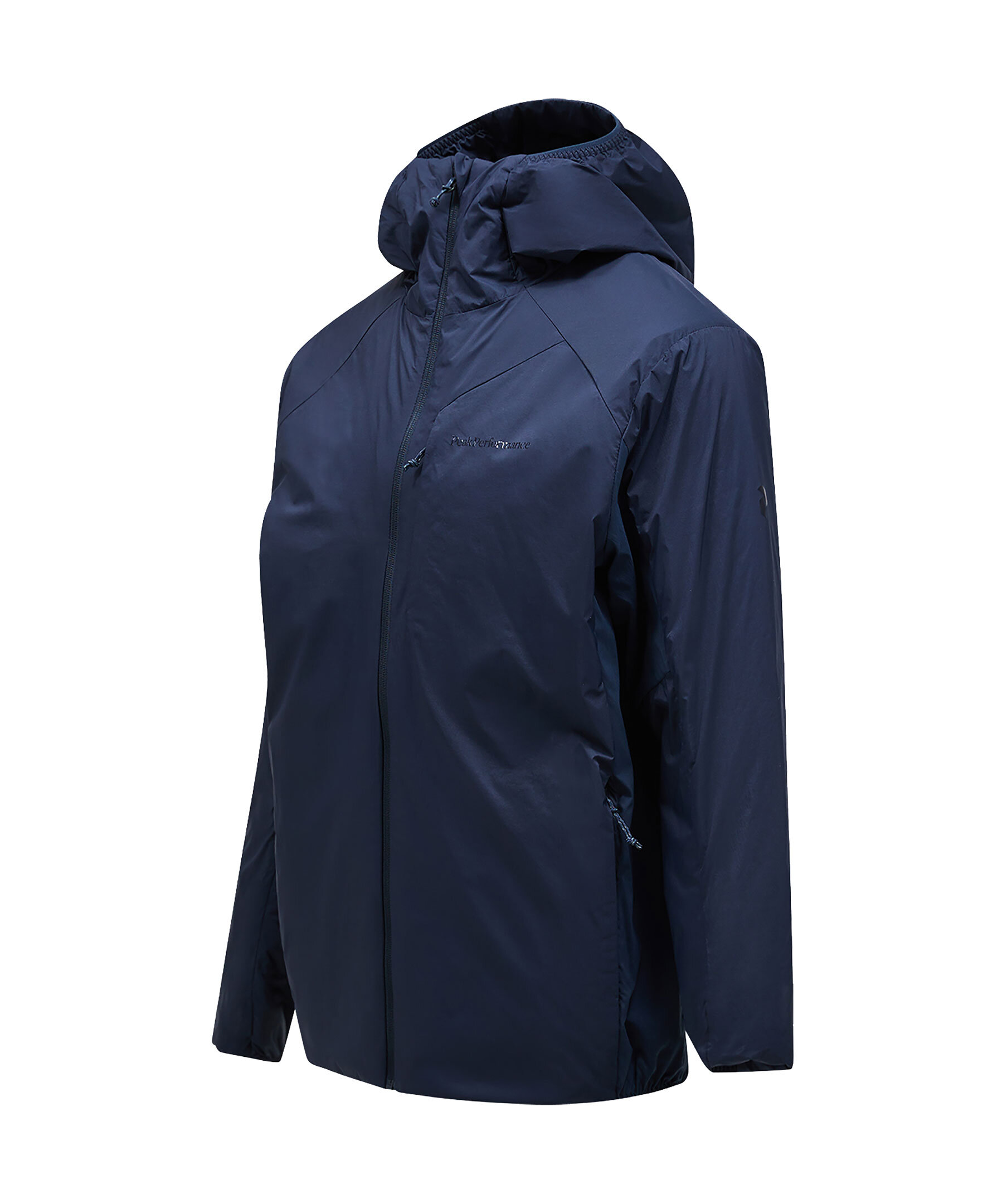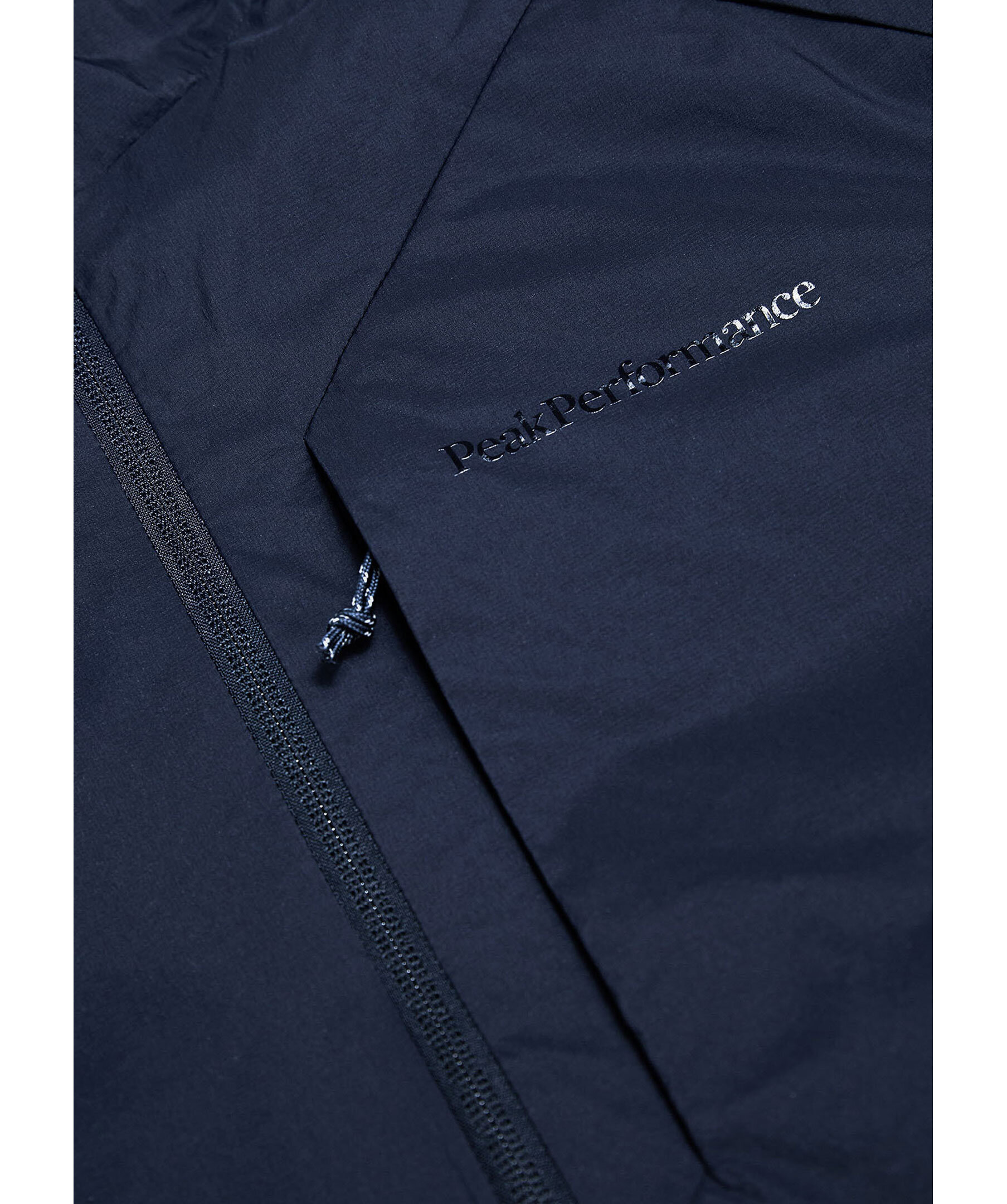 Mörkblå, reversible jacka från Peak Performance. Jackan stängs med dragkedja och har huva, två sidfickor med dragkedja, en bröstficka med dragkedja samt en innerficka med dragkedja och en meshficka. Tryckt logotyp på bröstet och ena ärmen samt hål vid tummen. Jackan är lätt och vatten- samt vindavvisande. Tillverkad i polyamid.