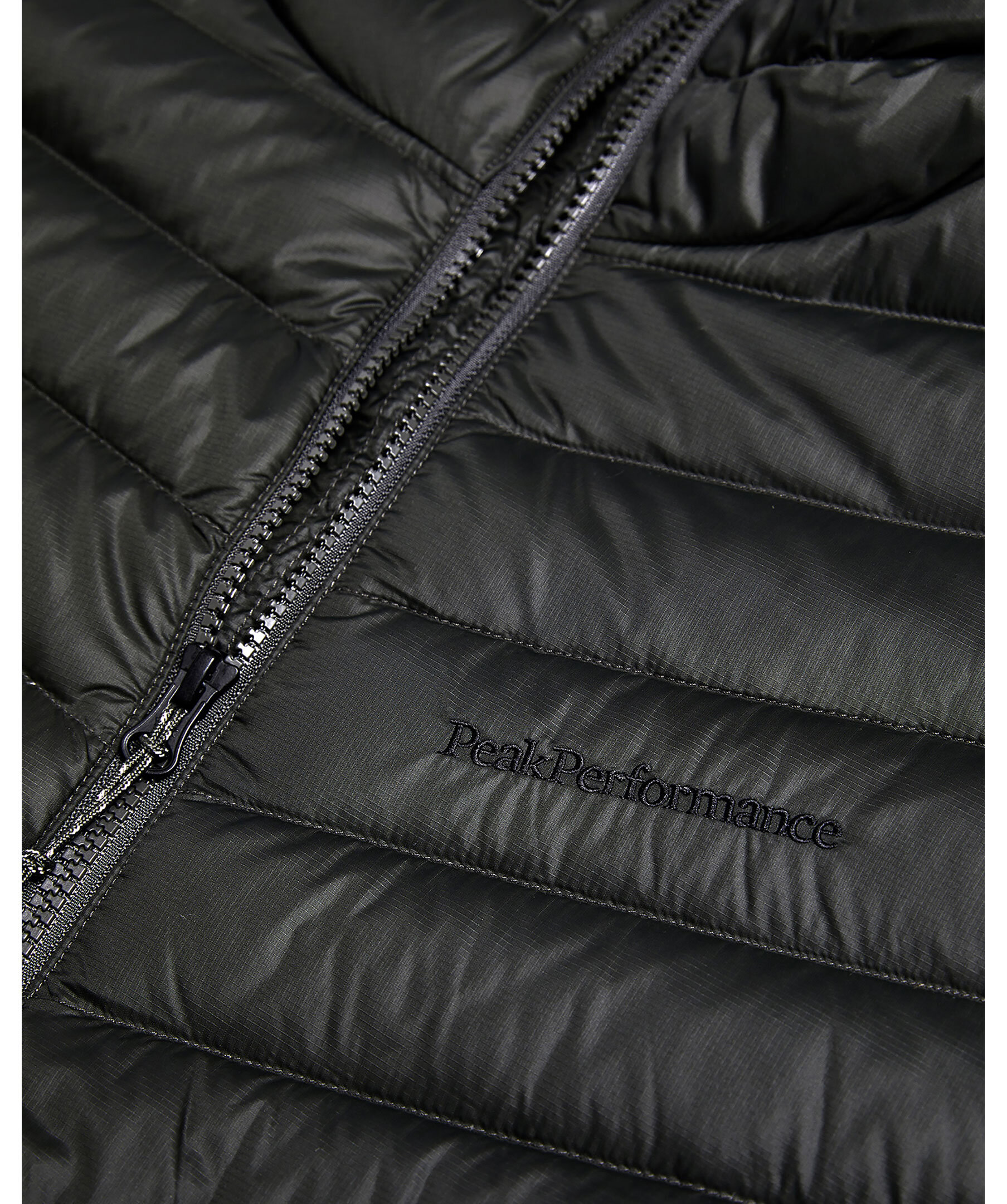 Mörkgrön, lätt och packbar dunjacka från Peak Performance. Jackan stängs med dragkedja och har elastiska ärmslut, fickor med dragkedja och en tättslutande huva som ger maximalt skydd. Broderad logotyp på bröstet samt vänster ärm. Tillverkad av lätt polyamid och fylld med 90/10-ankdun/fjädrar av hög kvalitet för exceptionell värme.