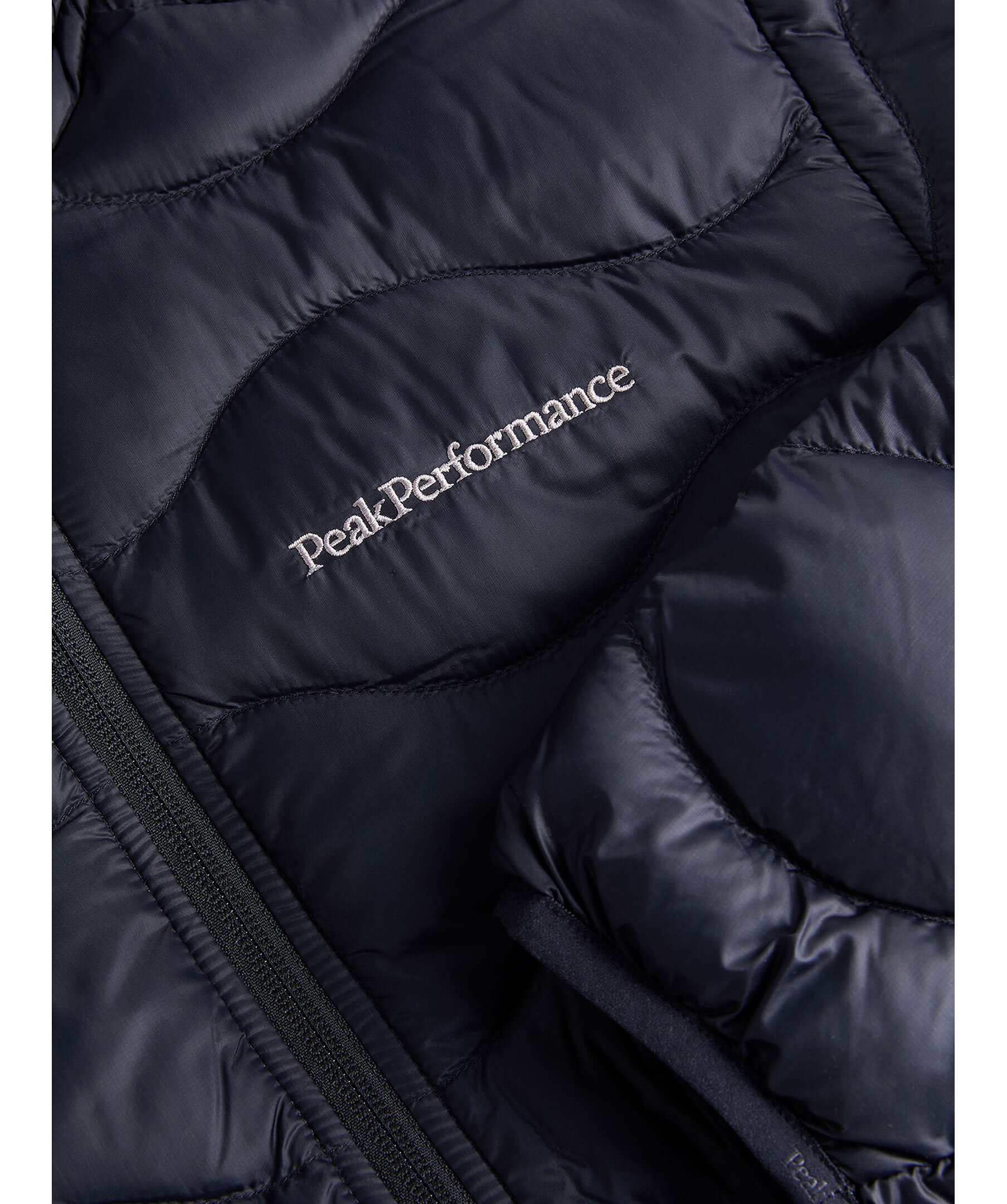 Svart jacka med luva som är otroligt lätt och packbar från Peak Performance och dreas Helium-serie. Med ett vind- och vattenavvisande skal tillsammans med högkvalitativ 90/10-dunvaddering gör den perfekt för alla friluftsäventyr. Använd den som ett ytterlager eller under en skaljacka för extra värme. Peak Performance använder bara ansvarsfullt producerat dun som kan spåras genom Track My Down®-programmet. Tillverkad av återvunnen polyamid som är helt PFC-fri. Yttre upphängningsögla i nacken, tvåvägs (höjd och bredd) justerbar huva och elastisk bindning i nederkant och ärmslut. Handfickor med dragkedja, hellång YKK reversed coil dragkedja fram och hakskydd. Peak Performance-brodyr på bröstet och P-logotyp brodyr på ärmen.