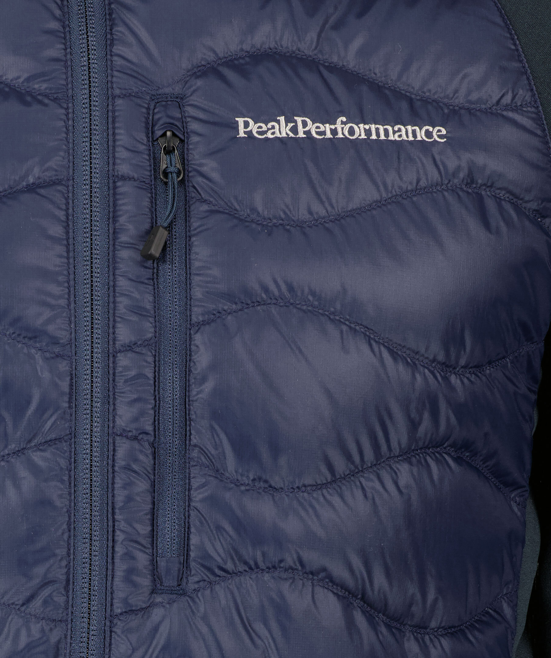 Hybridjacka med quiltmönster från Peak Perfomance. Stretchpaneler gör den här hybridjackan extremt lätt och packbar. Vind- och vattenavvisande paneler tillsammans med högkvalitativ 90/10-dunvaddering gör den perfekt för alla friluftsaktiviteter. Tillverkad av återvunnen polyamid som är helt PFC-fri. Stängs med dragkedja. Två sidfickor. Logotyp och dragkedjeficka på bröstet.