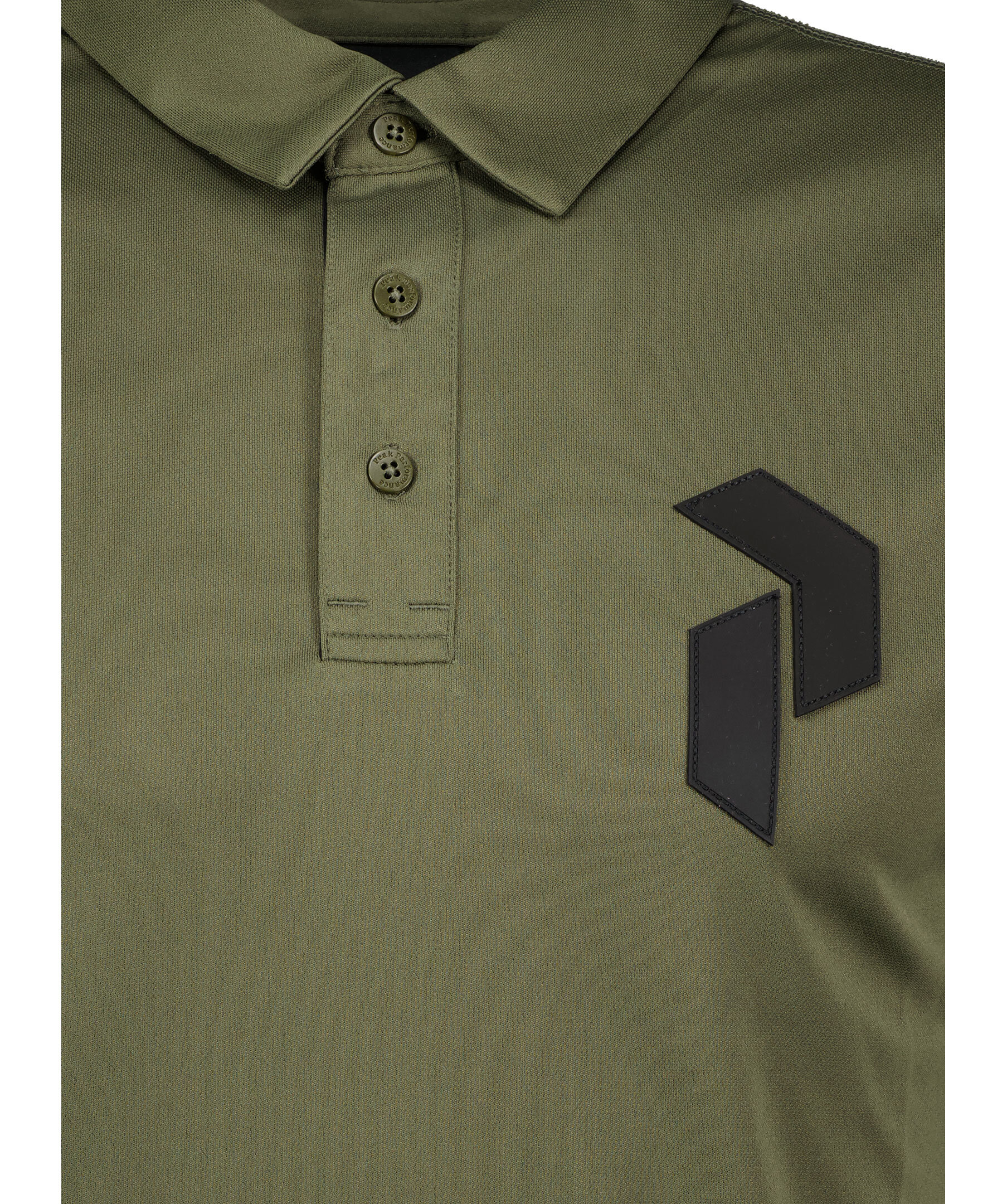 Skogsgrön, kortärmad pikétröja i ett tunt och luftigt material från Peak Performance. Tre knappar framtill. Svart gummi-logotyp på bröstet. Svart broderad logotyp på vänster ärm. Tillverkad i polyester. Normal passform.