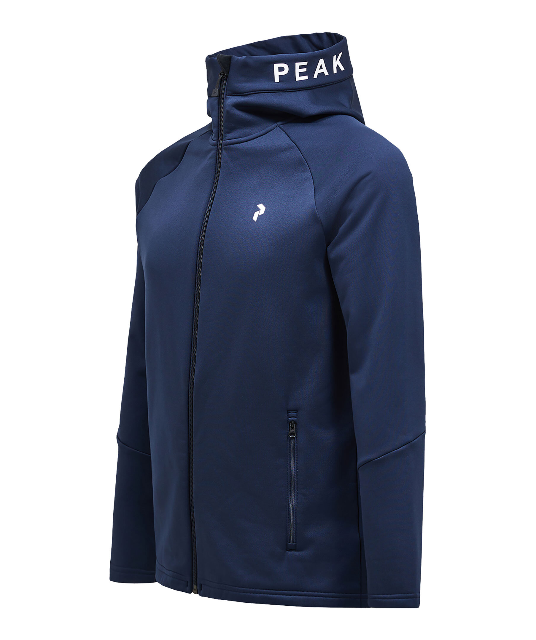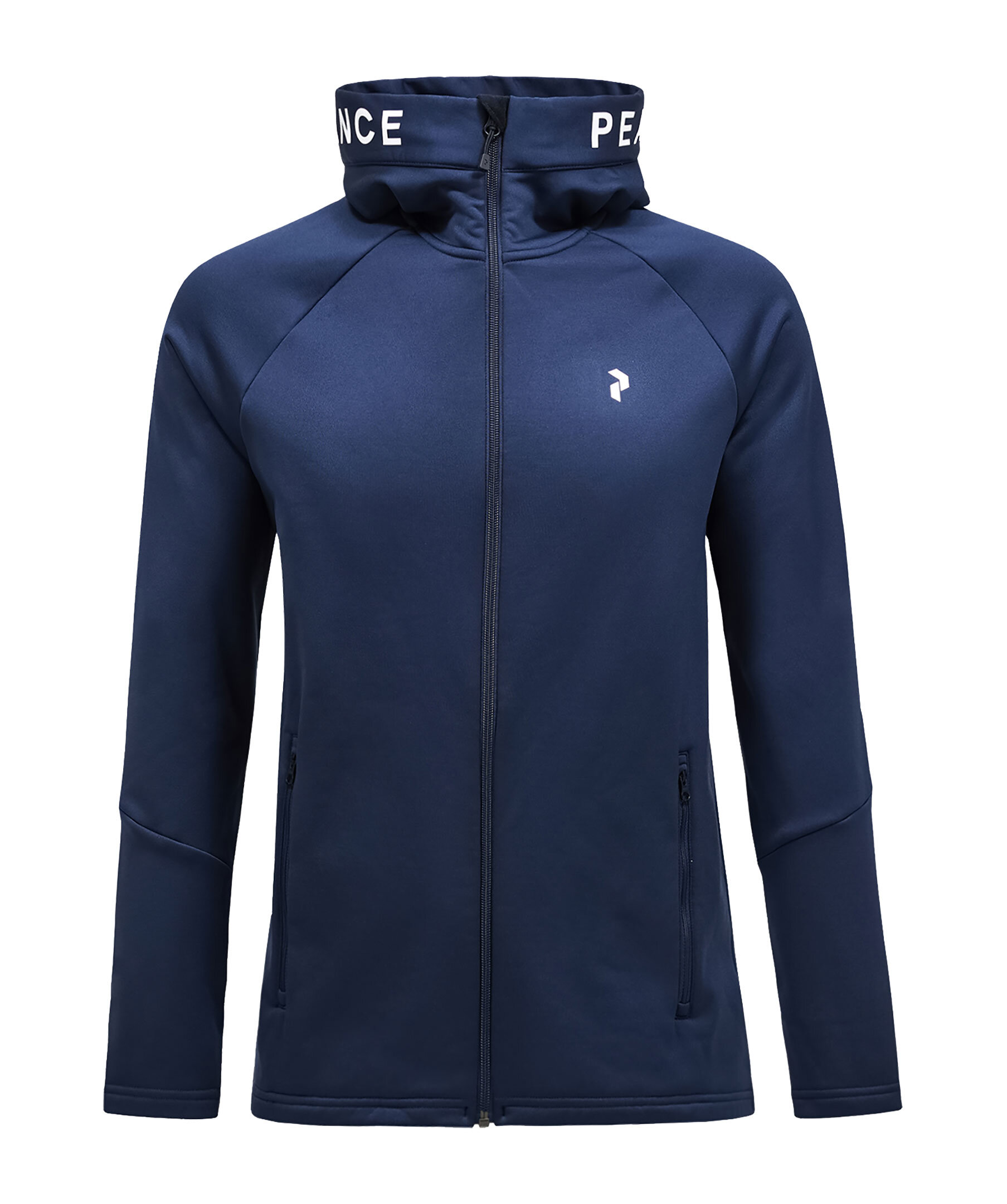 Mörkblå mellanlagersjacka från Peak Performance. Stängs med dragkedja framtill och har huva med logotyp, två sidfickor med dragkedja samt logotyp på bröstet. Tillverkad i en polyesterblandning.