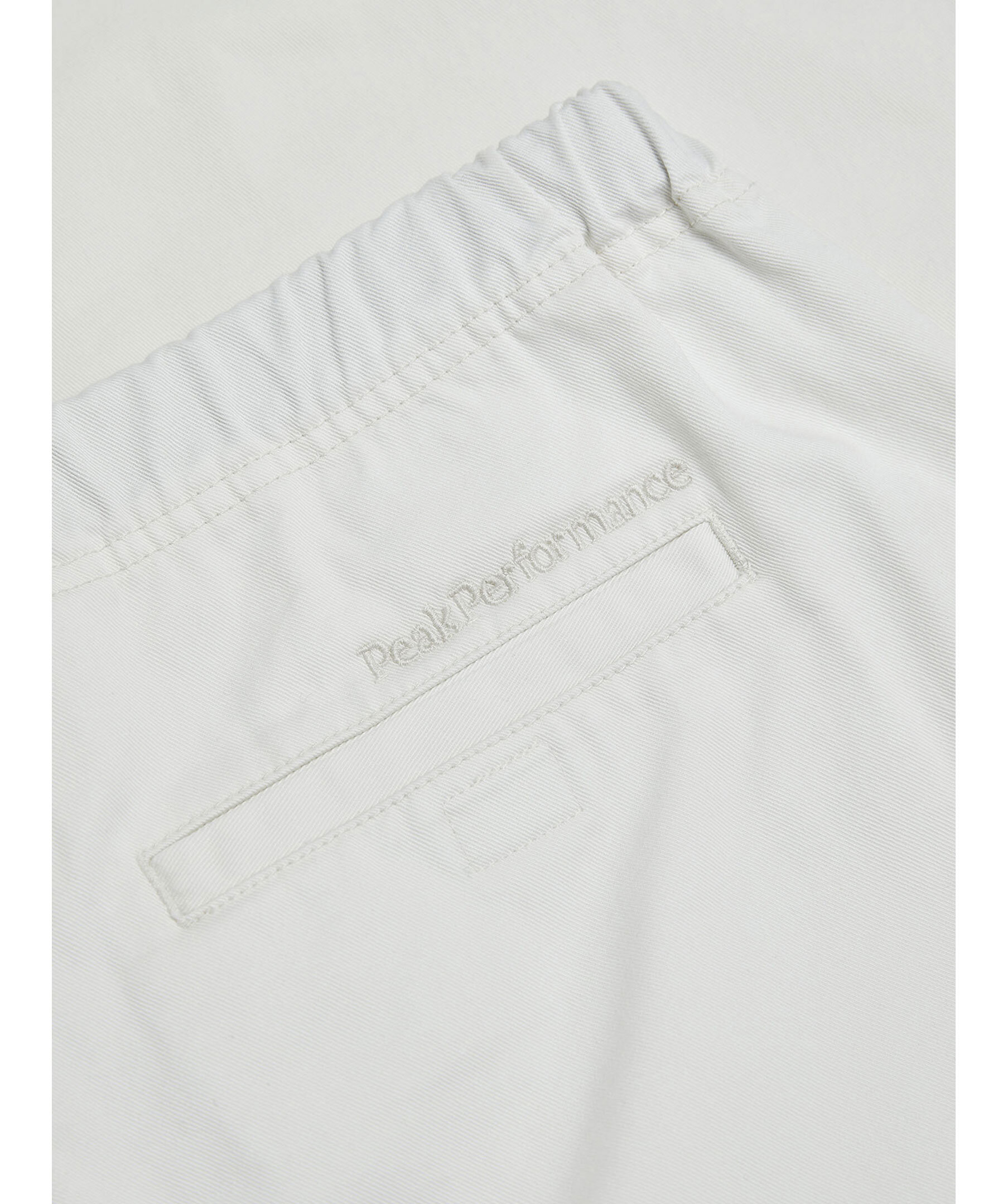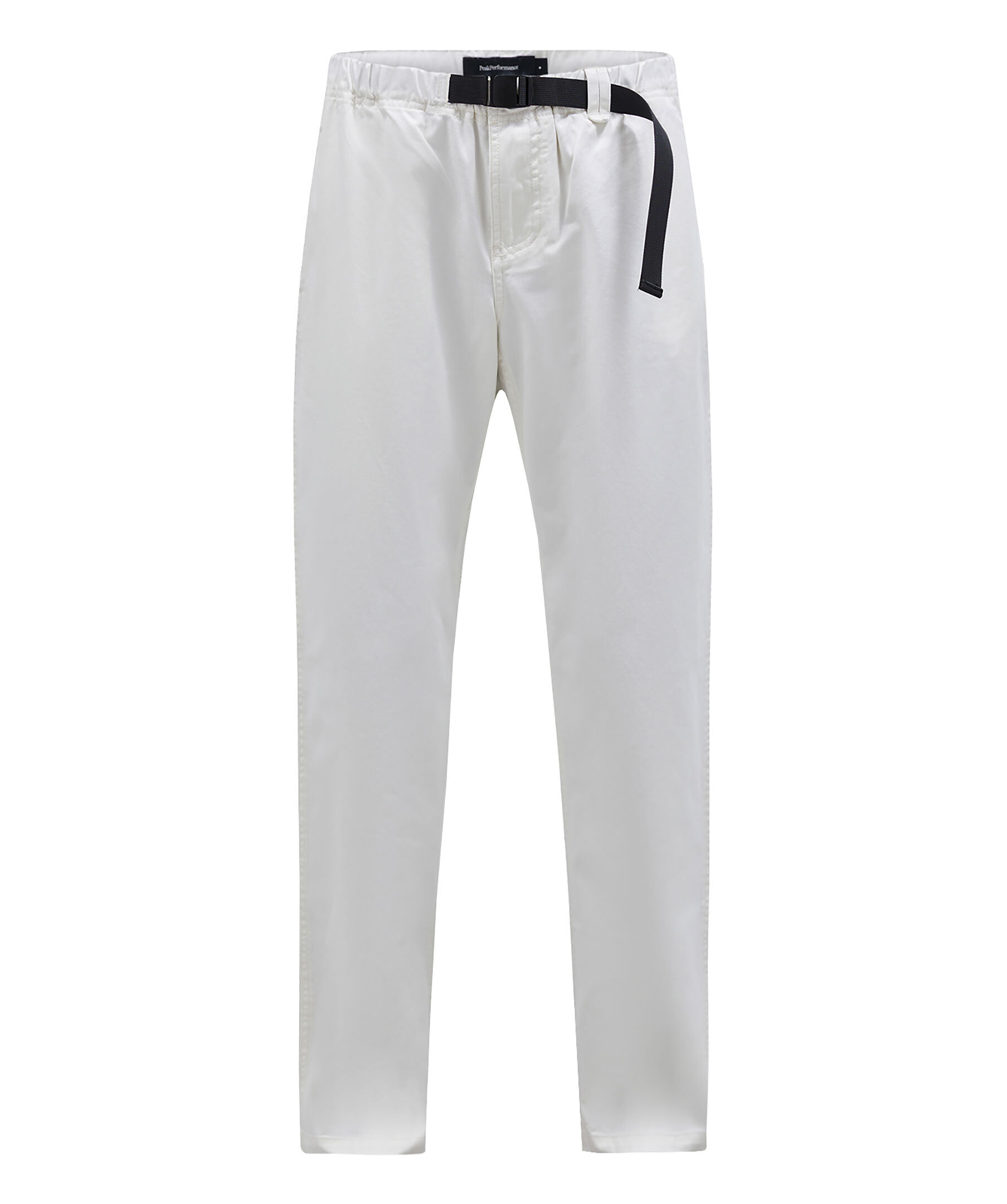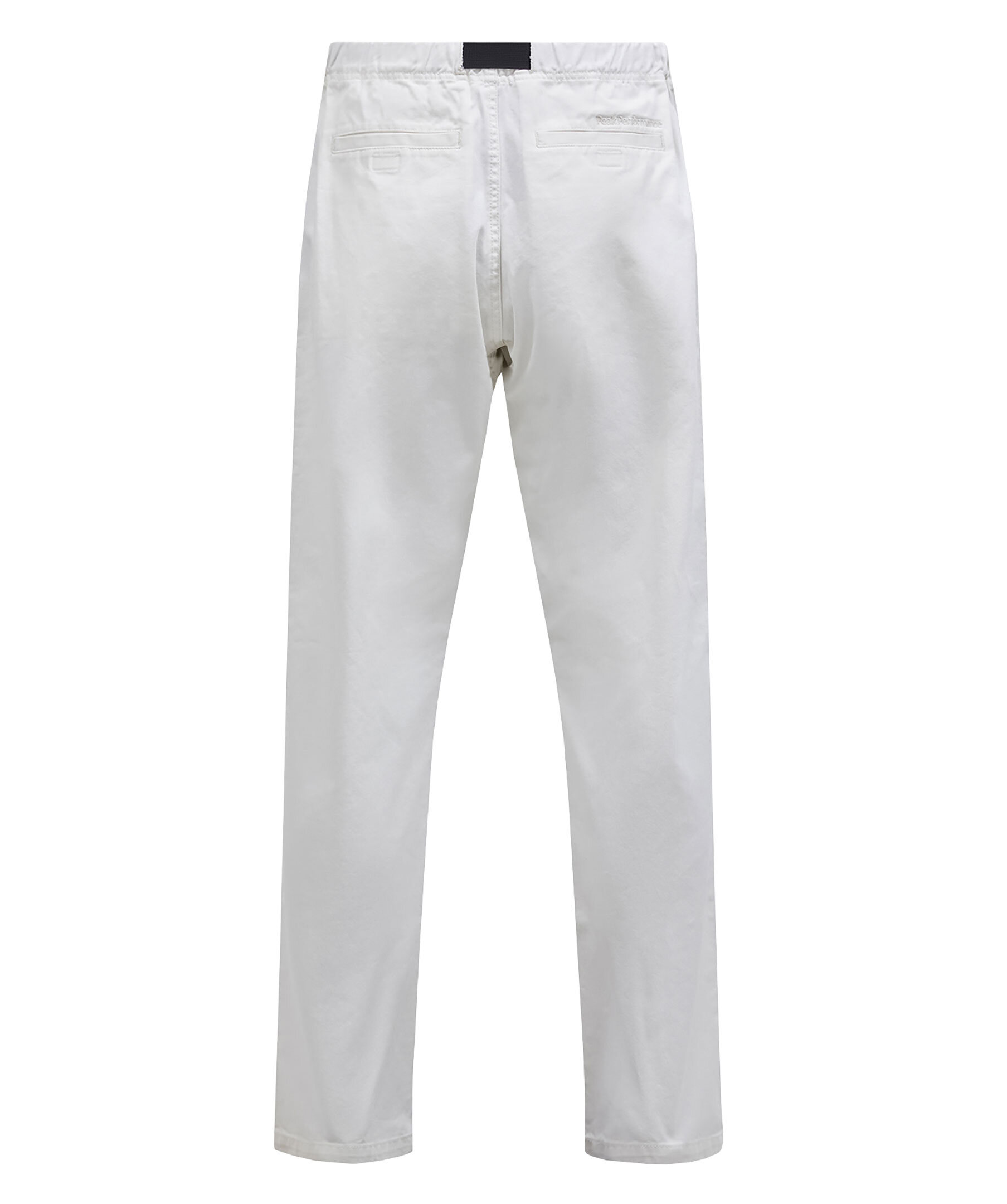Vita byxor i ett slitstarkt bomullstwill från Peak Performance. Rak passform med elastiskt midjeband och justerbart bälte. Två sidfickor och två bakfickor. Broderad logotyp ovanför ena bakficka. Stängs med dragkedja och knapp.