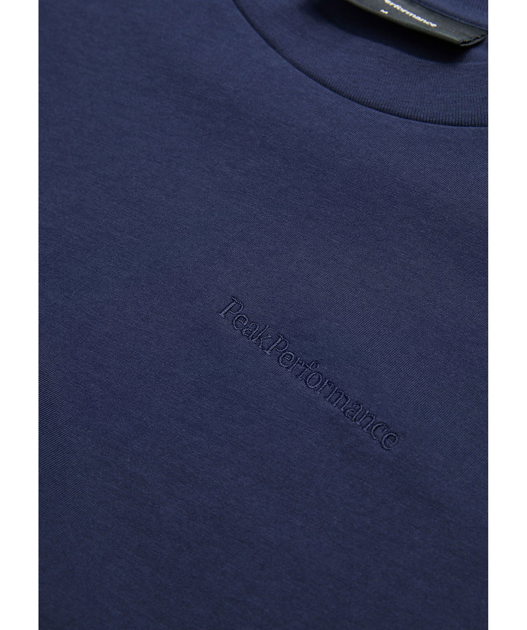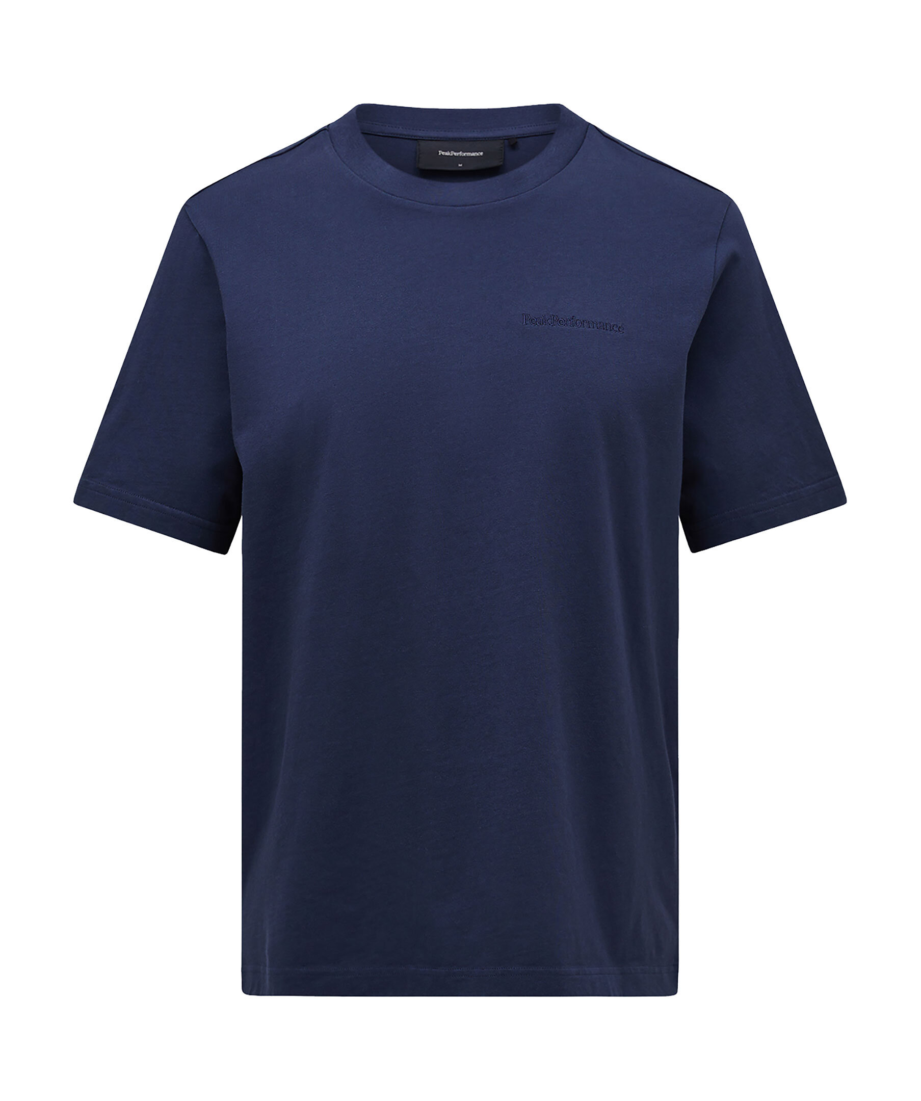 Mörkblå t-shirt från Peak Performance. Liten broderad, ton-i-ton logotyp på bröstet. Tillverkad i 100% bomull.