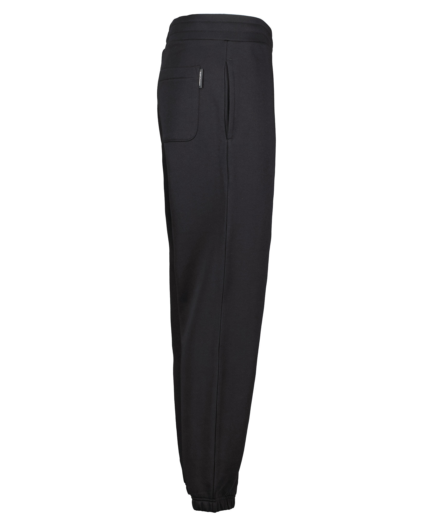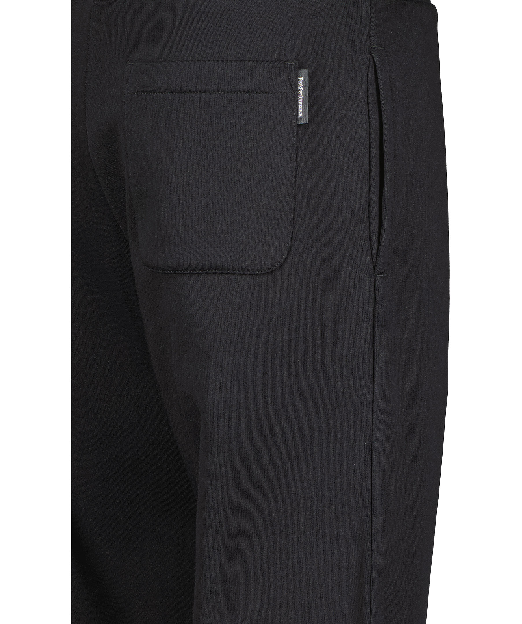 Svarta mjukisbyxor från Peak Performance. Mudd och snörning i midjan samt muddar i benslut. Två framfickor, en bakficka samt en liten logotyp på en lapp på sidan av bakfickan. Tillverkade i bomullsblandning och har en borstad, mjuk insida.