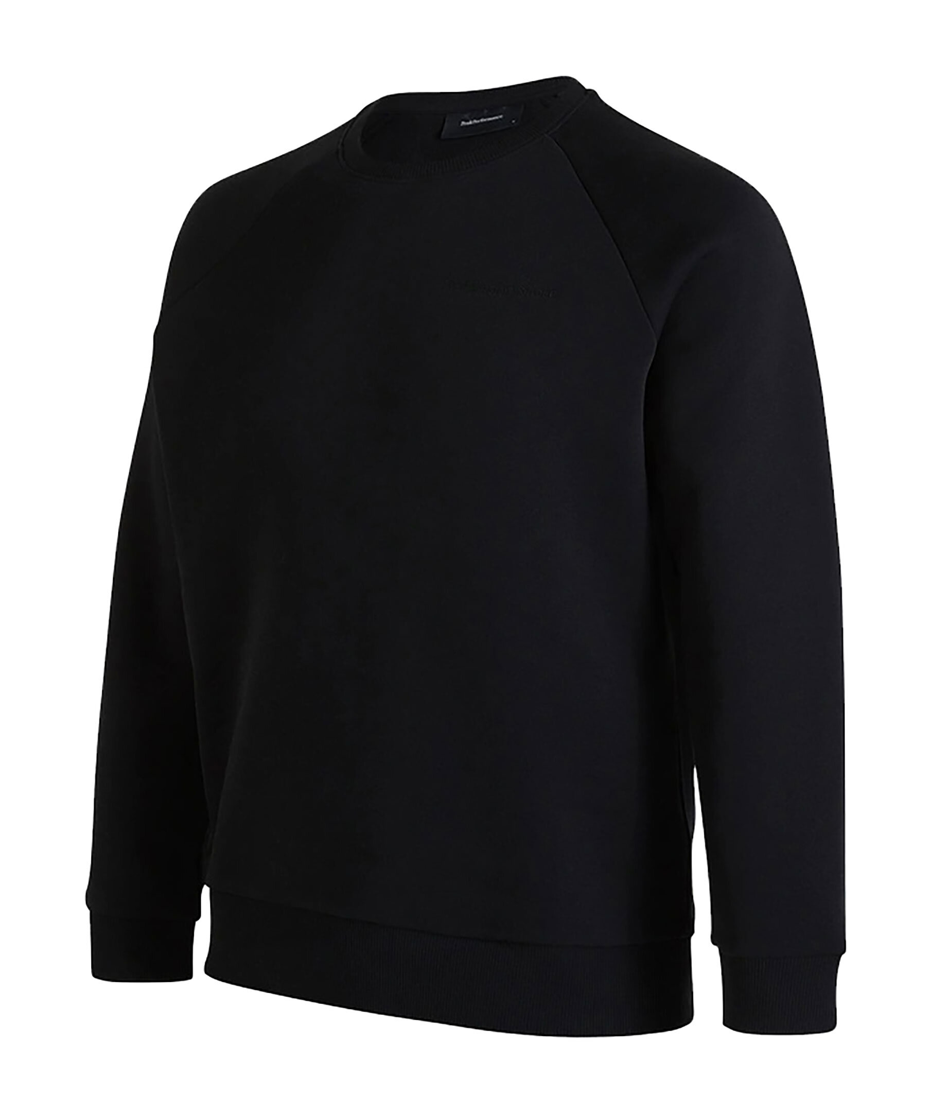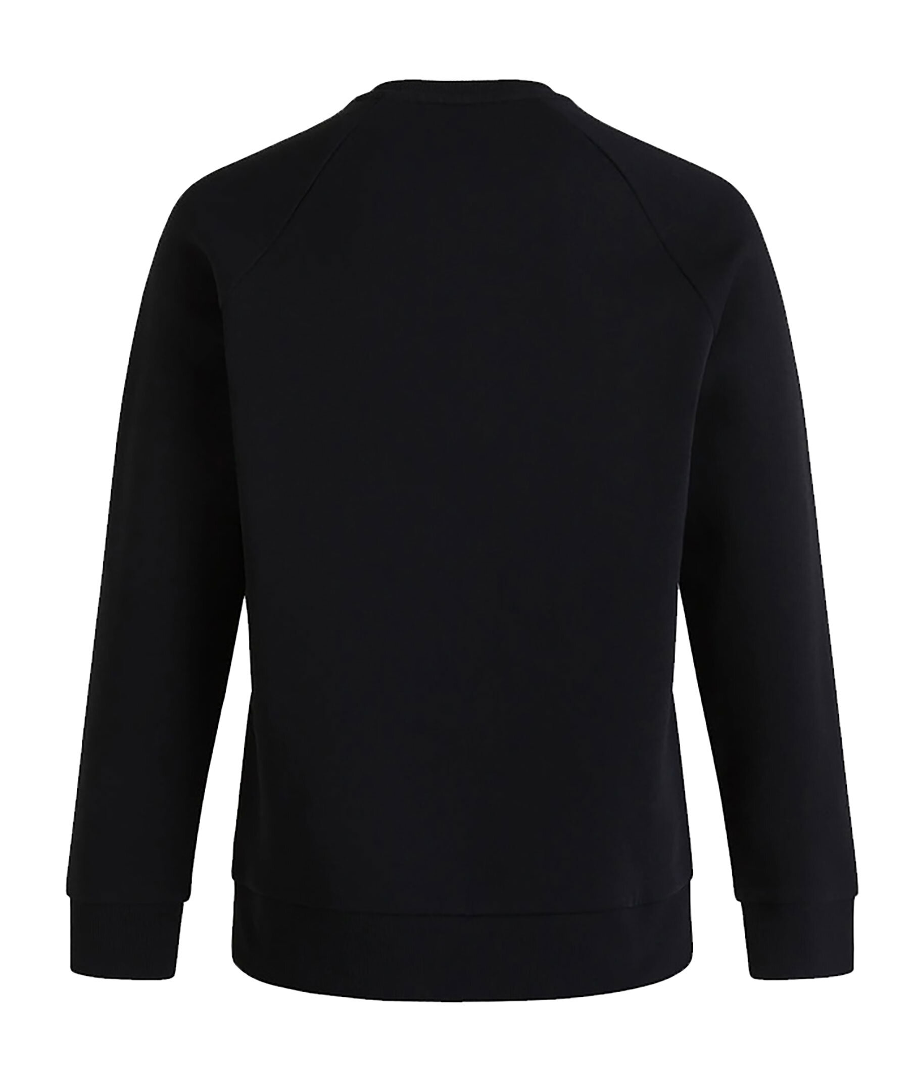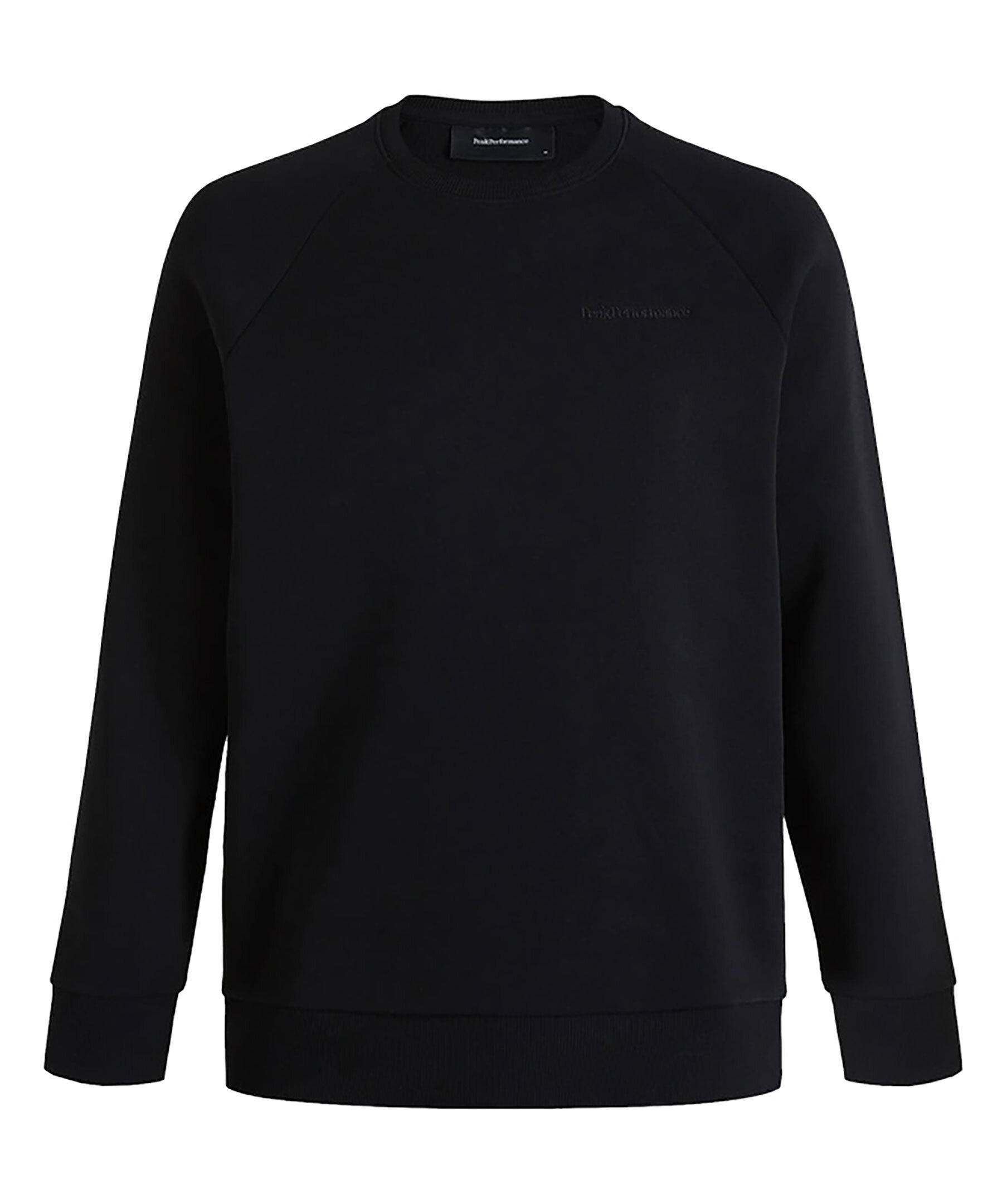 Svart sweatshirt från Peak Performance. Tyget är tillverkad av en jerseyblandning av ekologisk bomull och återvunnen polyester med en borstad insida vilket gör att den känns otroligt mjuk och skön. Rundad halsringning med tunn ribbad kant samt ribbade muddar i ärmslut och plaggslut. Diskret, broderad logtoyp i ton-i-ton på vänster sida av bröstet.