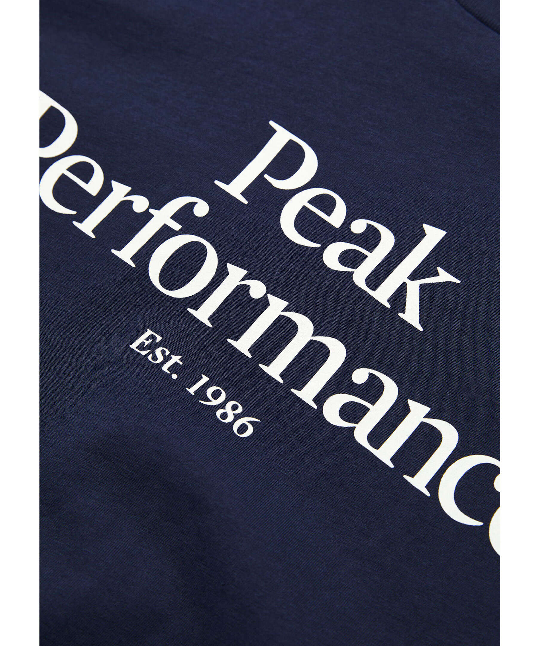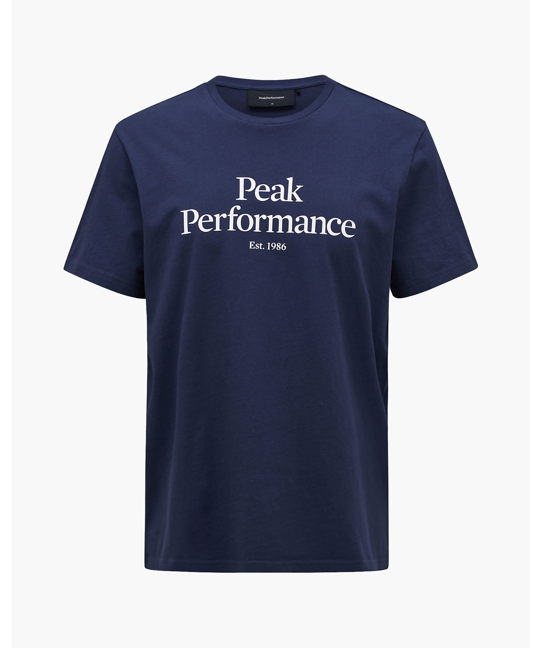 Mörkblå T-shirt med tryck från Peak Performance. T-shirten har ribbstickad rundad halsringning. Tryck på bröstet med logotyp. Tillverkad av bomull.