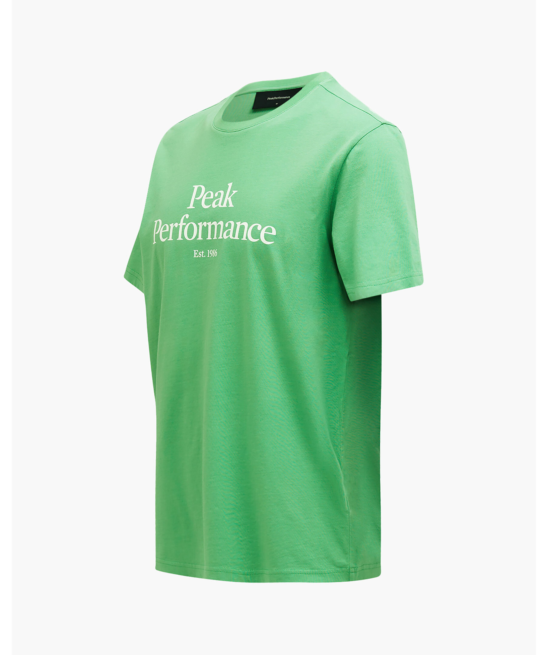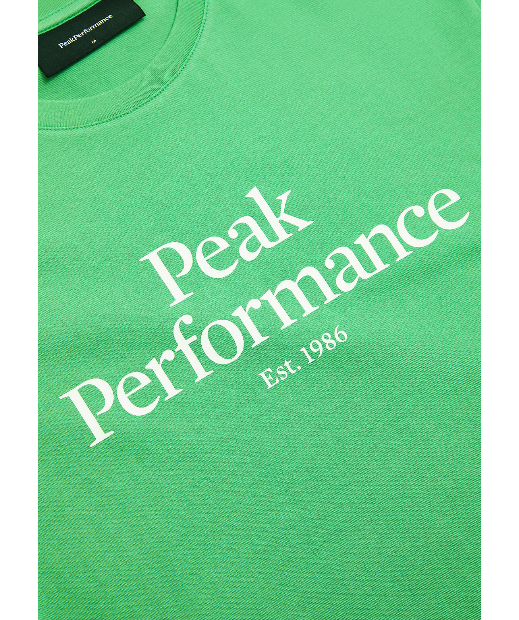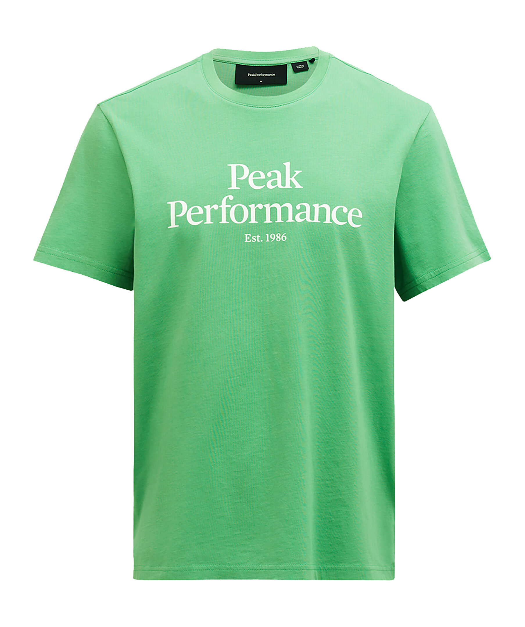 Grön T-shirt med tryck från Peak Performance. T-shirten har ribbstickad rundad halsringning. Tryck på bröstet med logotyp. Tillverkad av bomull.