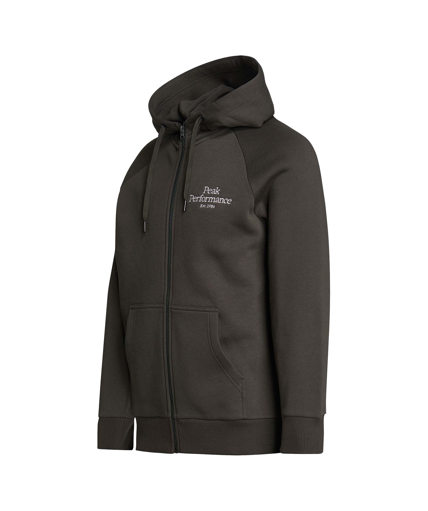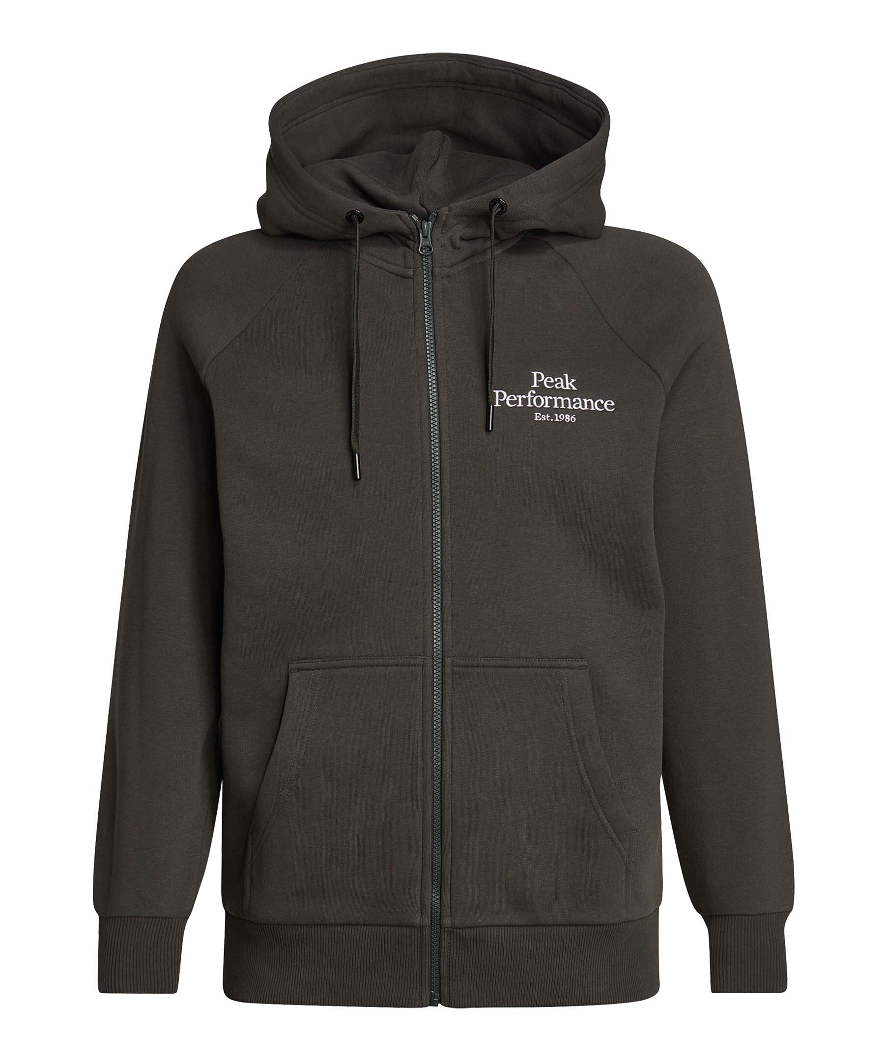 Mörkgrön hoodie från Peak Performance. Tillverkad i en skönt bomullsblandning, broderad text på bröstet och en mjuk borstad insida.