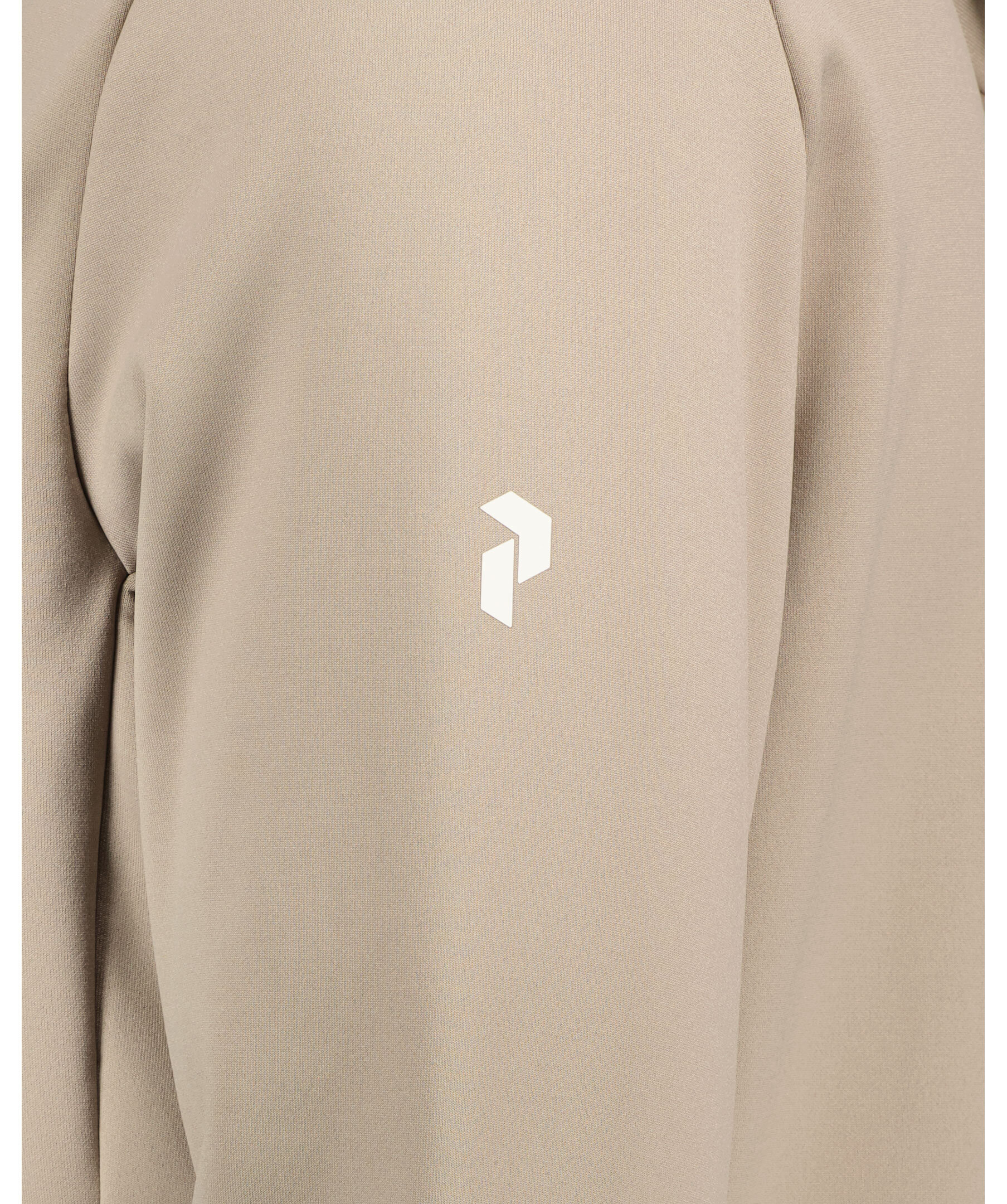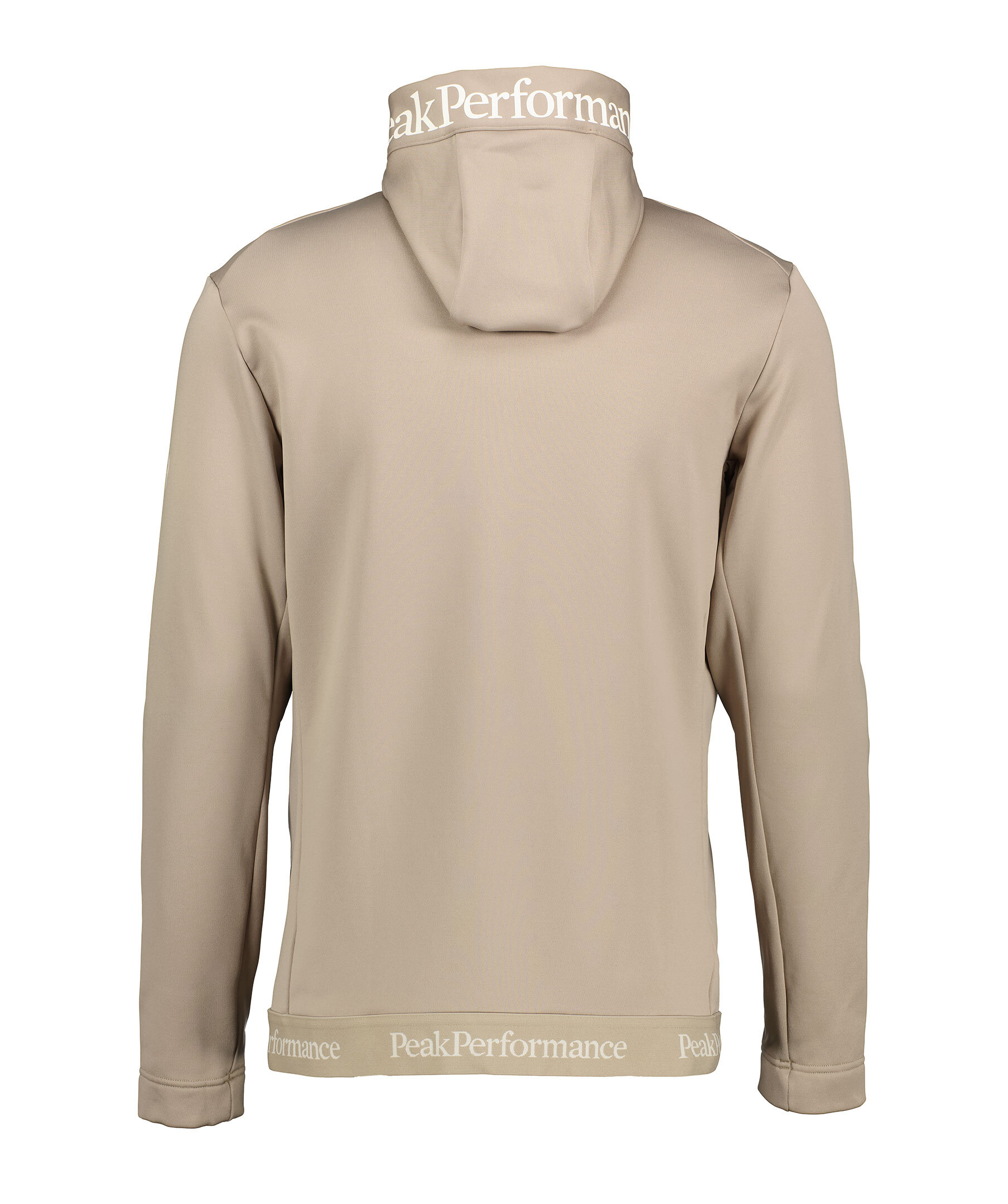 Beige zip-up hoodie från Peak Performance. Hoodien funkar som en mellanlagersjacka och har hög krage, två sidfickor med dragkedja logotyp på huvan, vänster ärm samt vid plaggslut. Tillverkad i en polyesterblandning.