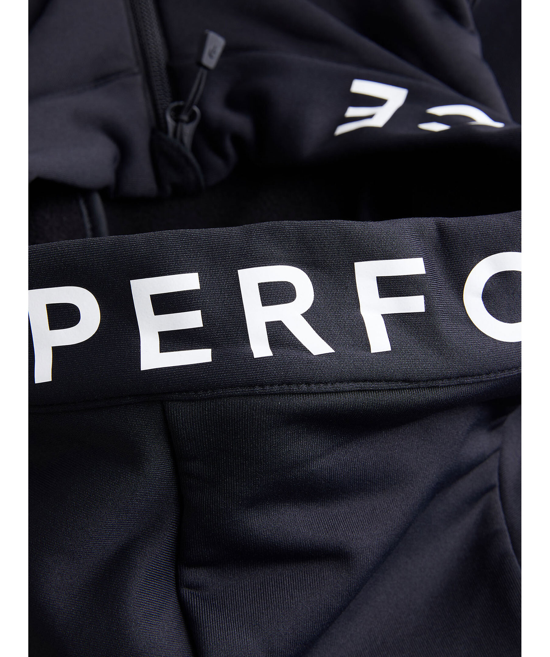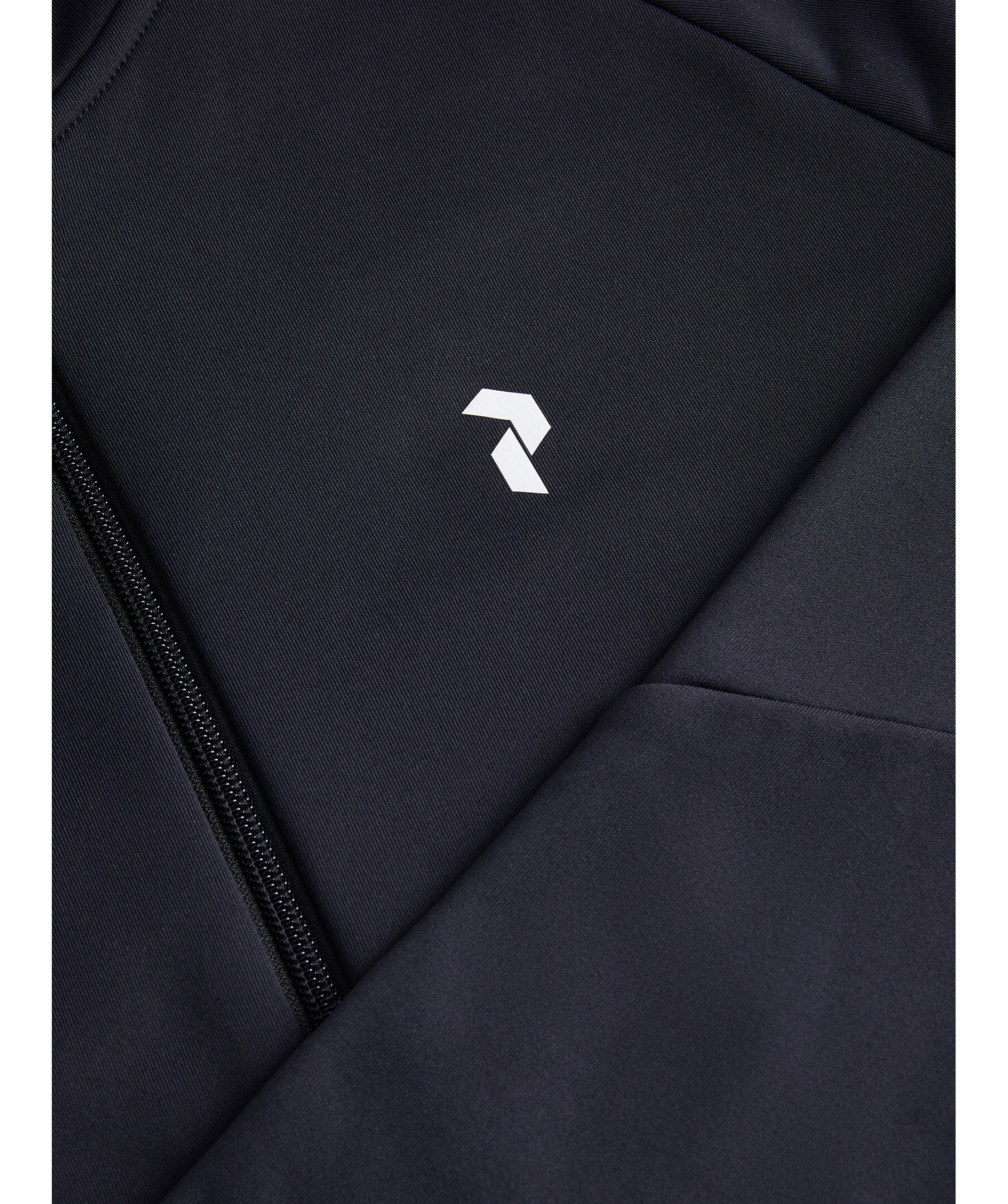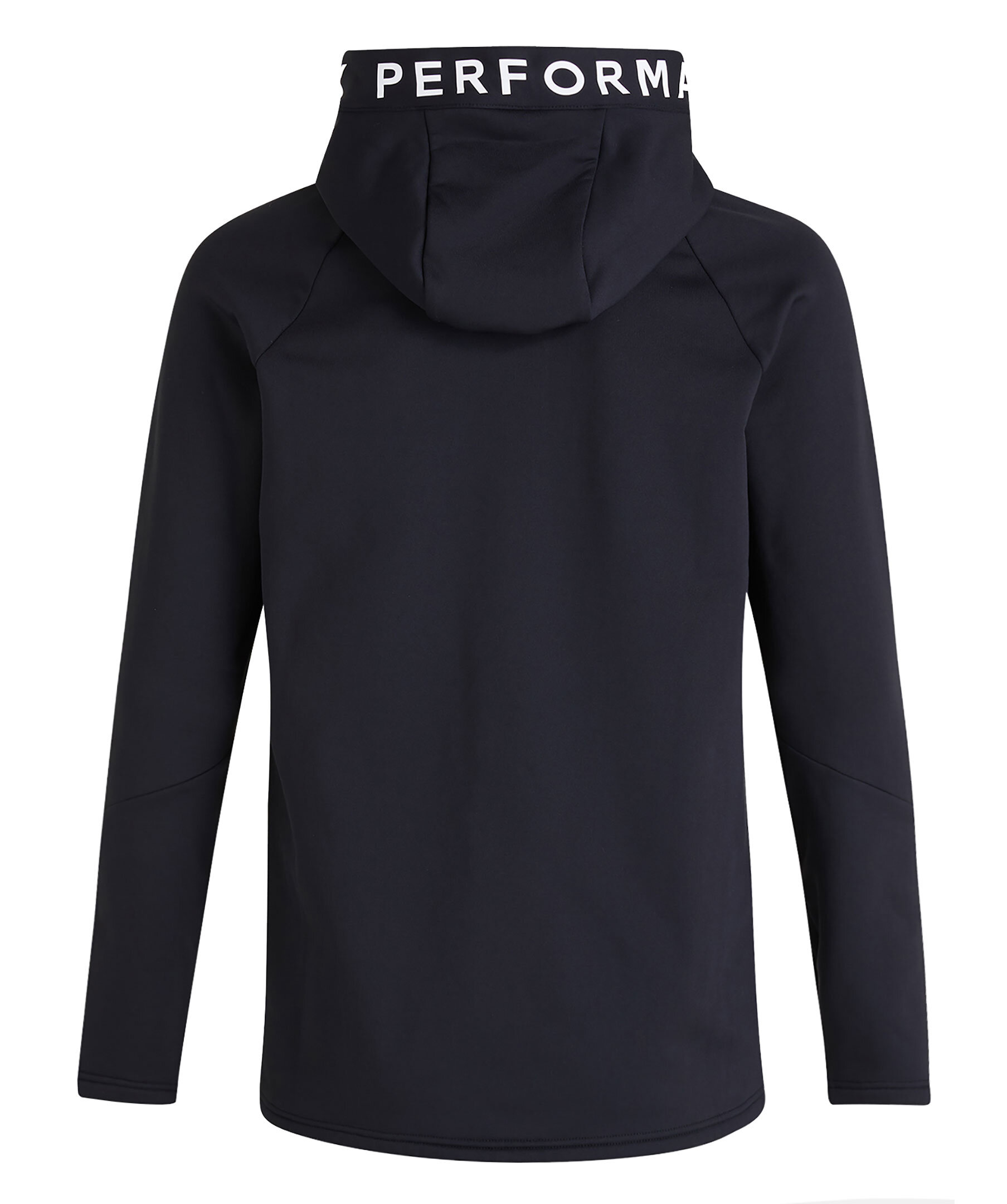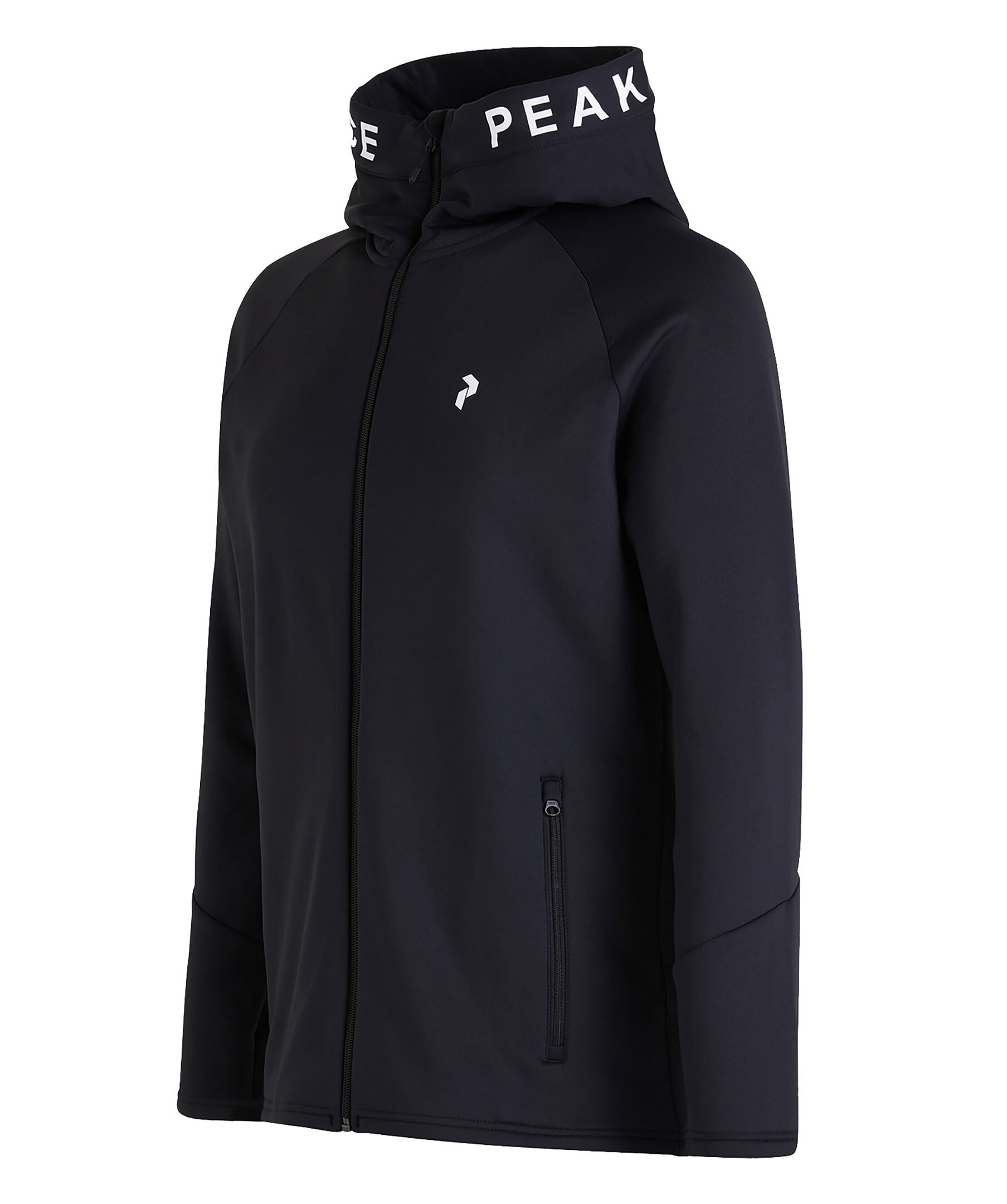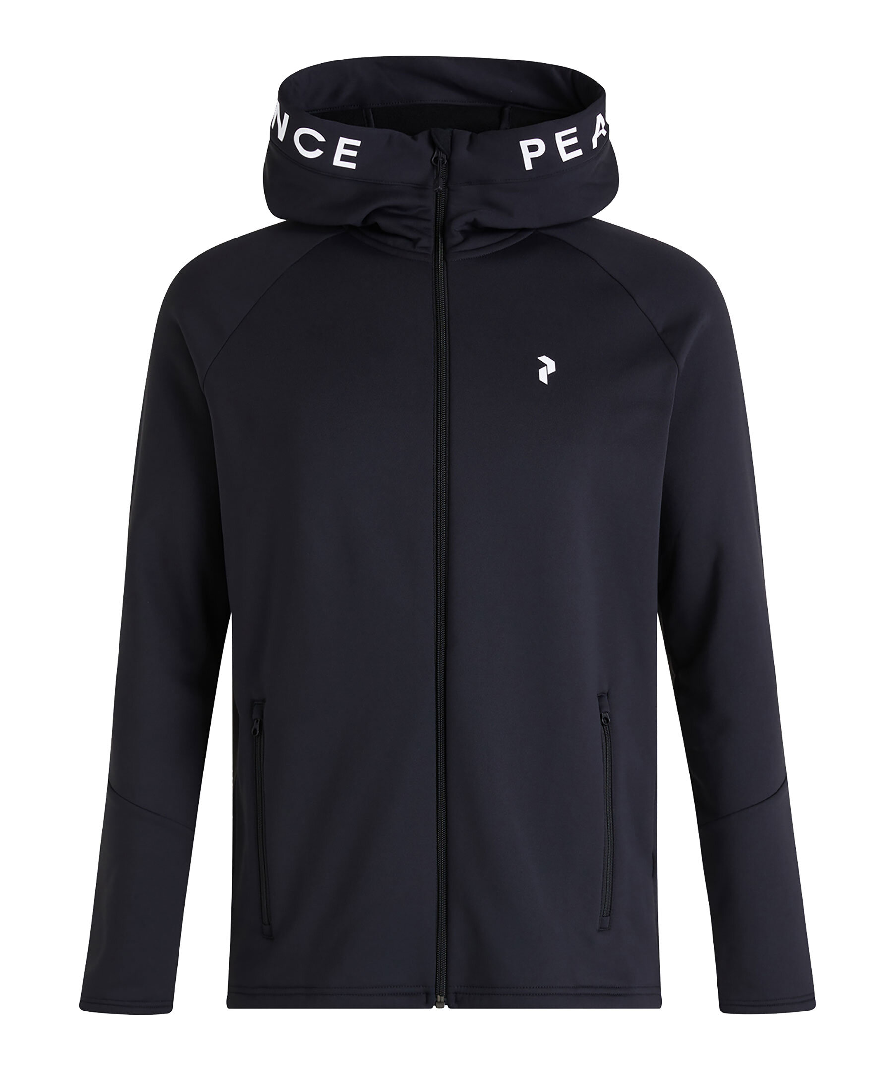 Svart hoodie med zip från Peak Performance. Tröjan är gjord i en stretching polyesterblandning som är både fukttransporterande och snabbtorkande. Använd som en tröja, mellanlager eller som en tunnare jacka beroende på friluftsaktivitet. Luva med vit logotyp runt. Två framfickor med dragkedja och mjukt borstad insida. Liten logotyp på bröstet.