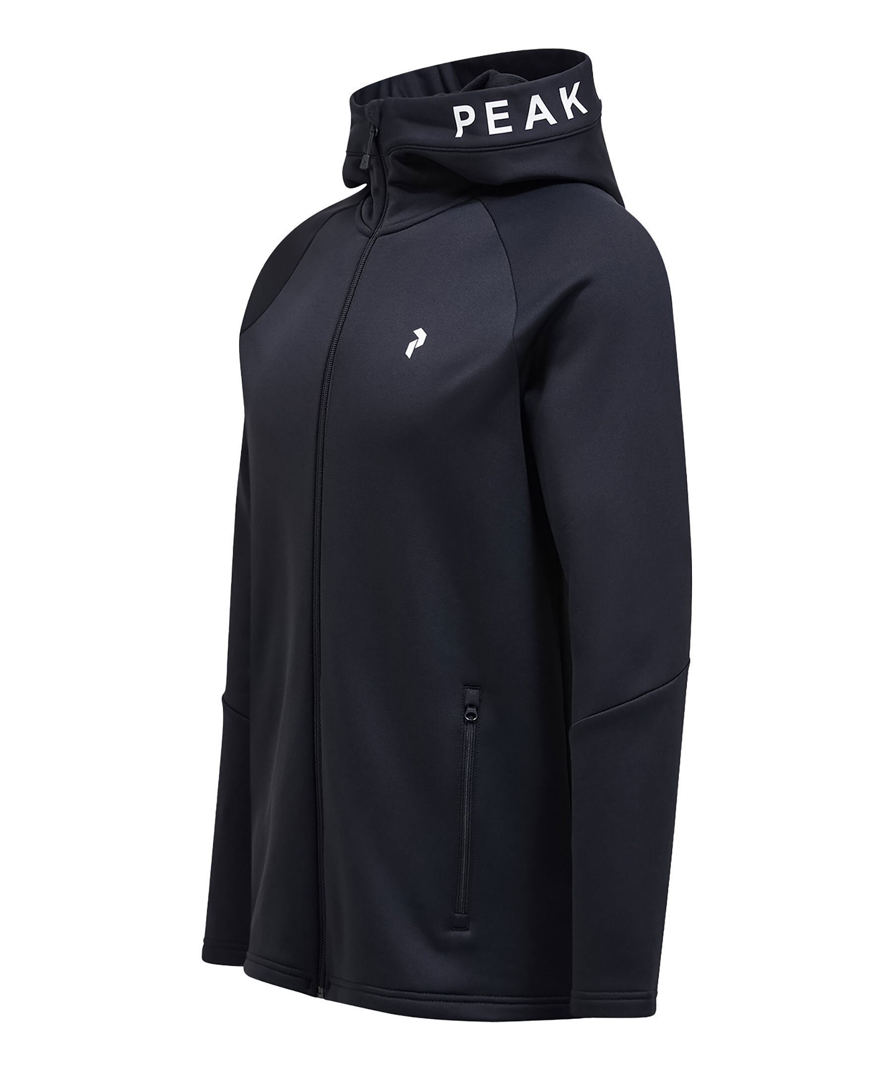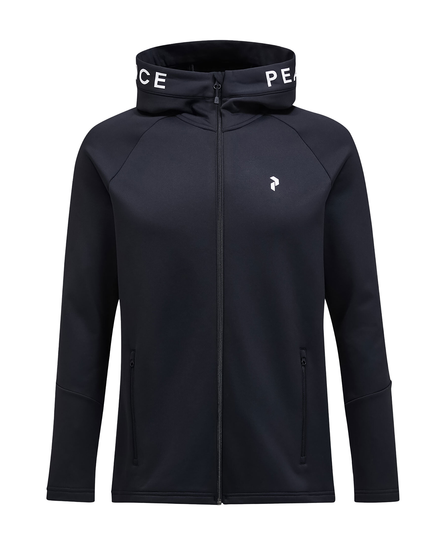 Svart zip-up hoodie med luva från Peak Performance. Tillverkad i en polyesterblandning. Liten logotyp på bröstet samt logotyp runt luvan. Två sidfickor med dragkedja. Normal passform.