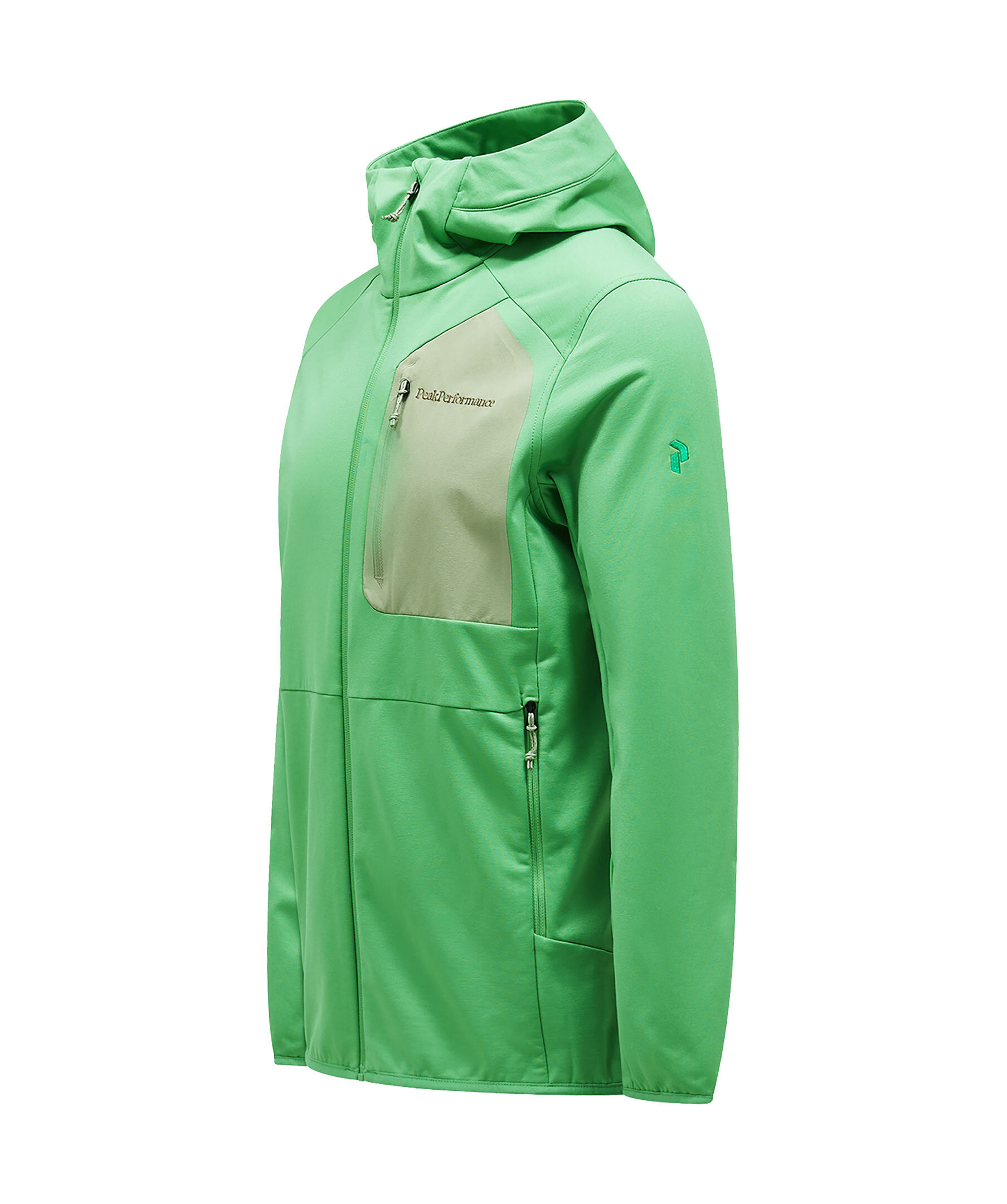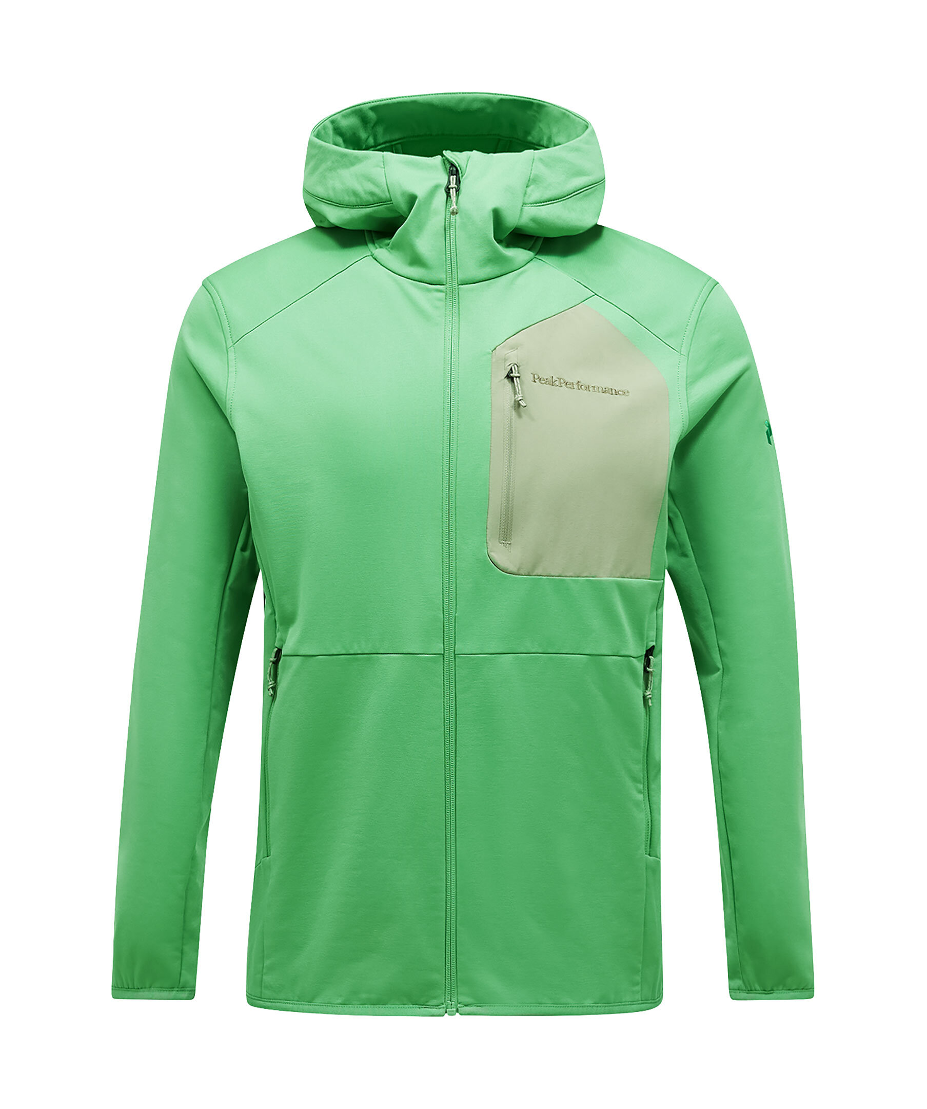 Mintgrön Zip hoodie från Peak Preformance. Hoodien är det perfekta mellanlagret, den är mjuk, lätt och stretchig vilket gör att du kan röra dig lätt. Patch detaljer vid bröstfickan som stängs med dragkedja, samt vid ryggen. Den har även sidofickor och är tillverkad av en polyesterblandning.