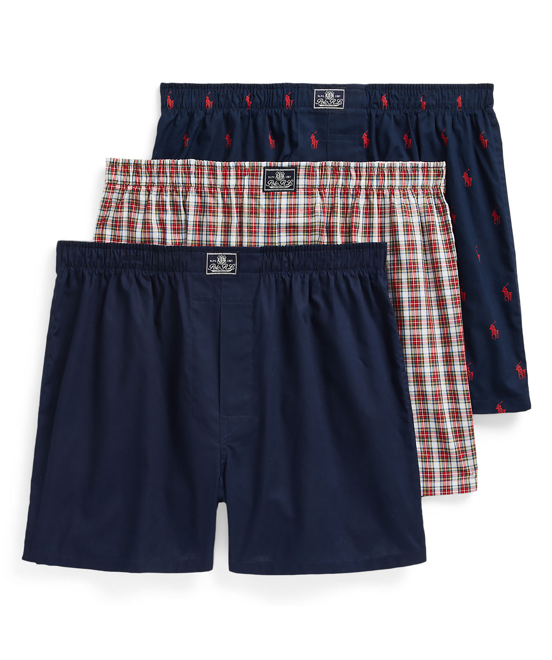3-pack kalsonger i boxermodell från Polo Ralph Lauren. Tillverkade i bomull. Marinblå, rutigt och mörkblå med röda hästar.