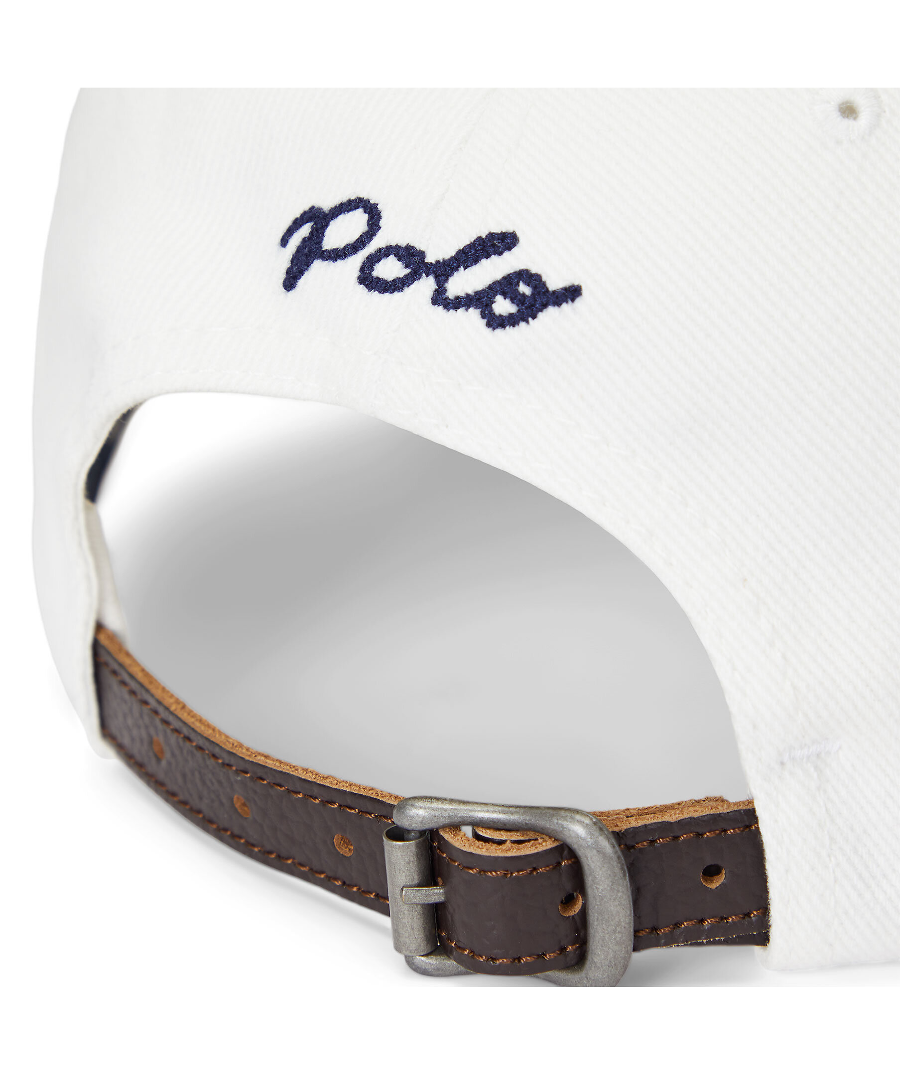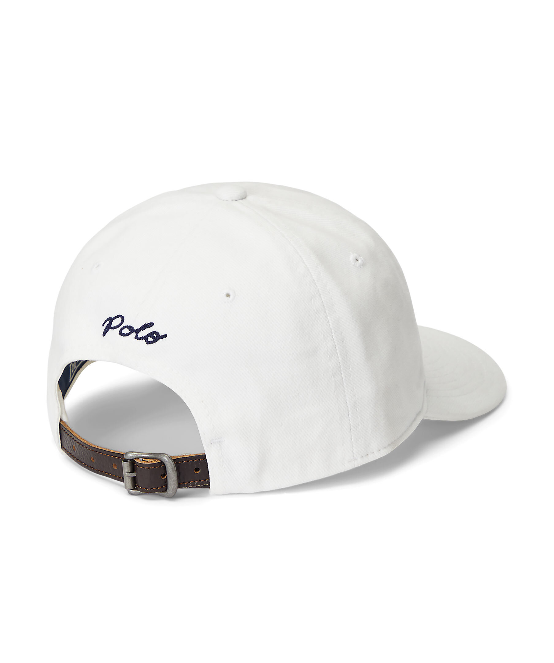 Vit baseballkeps från Polo Ralph Lauren. "Ralph" patch applicerad på framsidan. "Polo" broderi och en spännad läderrem på baksidan. Sömad näbb. Sexpanelskonstruktion. Broderade ventilerande öljetter. Svettband på insidan. Fodrade frontpaneler. Skal och frontpanelsfoder: 100 % bomull. Rem: 100% läder.