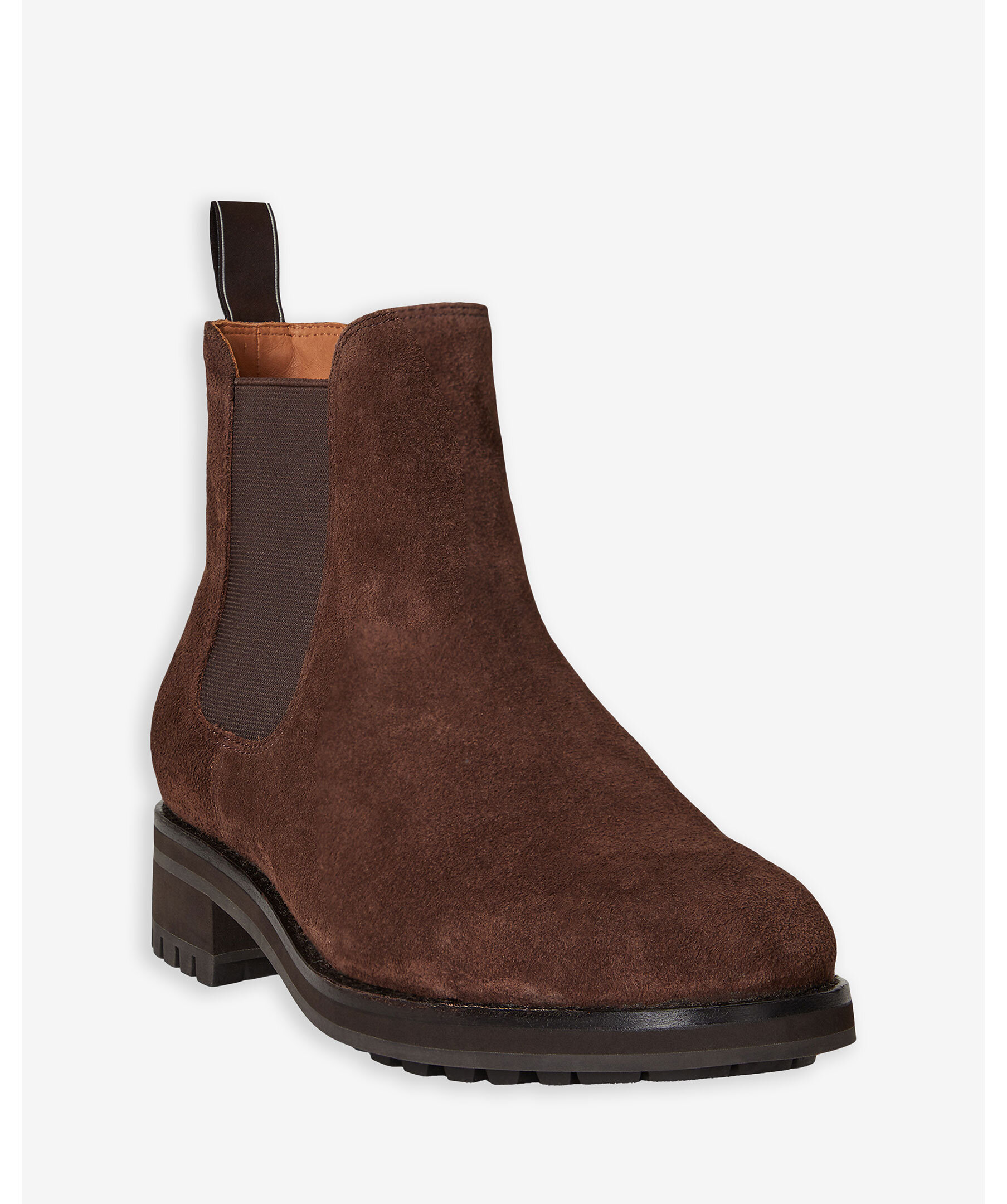 En sofistikerad Chelsea-boot i mocka med rund tå och resårpaneler för enkel passform. Designad med vävd logotypflik med Polo och signatur-Pony vid hälen, vadderad innersula i läder samt robust gummisula med läderram för hållbarhet och komfort.