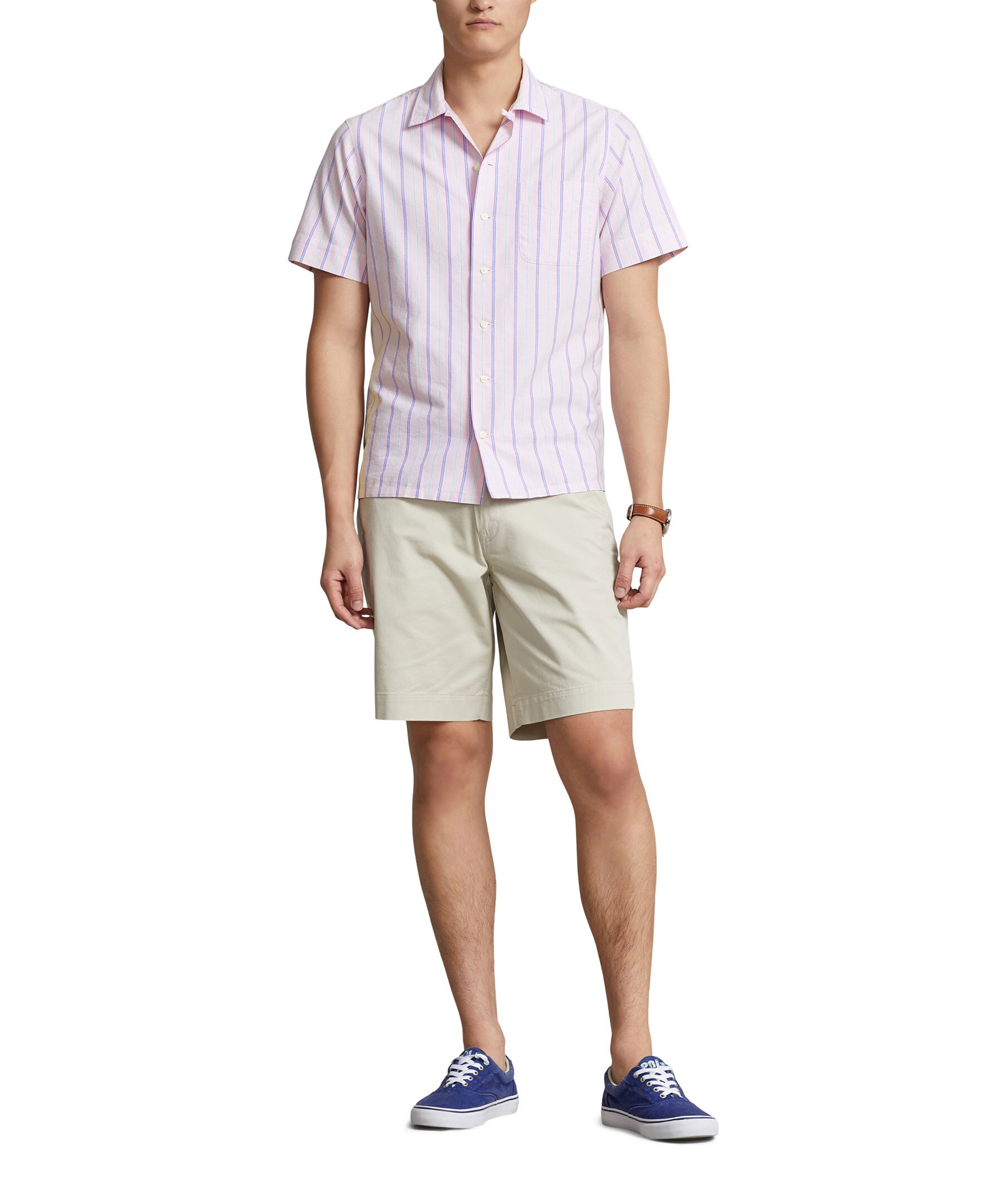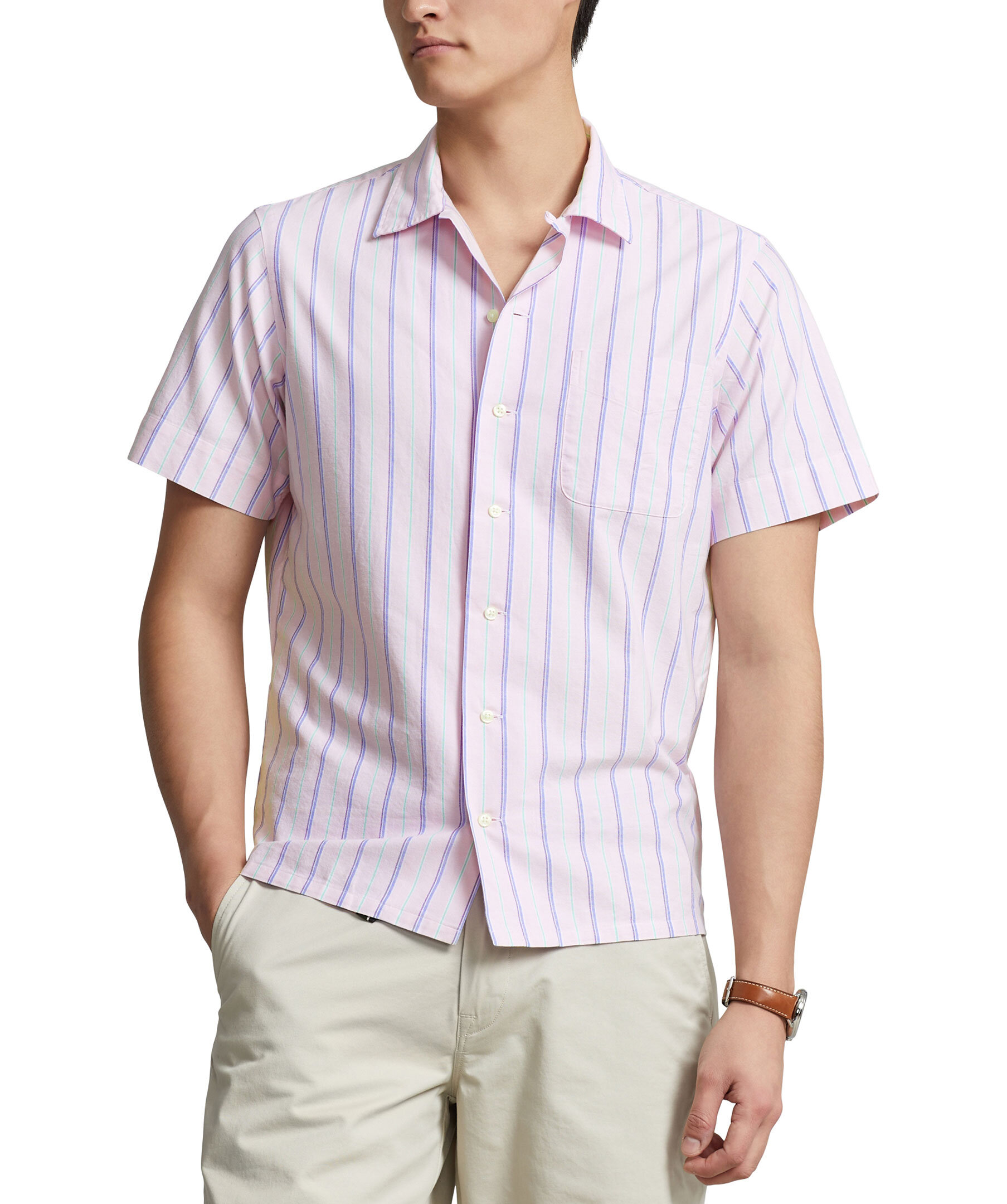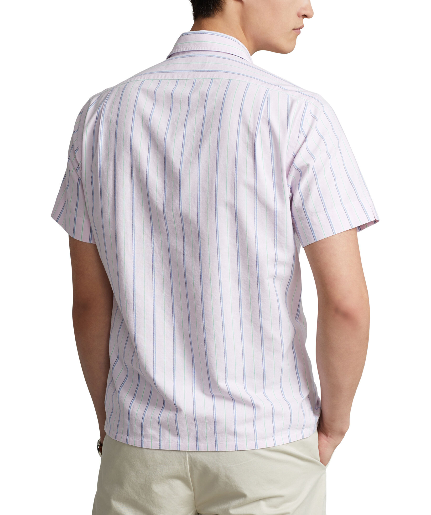 Rosa kortärmad Oxford skjorta från Polo Ralph Lauren. Skjortan är gjord i ett lättvikts bomullstyg i en klassisk passform. Randigt mönster i blått och grönt. Modellen har på sig storlek M och är 185cm.
