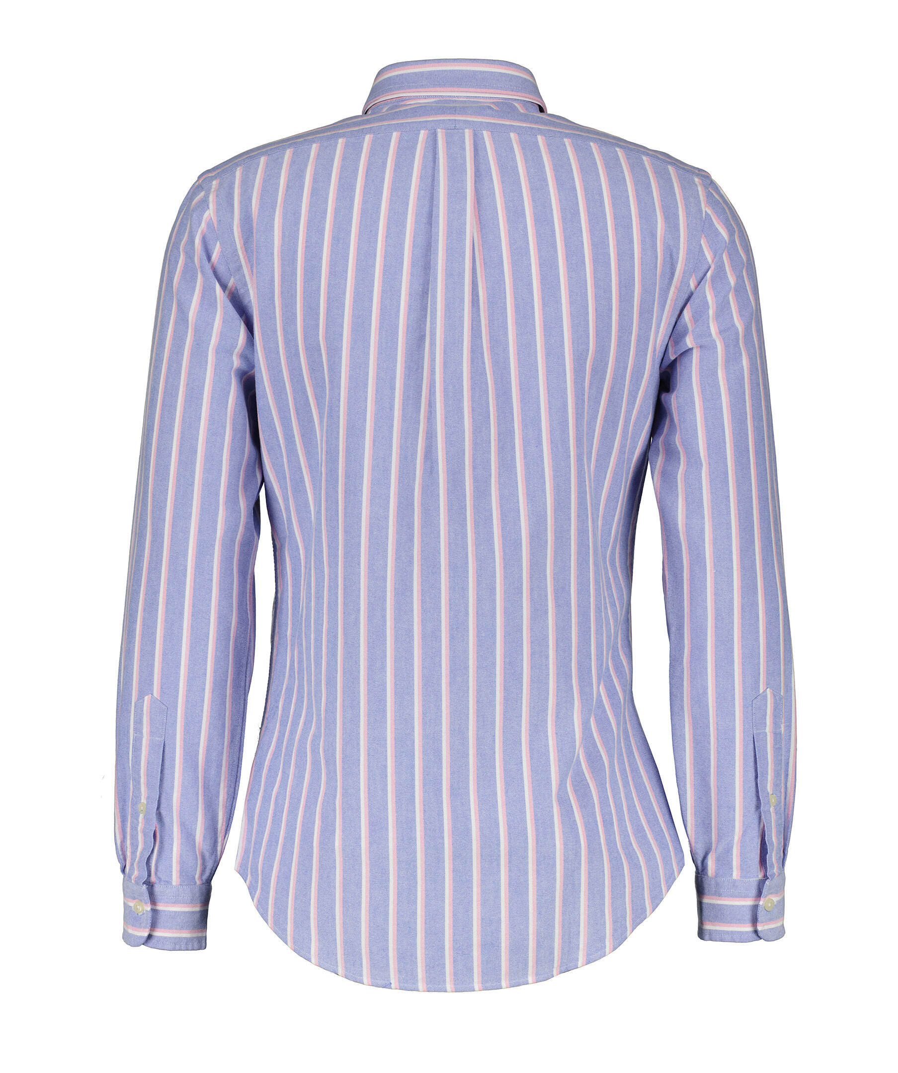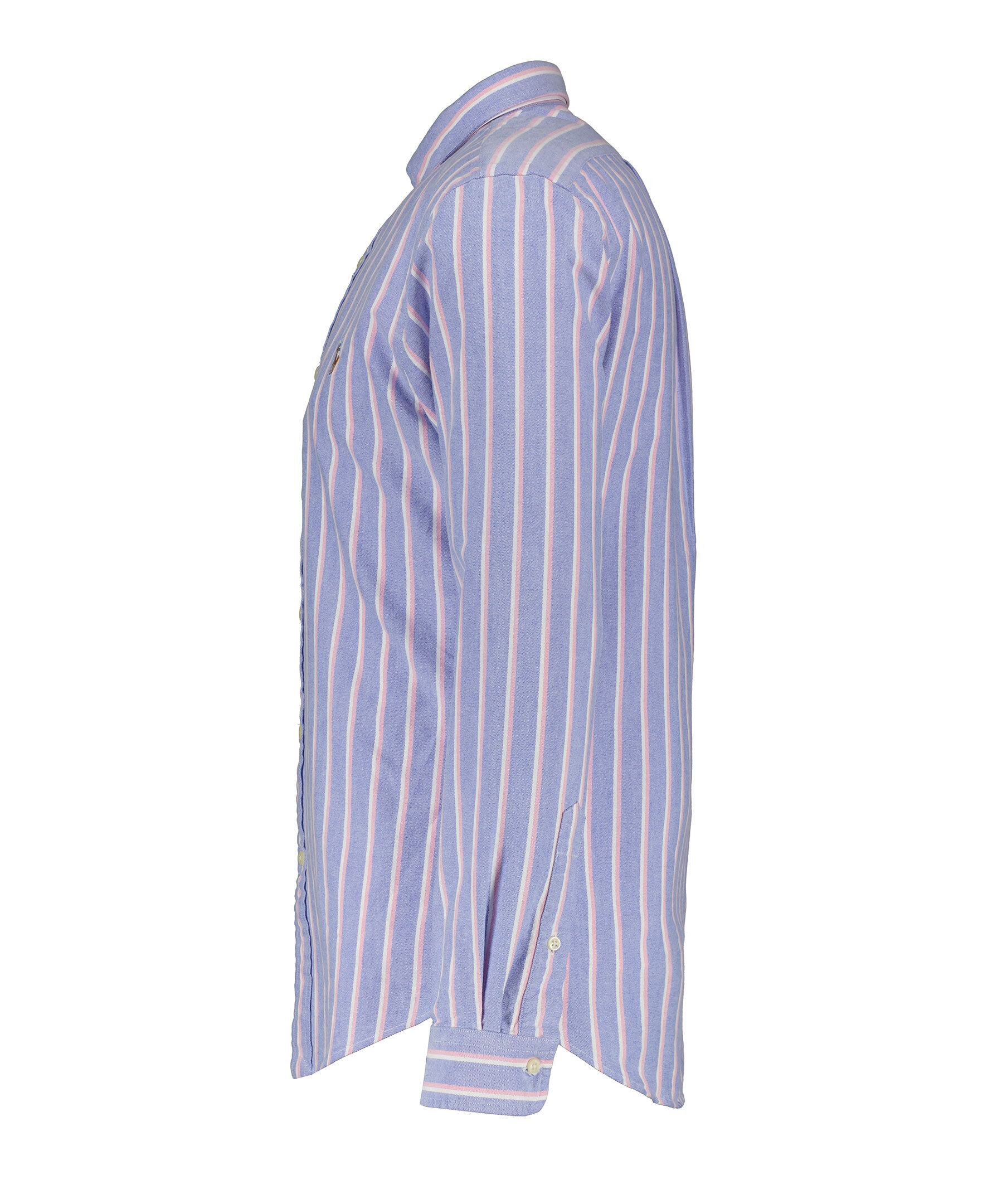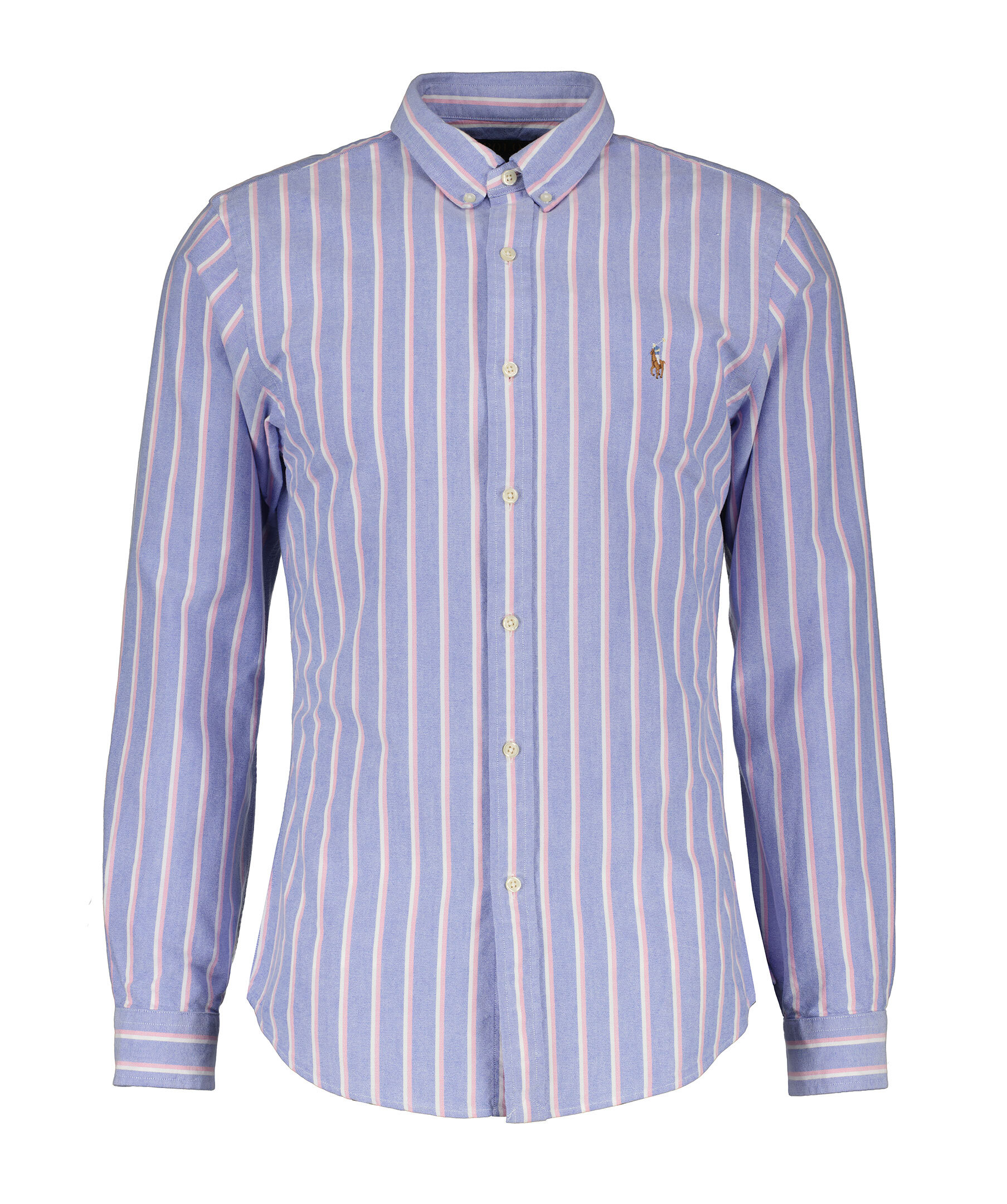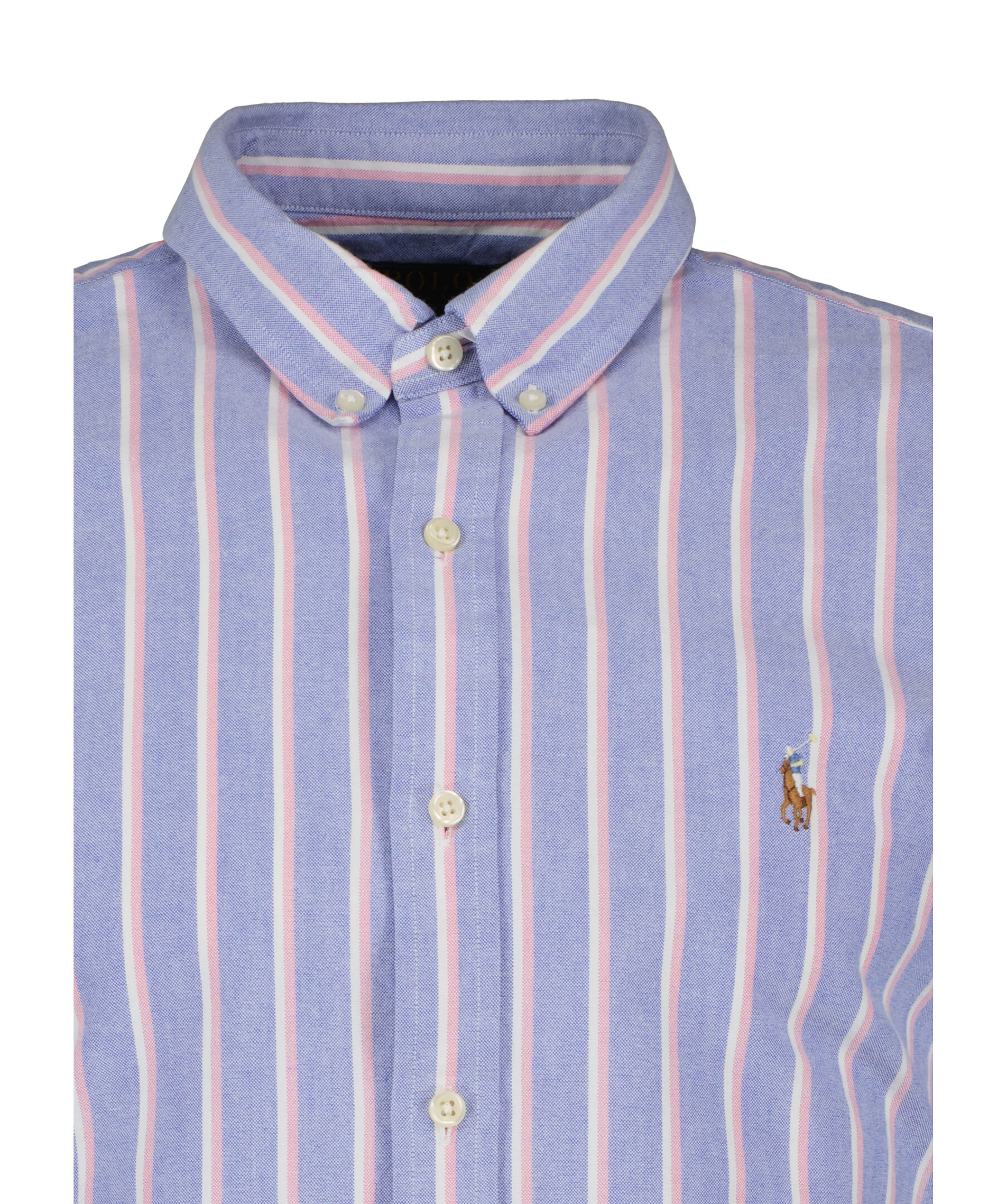 Blå randig skjorta från Polo Ralph Lauren. Skjortan har tjocka blåa ränder, samt små rosa och vita. Button down krage och broderad logotyp på vänster bröst. Tillverkad av 100% cotton.