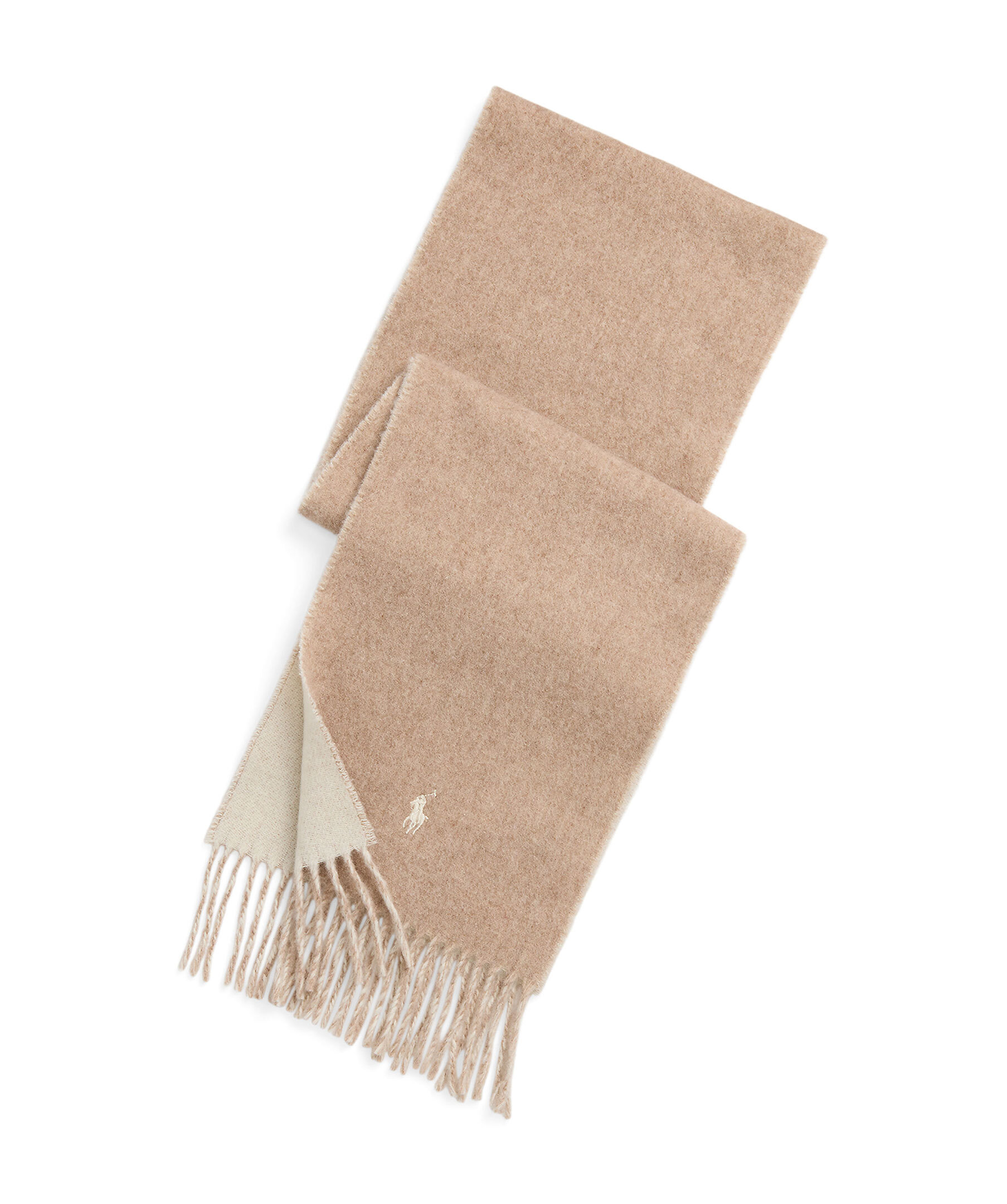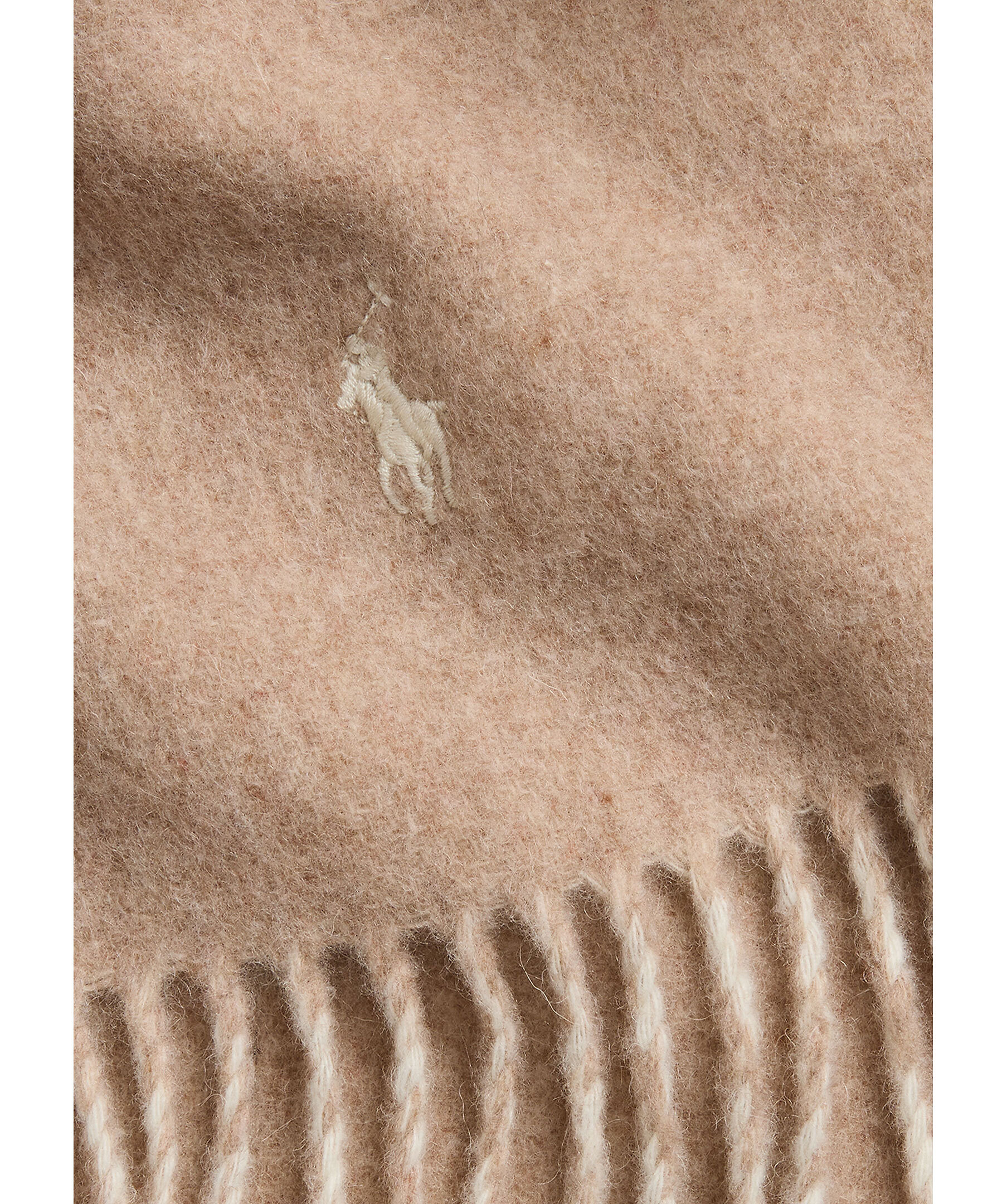 Beige och ljusbeige halsduk från Polo Ralph Lauren. Halsduken har en beige sida och en ljusare beige sida samt broderad logotyp och fransar i nederkant. Tillverkad i en mjuk ullblandning. Mått: 182,9 cm x 25,4 cm.