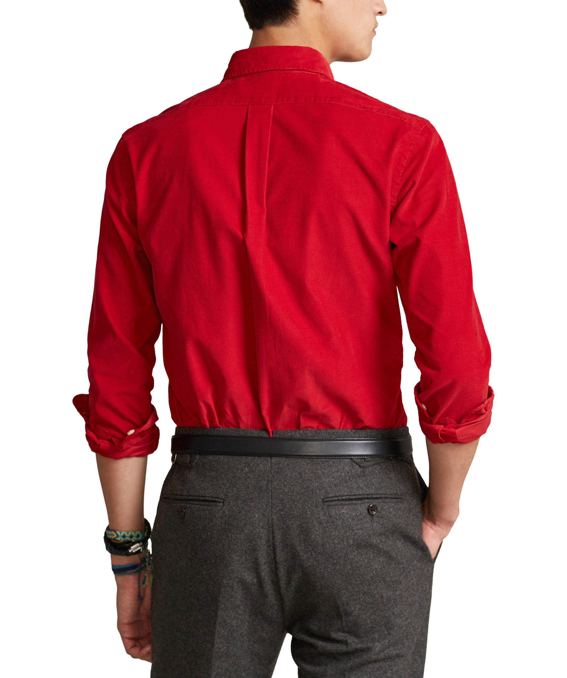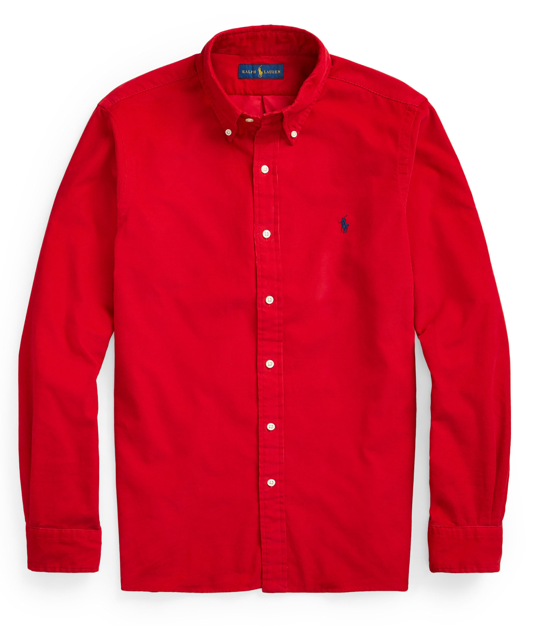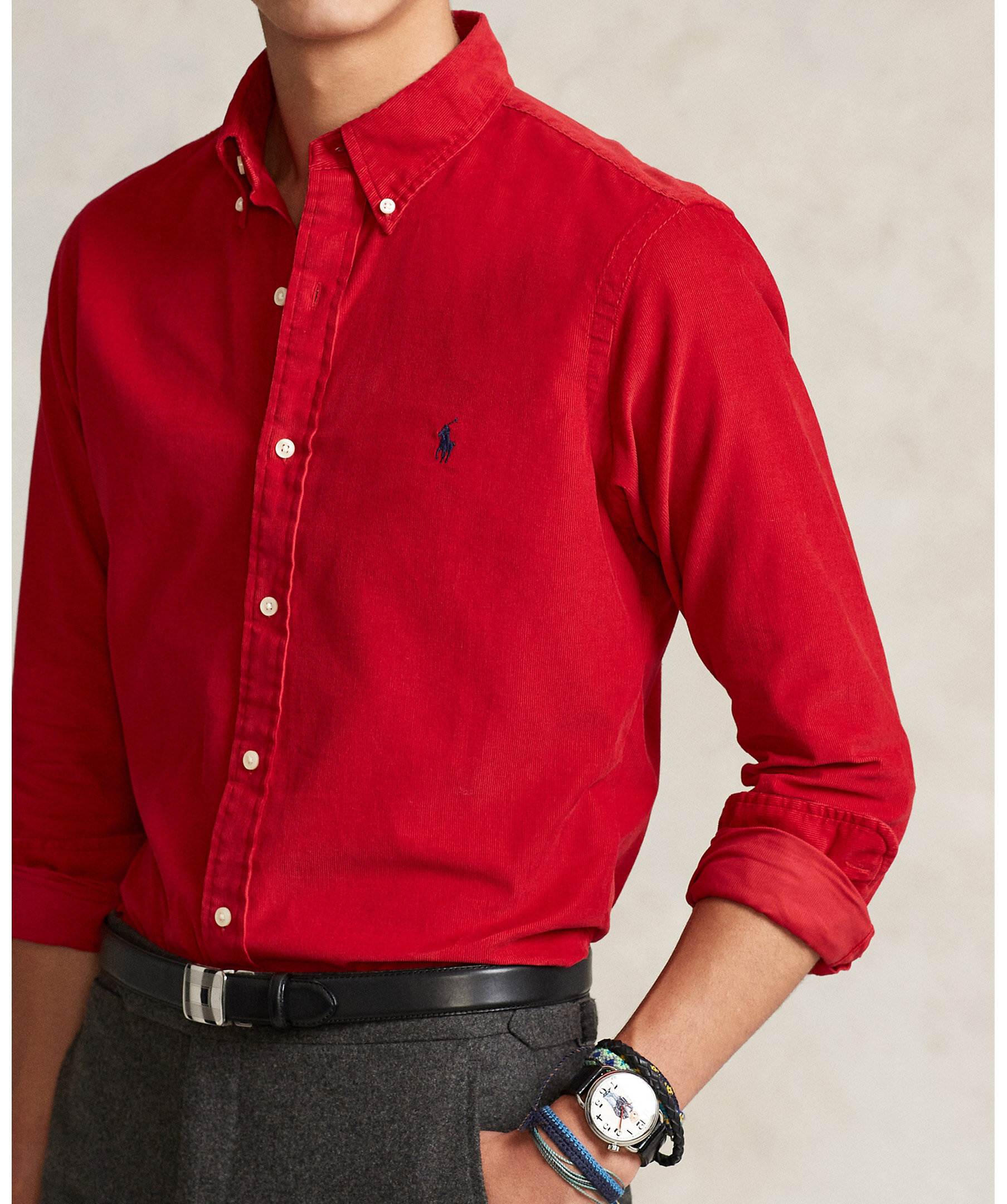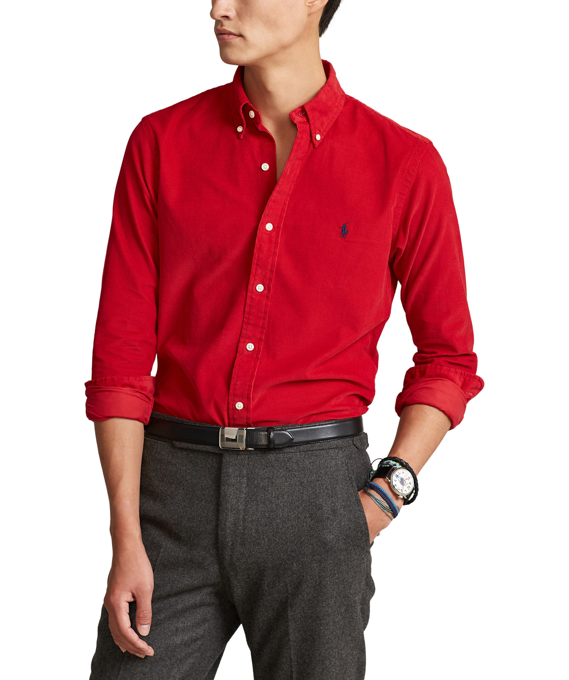 Röd skjorta i fin manchester från Polo Ralph Lauren. Button-down krage och slim fit modell. Knappslå, långa ärmar med manschetter med knäppning nedtill och delat ok bak med ett veck ger en bekväm passform. Signaturbroderad häst på vänster bröst. Tillverkad i Bomull.