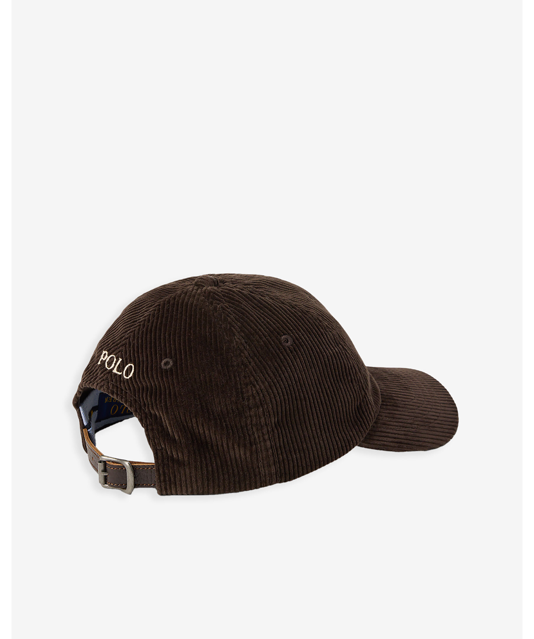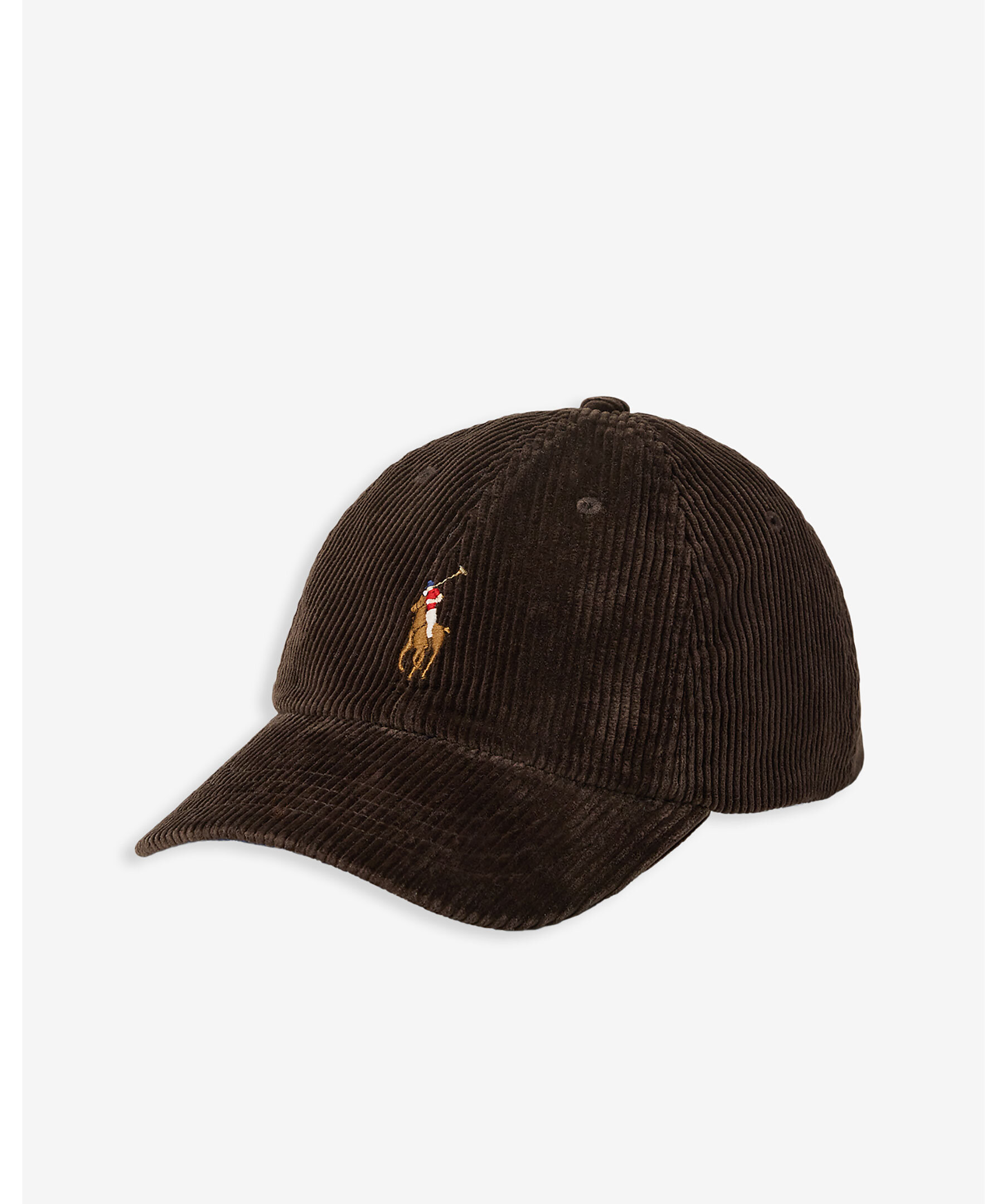 Mörkbrun keps i manchestertyg från Polo Ralph Lauren. Broderad polohäst på framsidan och logga på baksidan.
