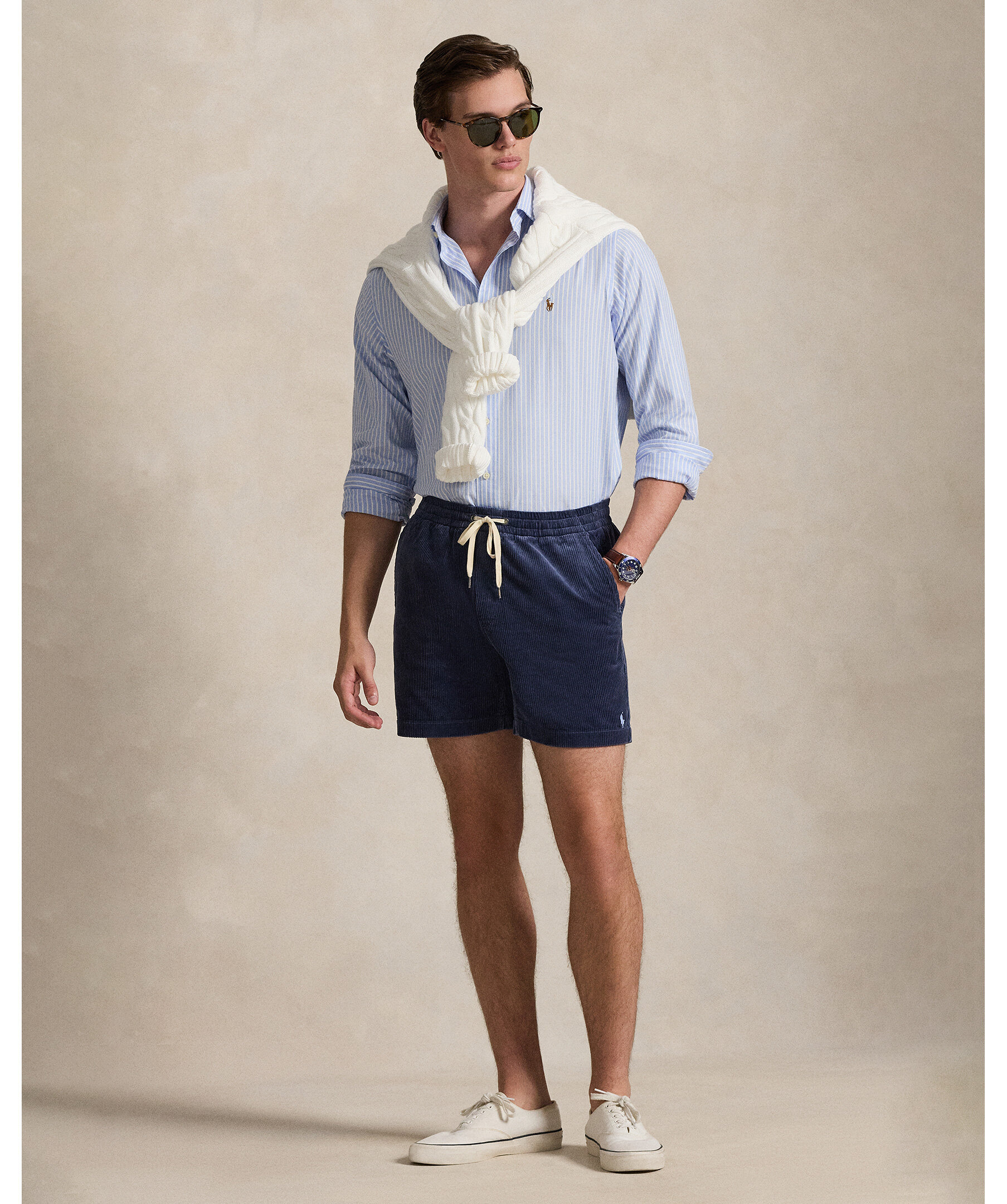 Mörkblå shorts i manchester från Polo Ralph Lauren. Shorts med 15 cm innerbenslängd med en bekväm dragsko i midjan. Det här paret är tillverkat av mjuk, bred manchester för en klassisk look.