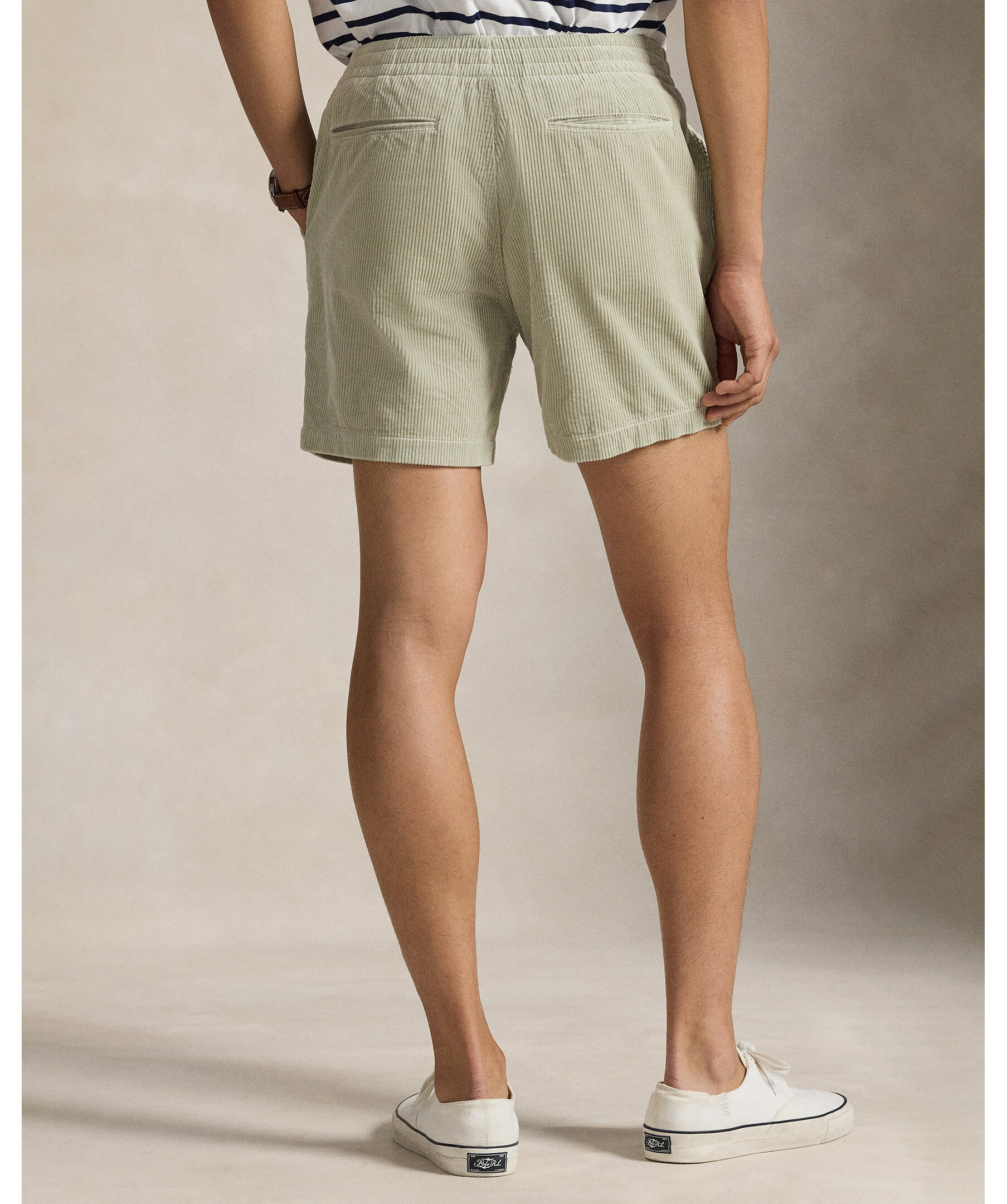 Gröna shorts från Polo Ralph Lauren. 15 cm innerbenslängd och med en bekväm dragsko i midjan. Det här paret är tillverkat av mjuk, bred manchester för en klassisk look.