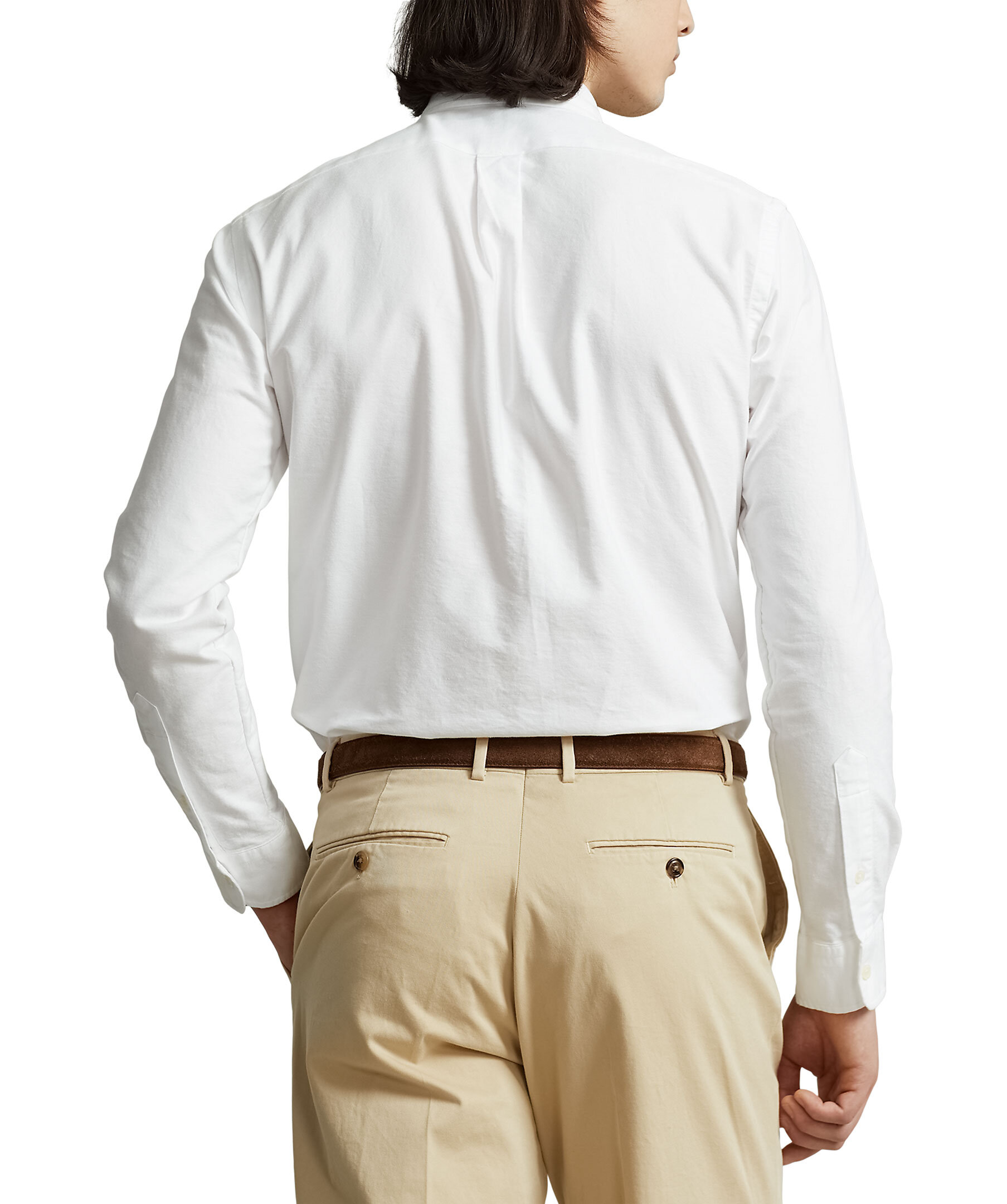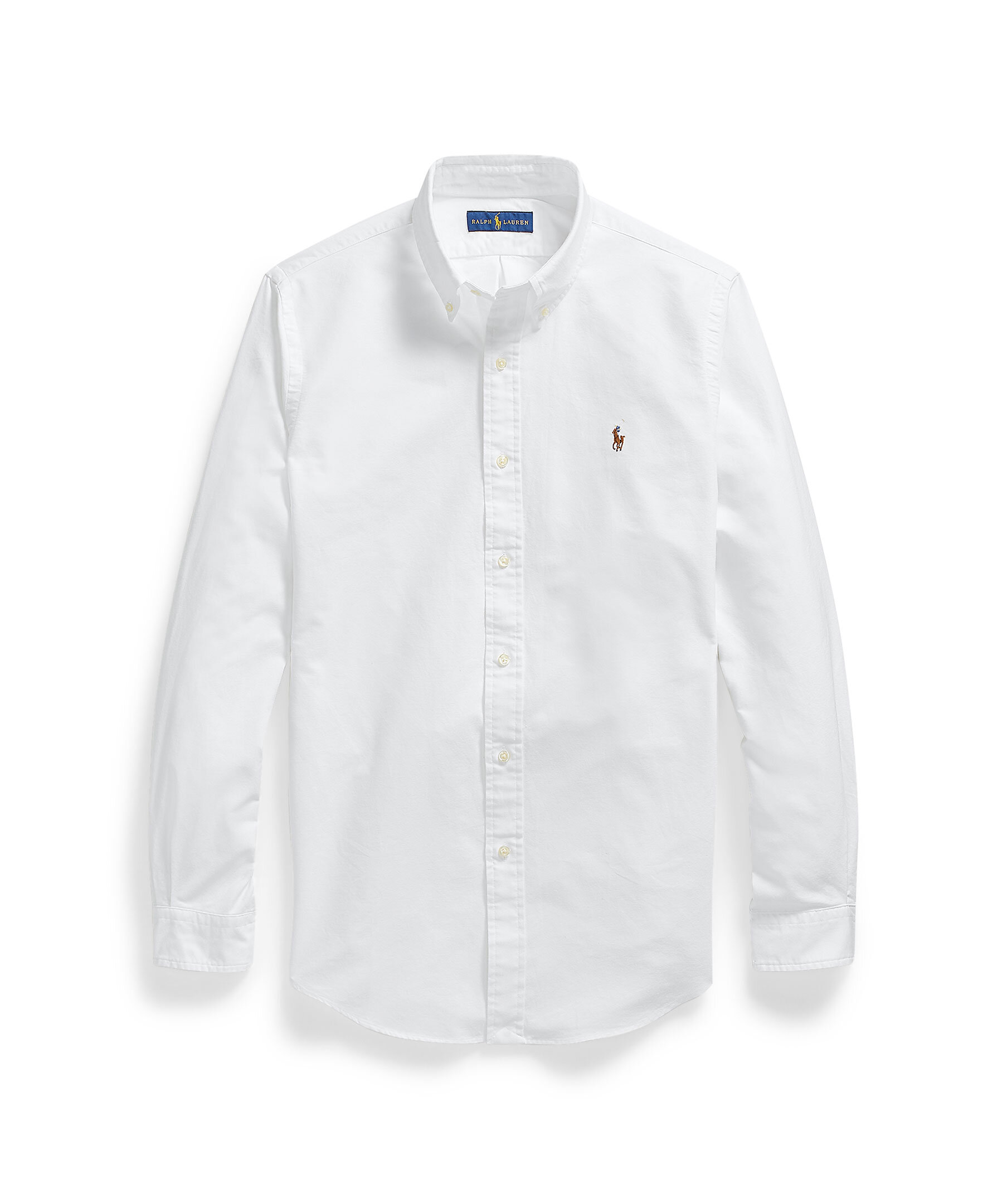 Vit oxfordskjorta från Polo Ralph Lauren i custom fit. Skräddarsydd genom midjan. Button-down krage. Långa ärmar med manschetter med knäppning. Delat bak ok med ett veck ger en bekväm passform och ett större rörelseomfång. Broderad signaturponny på vänster bröst. Tillverkad i bomull.