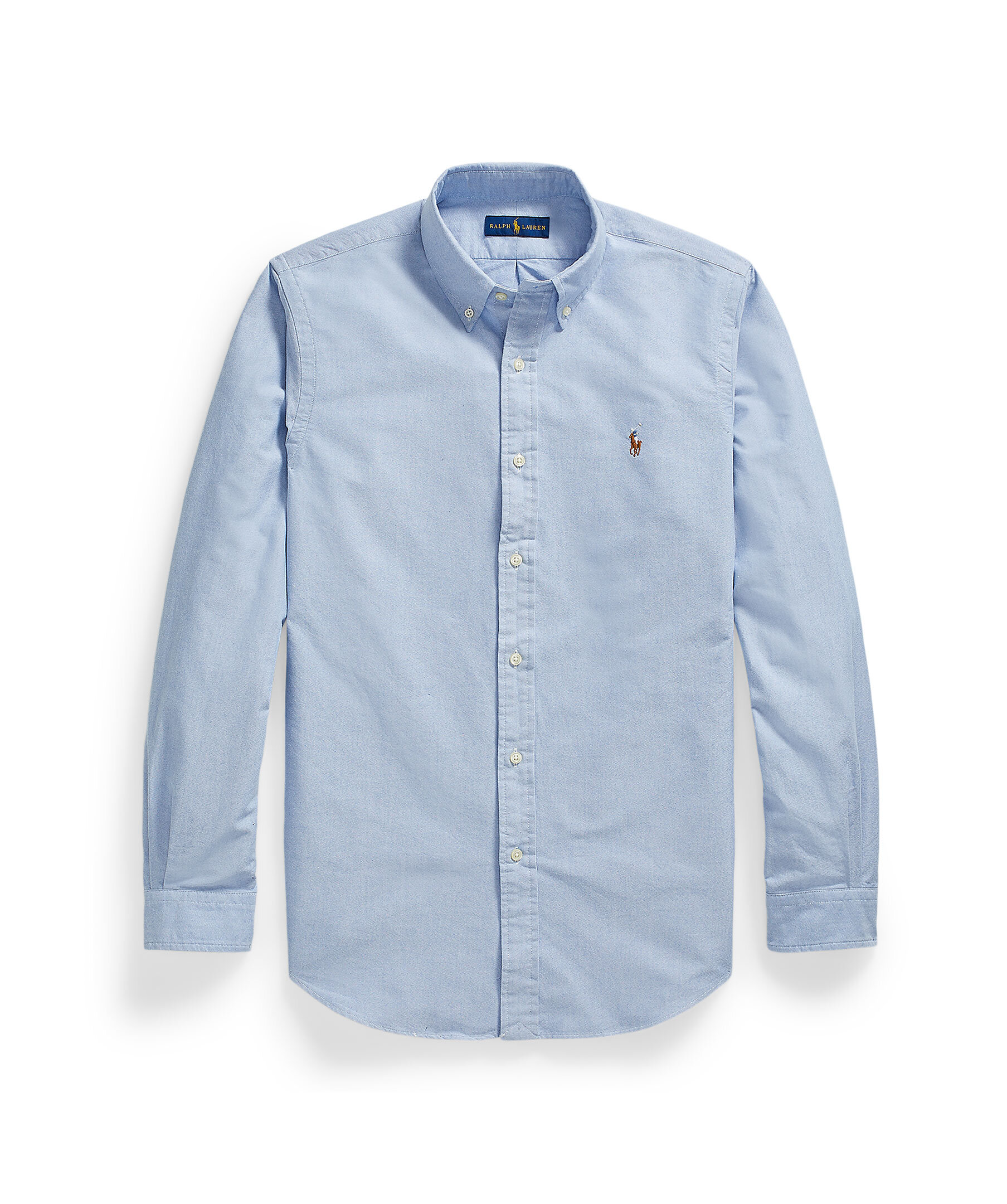 Blå oxfordskjorta från Polo Ralph Lauren i custom fit. Skräddarsydd genom midjan. Button-down krage. Långa ärmar med manschetter med knäppning. Delat bak ok med ett veck ger en bekväm passform och ett större rörelseomfång. Broderad signaturponny på vänster bröst. Tillverkad i bomull.