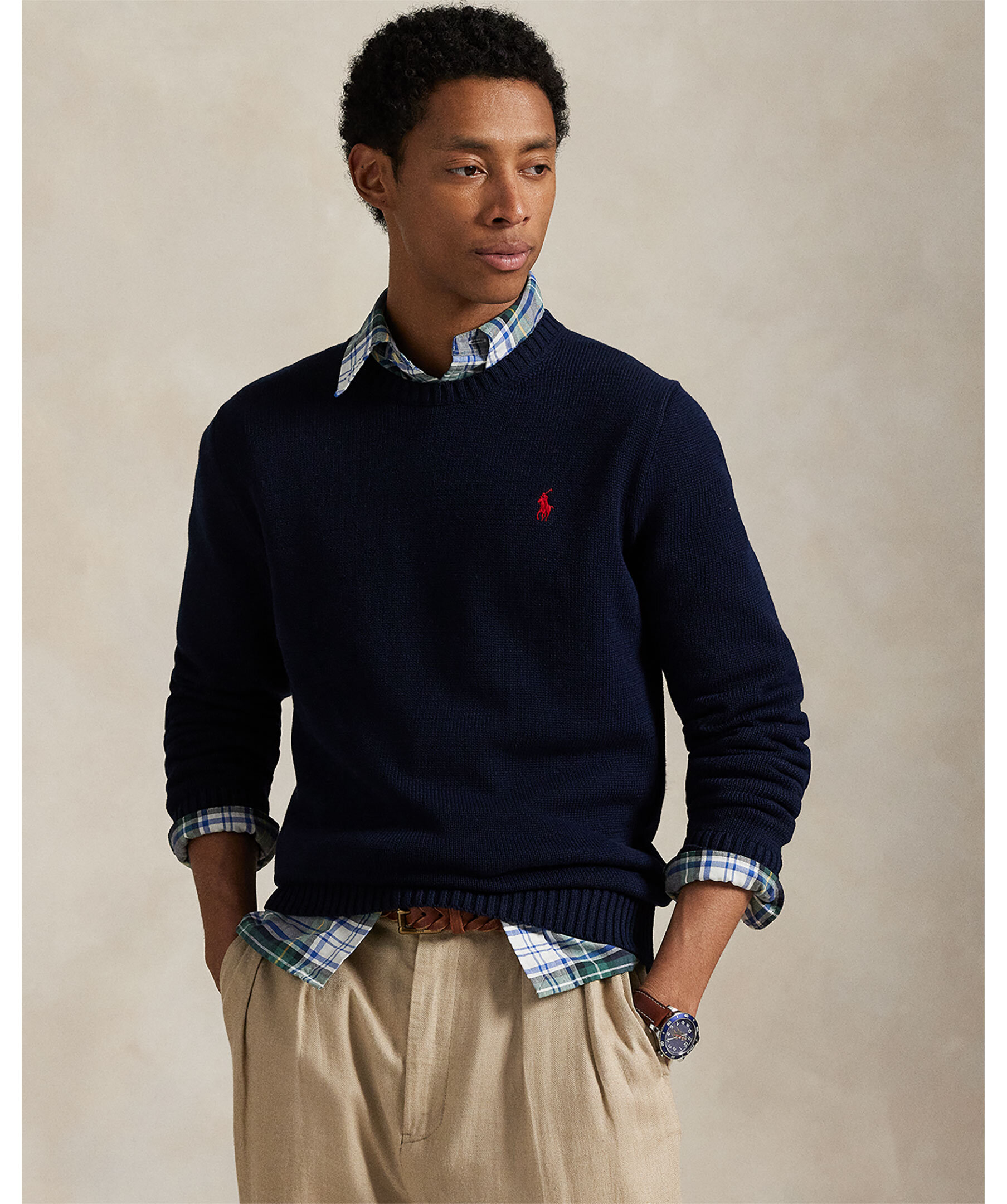 Marinblå, stickad tröja från Polo Ralph Lauren. Röd, broderad logga på bröstet, rak modell och rundad halsringning. Smal ribbad halsringning och bredare ribbade muddar i ärmslut och plaggslut. Tillverkad i 100% bomull. * Rundad halsringning * Broderad logotyp * Ribbade muddar