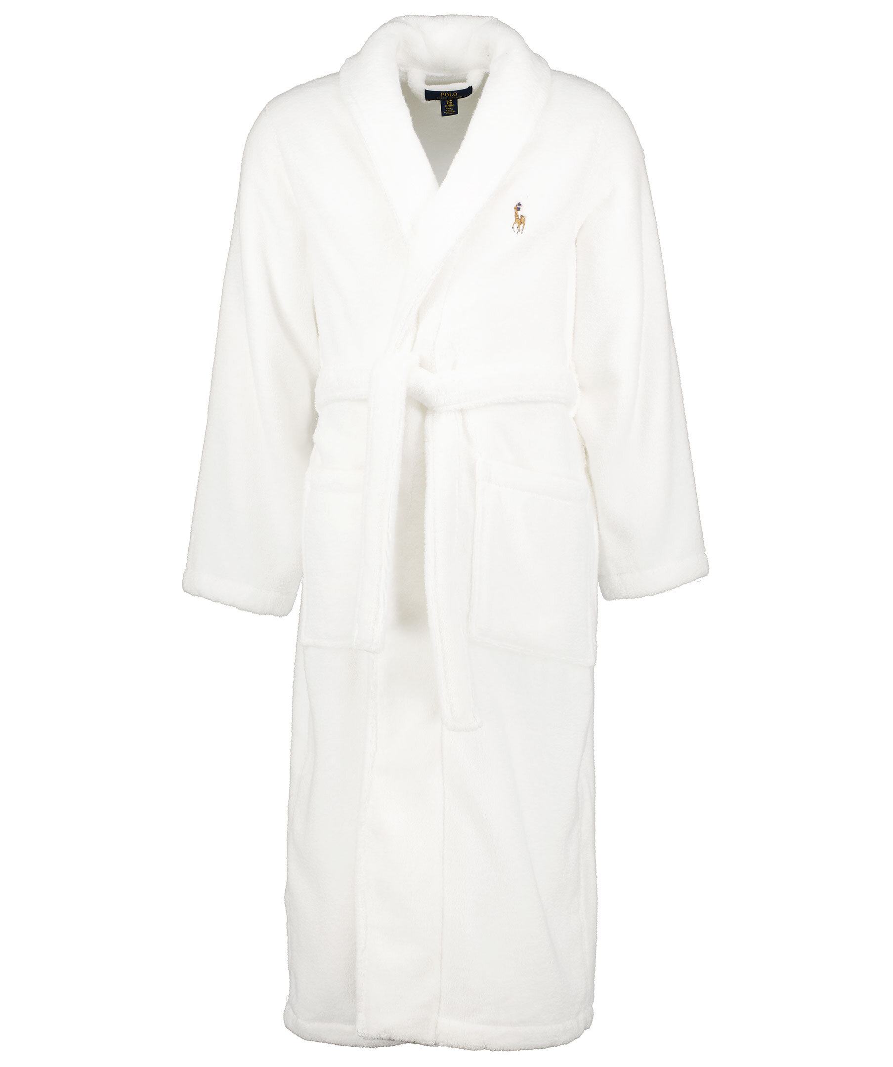 Mjuk, vit morgonrock i 100% bomull från Polo Ralph Lauren. Klassisk modell med mjuka slag och stora fickor. Vitt skärp i samma material som knyts i midjan. Liten logotyp på vänster sida av bröstet.