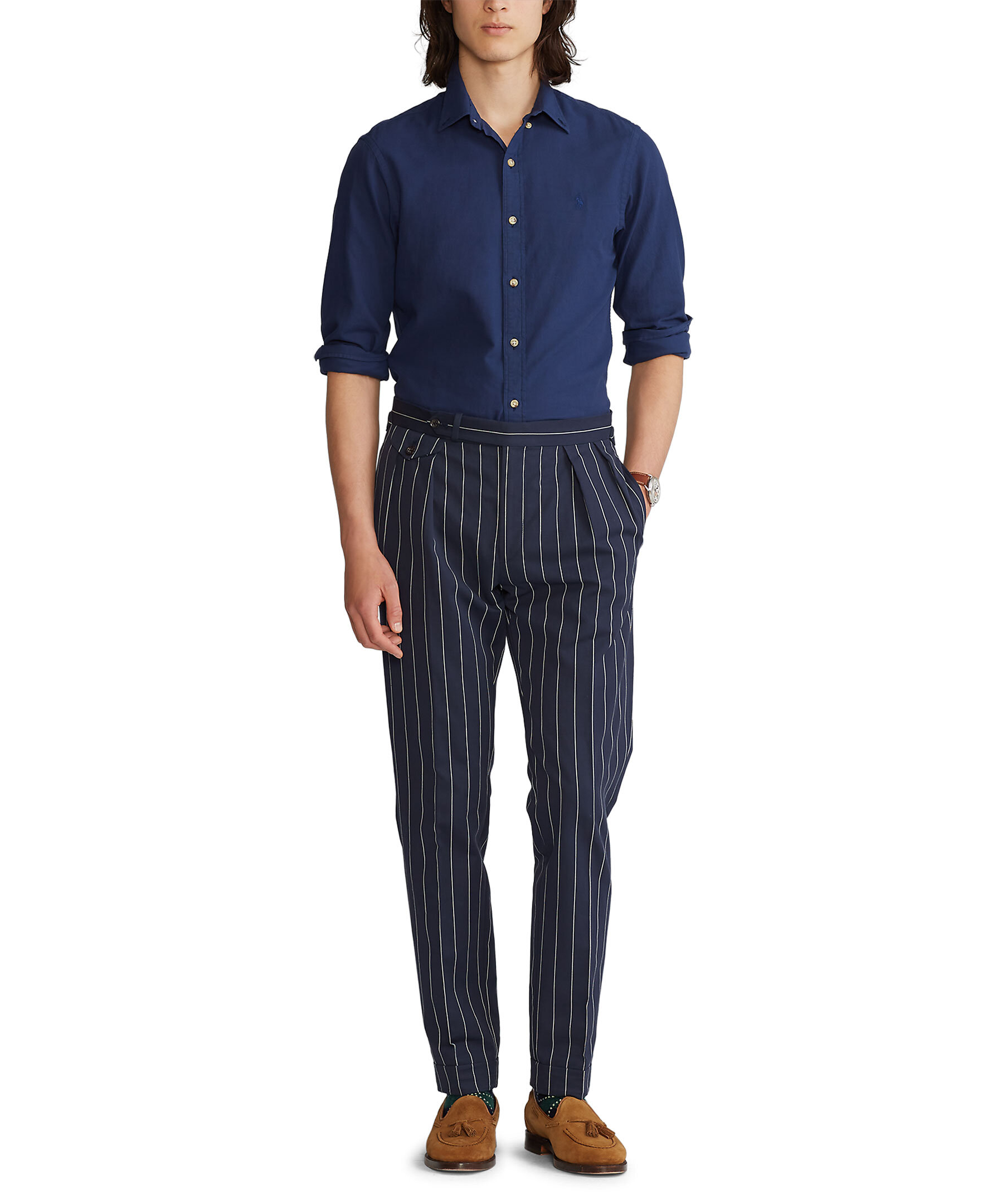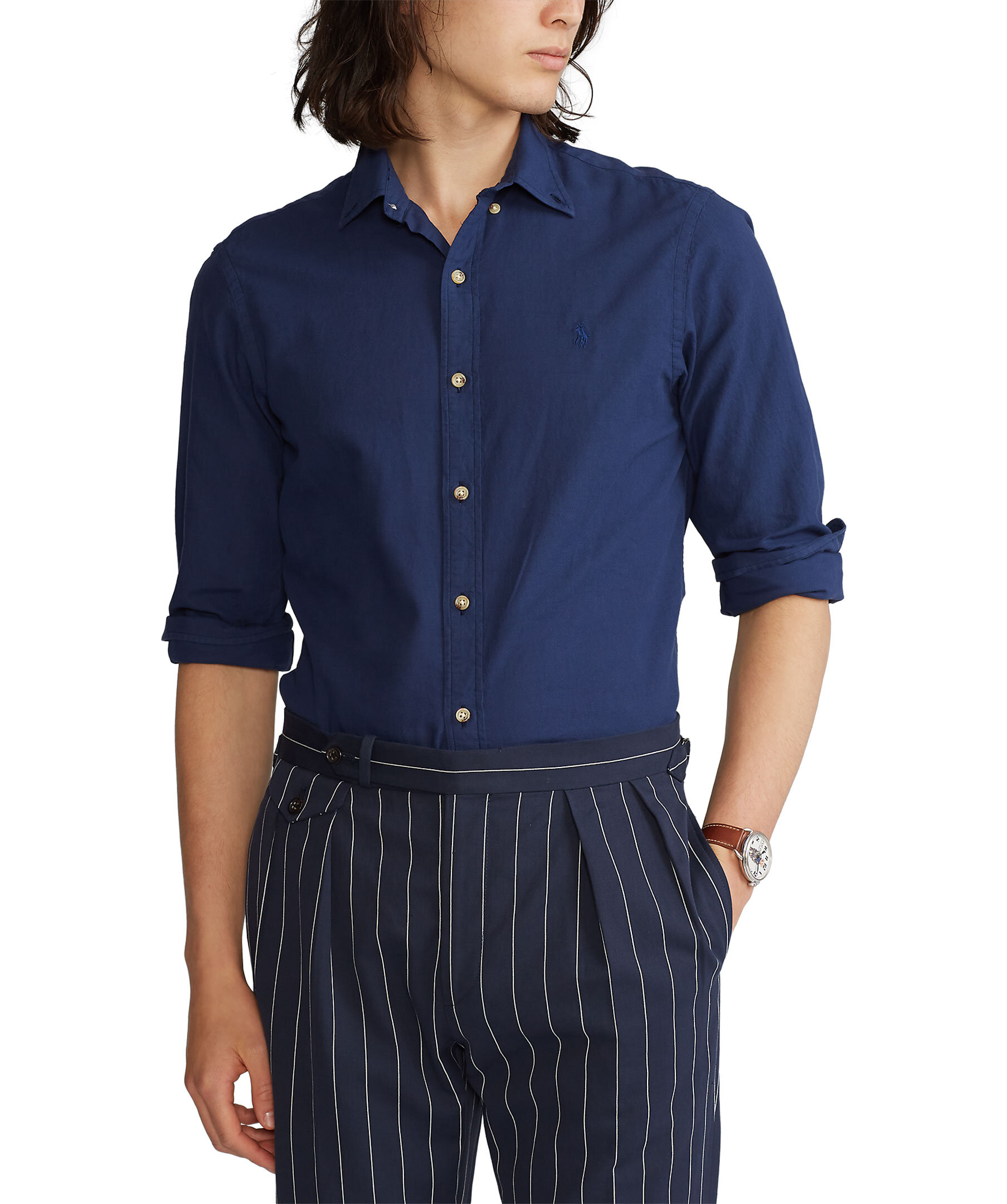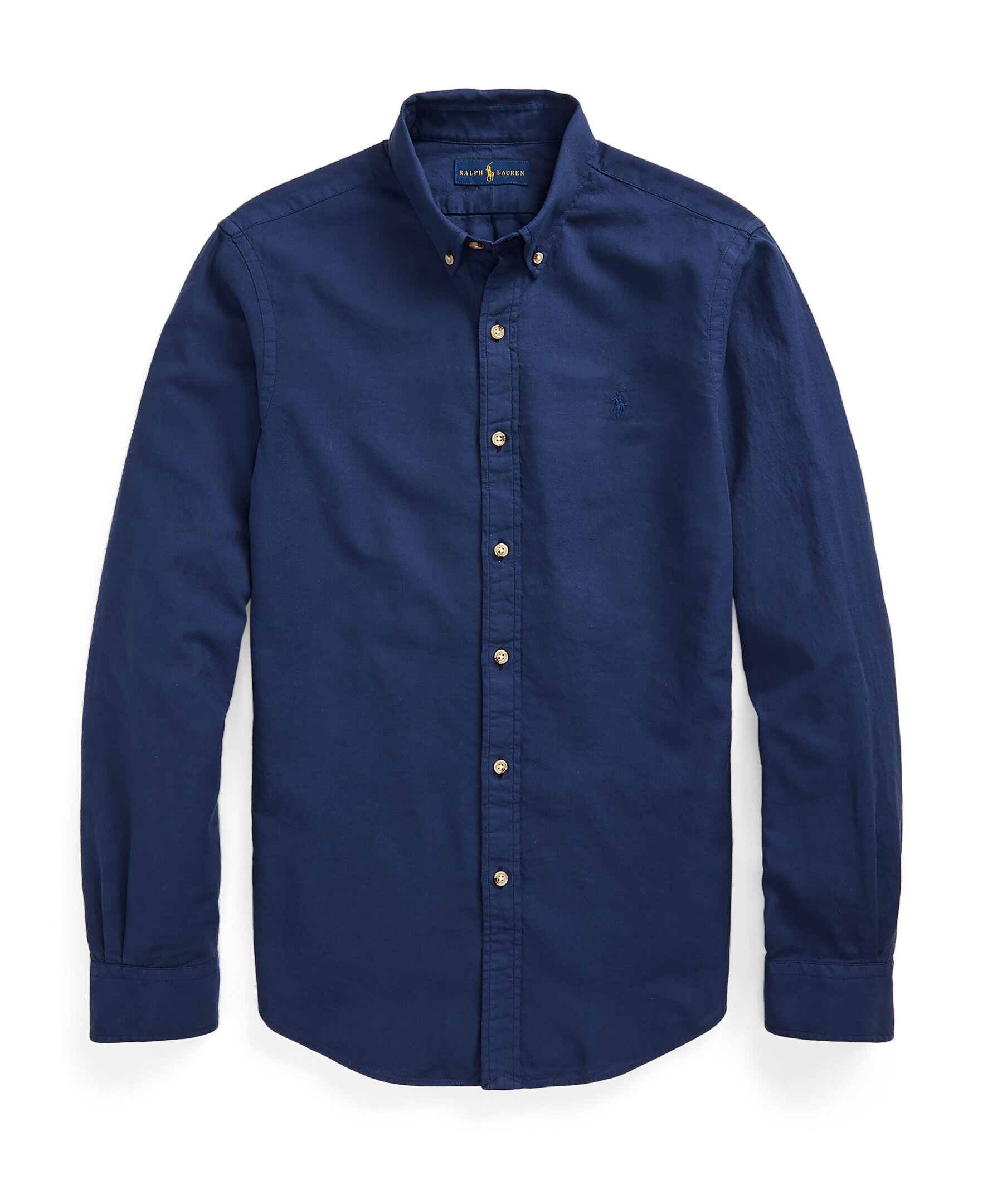 Marinblå skjorta från Polo Ralph Lauren i slim fit modell. Tillverkad i tunt bomullsmaterial. Button down-krage, beigea knappar fram, på kragen och i ärmslut samt broderad logotyp i ton-i-ton på bröstet.