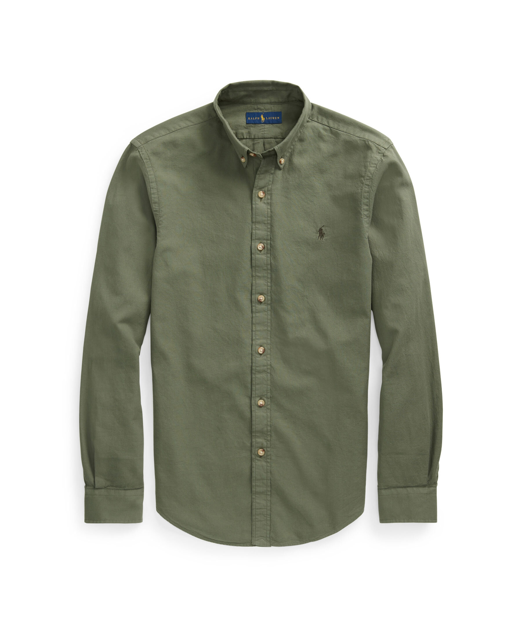Grön skjorta i slim fit modell och tillverkad i ett texturerat bomullstyg från Polo Ralph Lauren. Button-down krage, knappslå och långa ärmar med manschetter och knäppning. Delat bak ok med ett veck ger en bekväm passform, signaturbroderad häst på vänster bröst.
