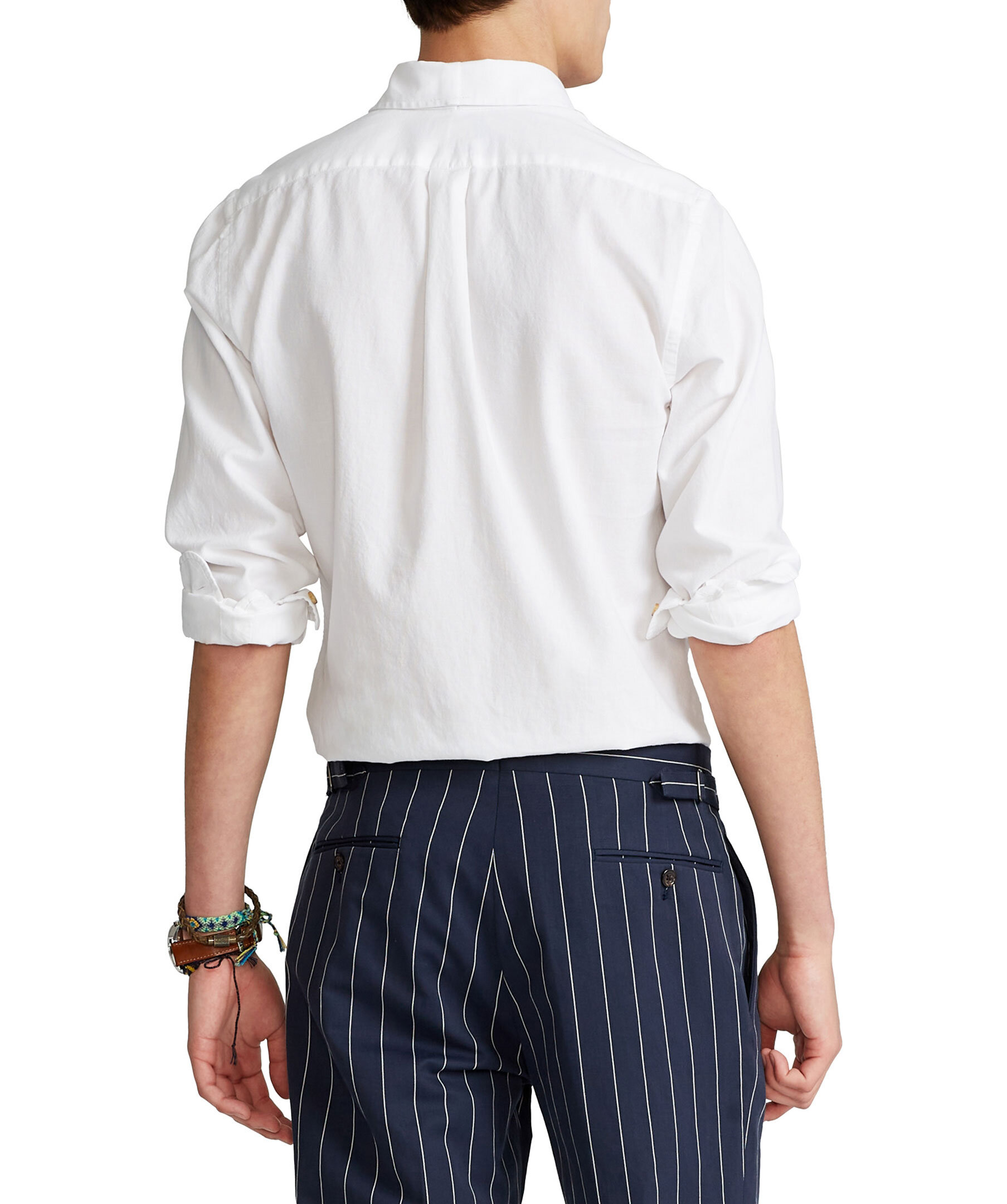 Vit skjorta i slim fit modell och tillverkad i ett texturerat bomullstyg från Polo Ralph Lauren. Button-down krage, knappslå och långa ärmar med manschetter och knäppning. Delat bak ok med ett veck ger en bekväm passform, signaturbroderad häst på vänster bröst. Modellen är 185 cm och bär storlek medium .