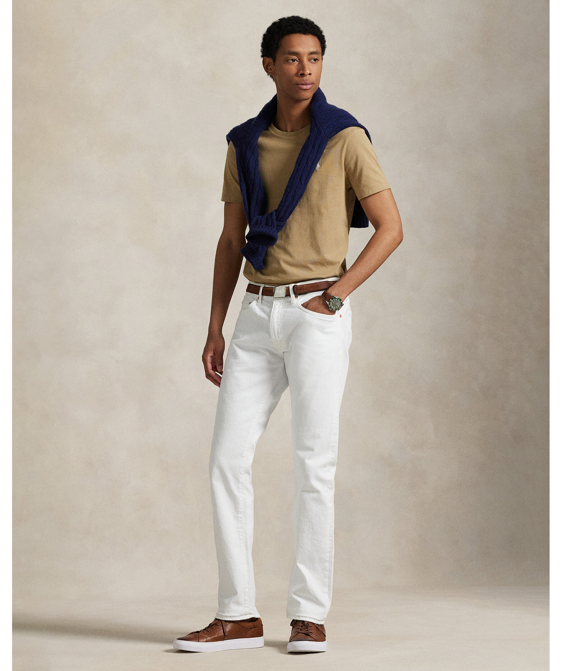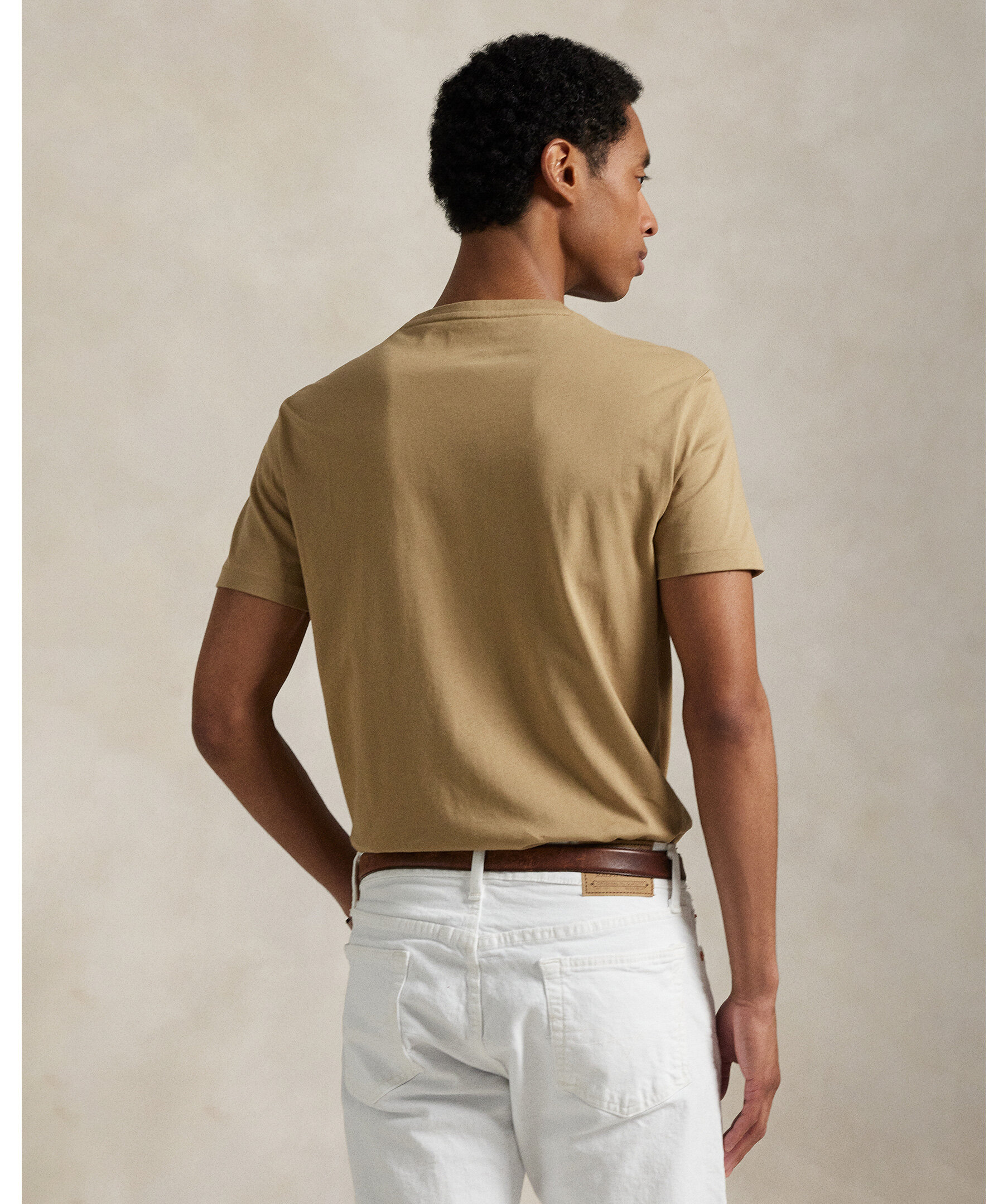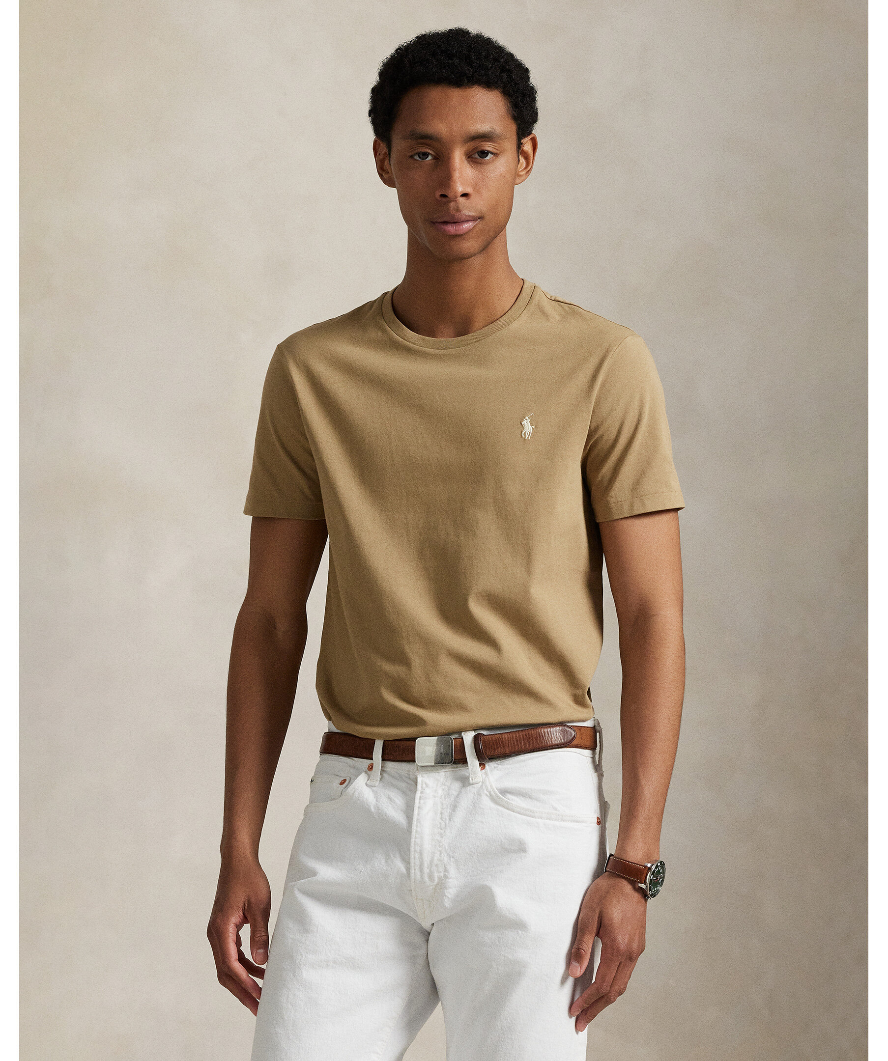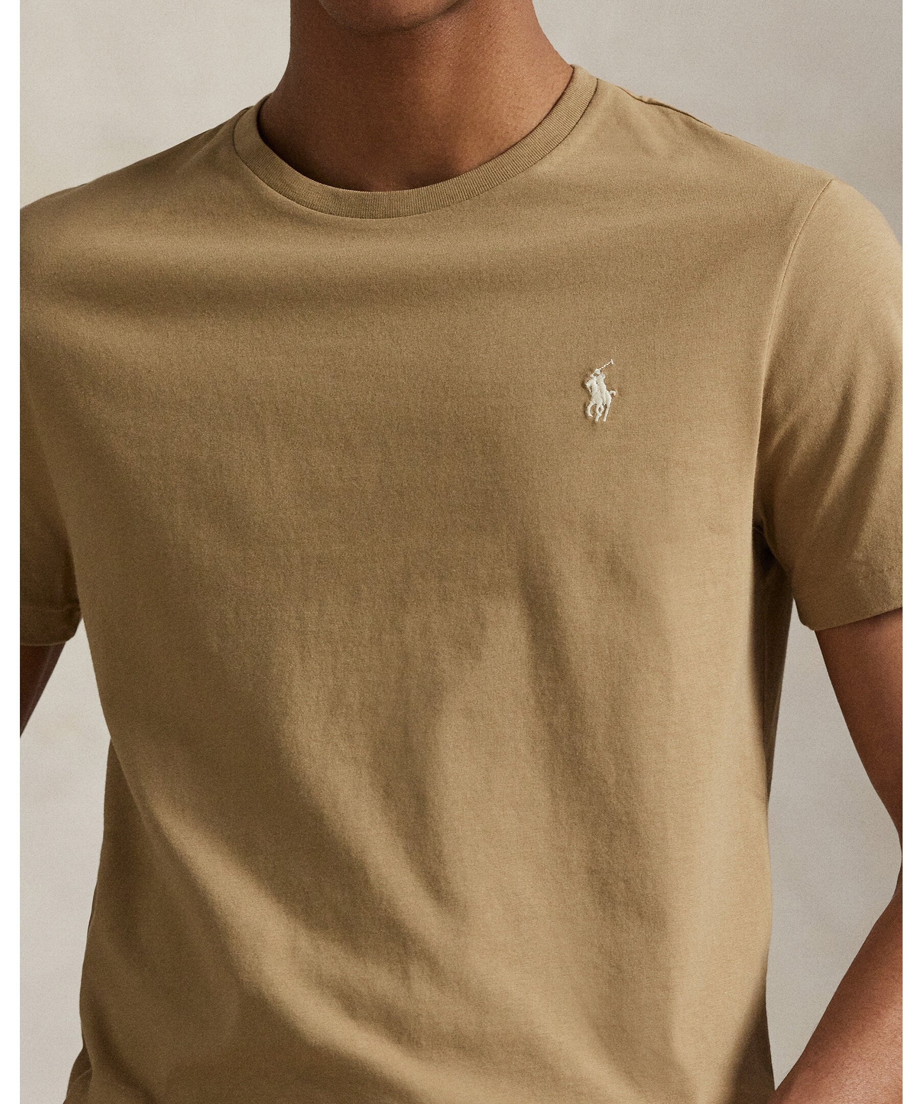 Ljusbrun t-shirt från Polo Ralph Lauren. Denna bomulls-T-shirt är tvättad för en perfekt insliten look och känsla.