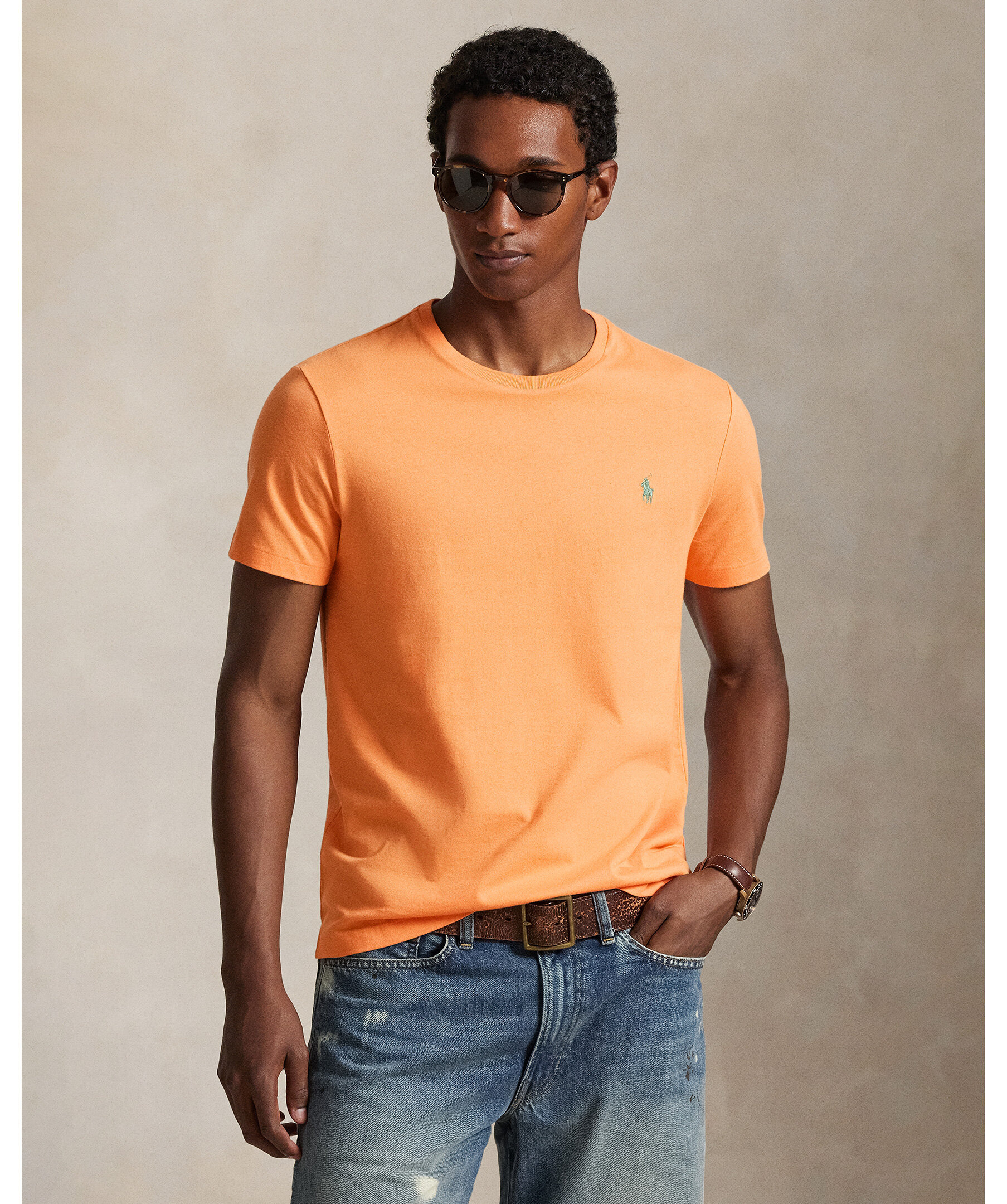 Orange t-shirt från Polo Ralph Lauren. Denna bomulls-T-shirt är tvättad för en perfekt insliten look och känsla.
