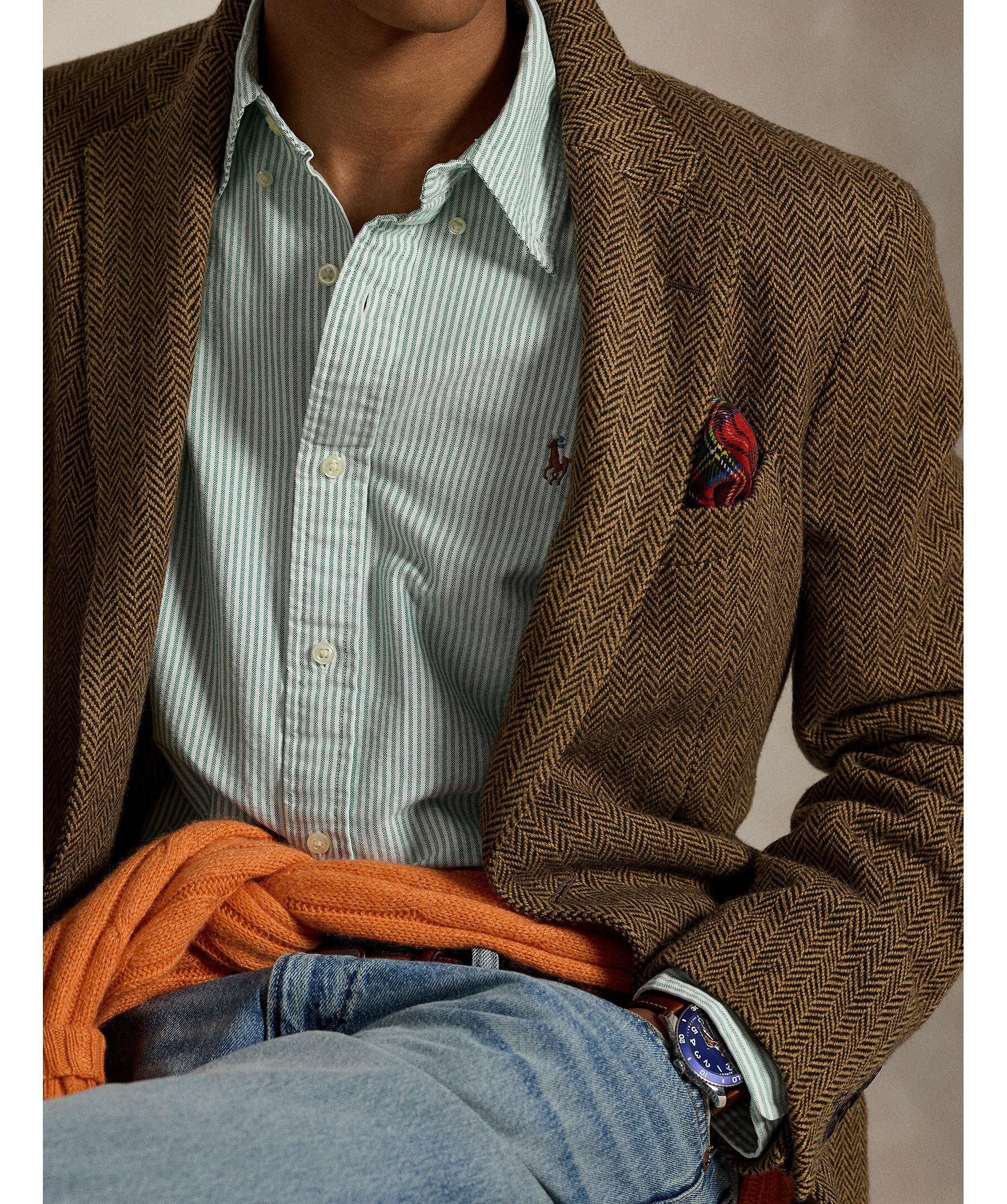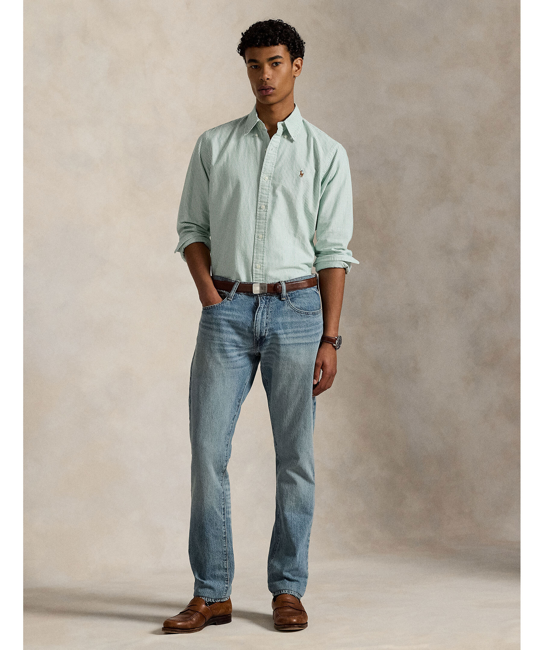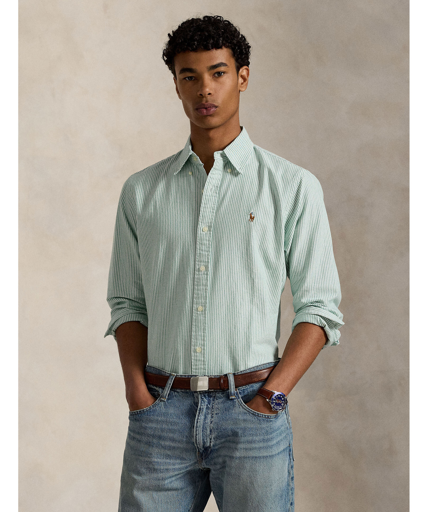 En klassisk oxfordskjorta från Polo Ralph Lauren i smalare “custom fit”-passform med randigt mönster från Polo Ralph Lauren. Tillverkad i bomulls-oxford, med knappkrage och klockren preppy känsla — perfekt både till kontoret och i fritidsstilen.