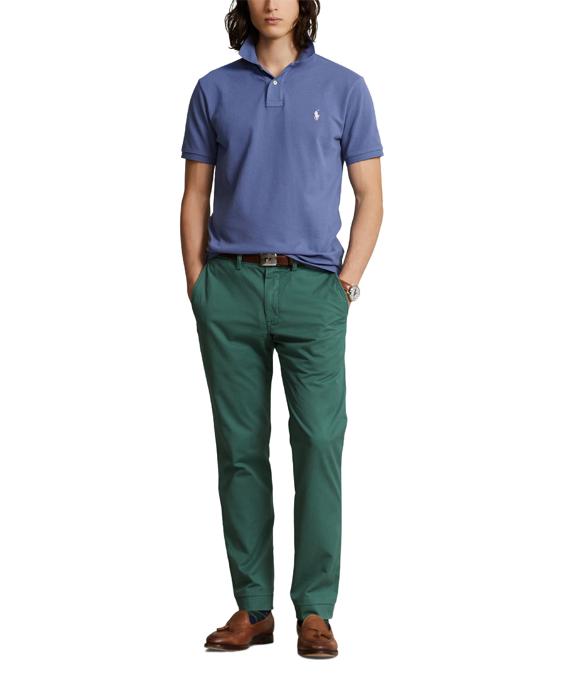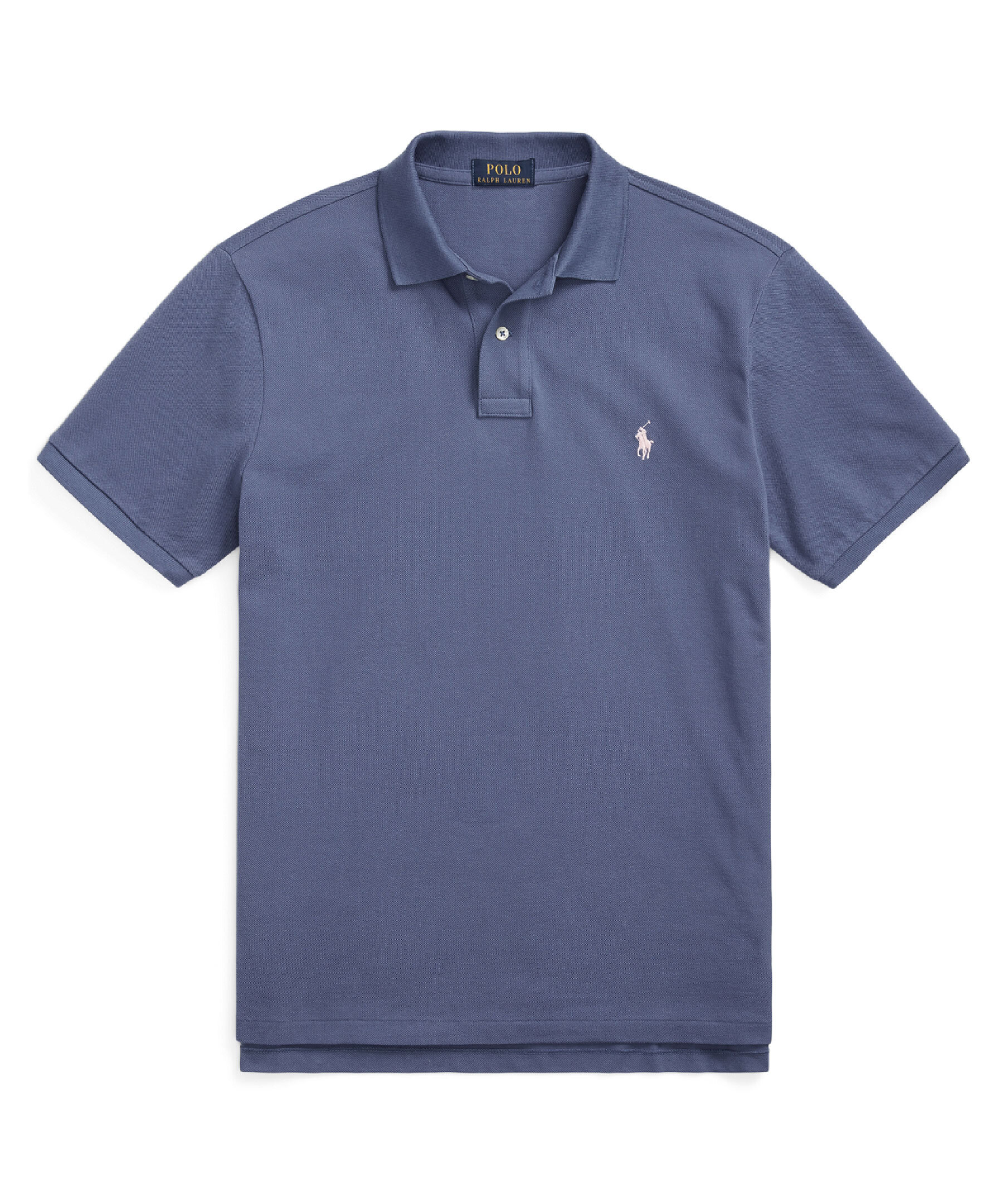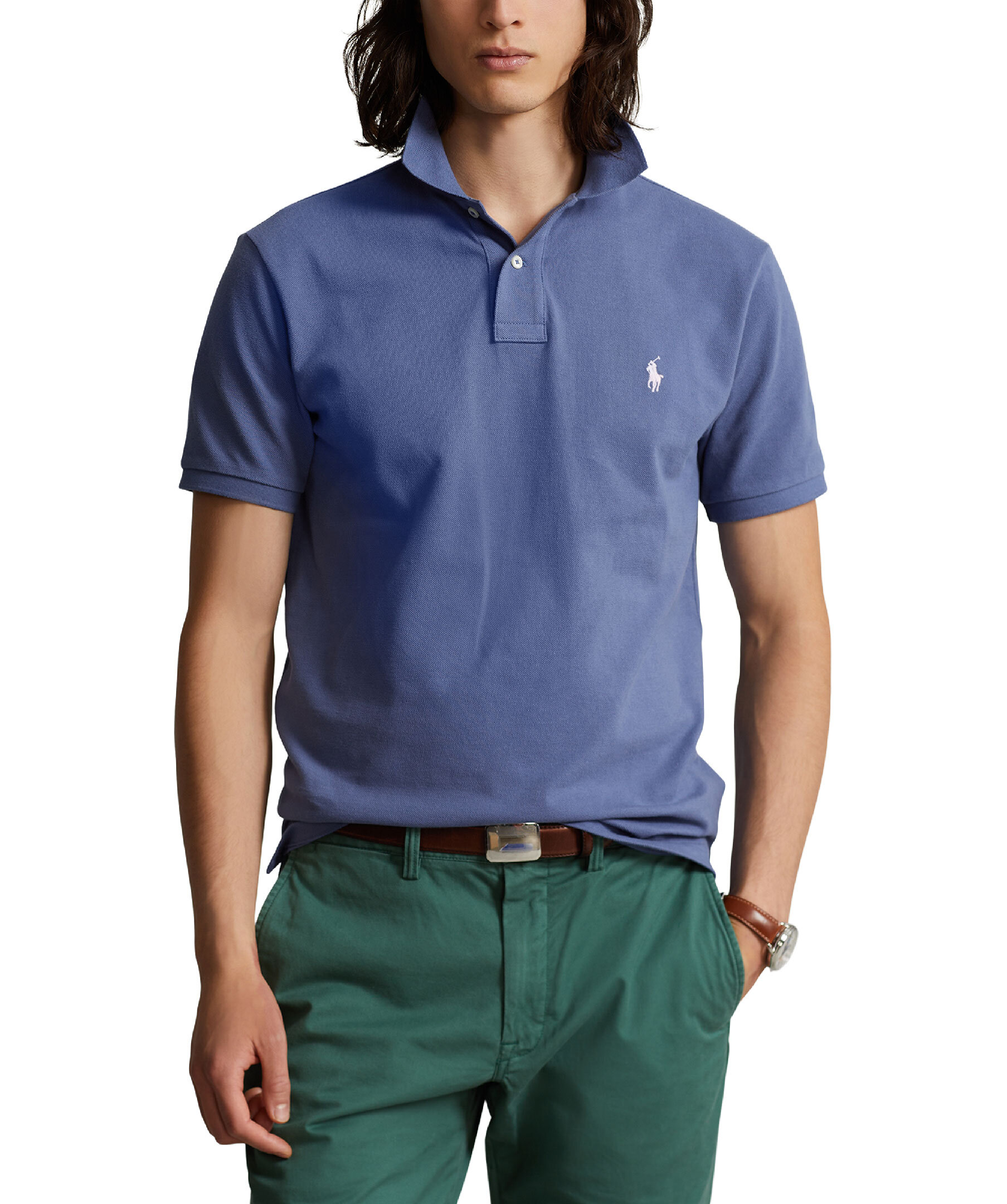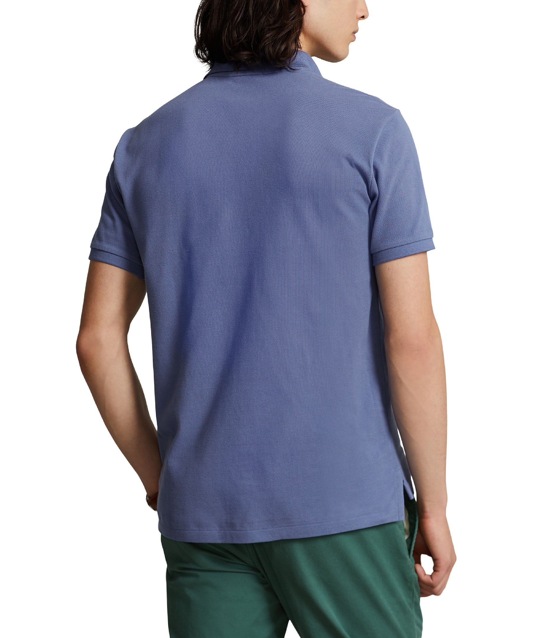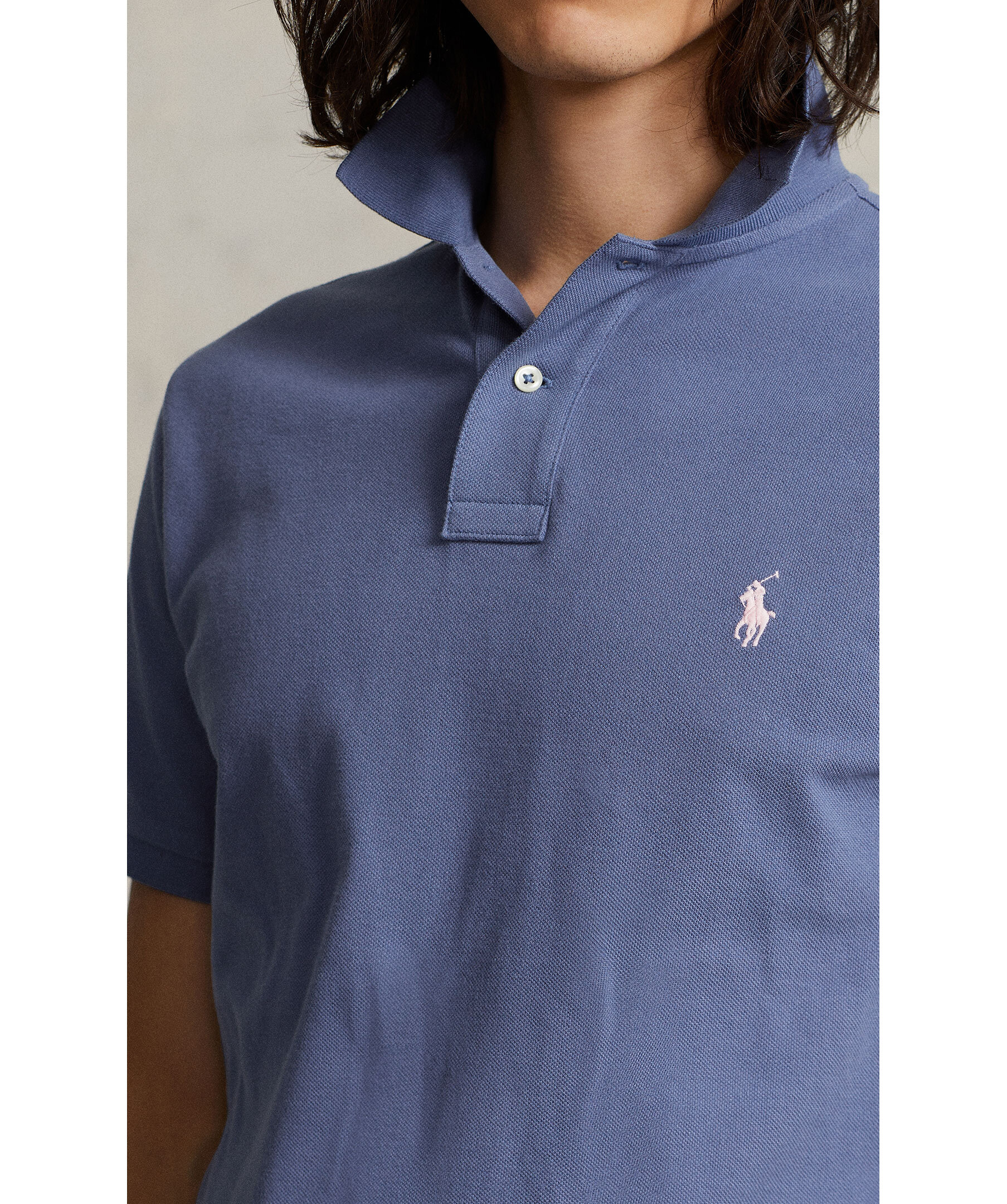 Blå, kortärmad piké från Polo Ralph Lauren. Ljusrosa, broderad logga på vänster bröst. Tillverkad i 100% bomull. Små slitsar på vardera sida. Custom slim fit.