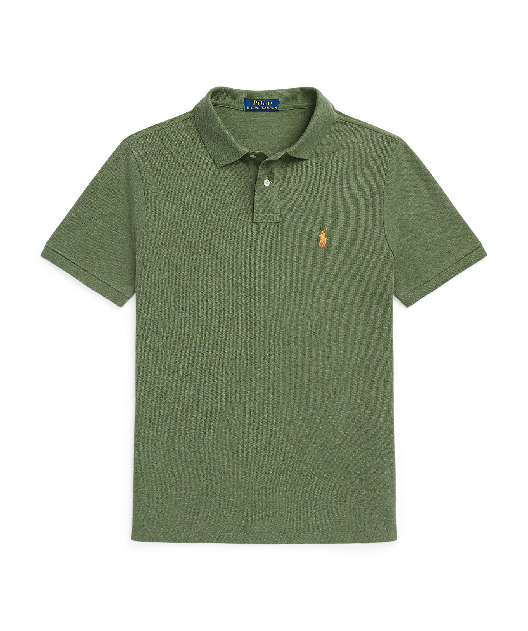 Grön, kortärmad piké från Polo Ralph Lauren. Orange, broderad logga på vänster bröst. Tillverkad i 100% bomull. Små slitsar på vardera sida. Custom slim fit.