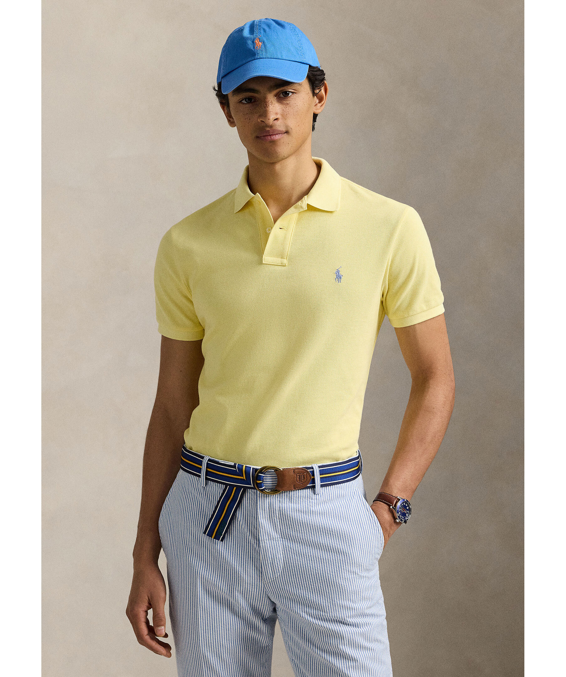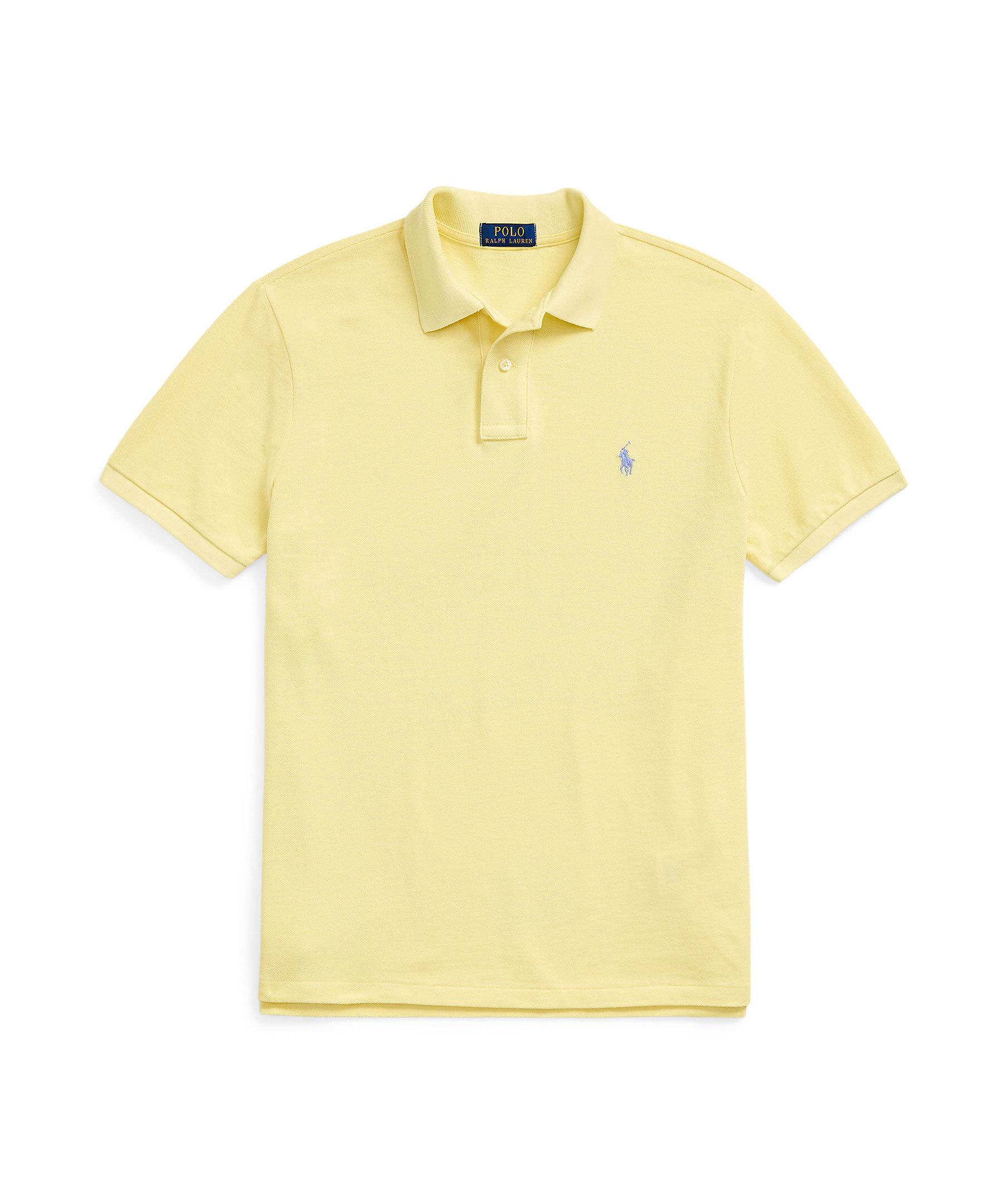 Gul piké från Polo Ralph Lauren. Broderad logotyp på vänster bröst. Ribbstickad krage, knäppning med två knappar. Tillverkad i 100% bomull. Korta slitsar i sidorna.
