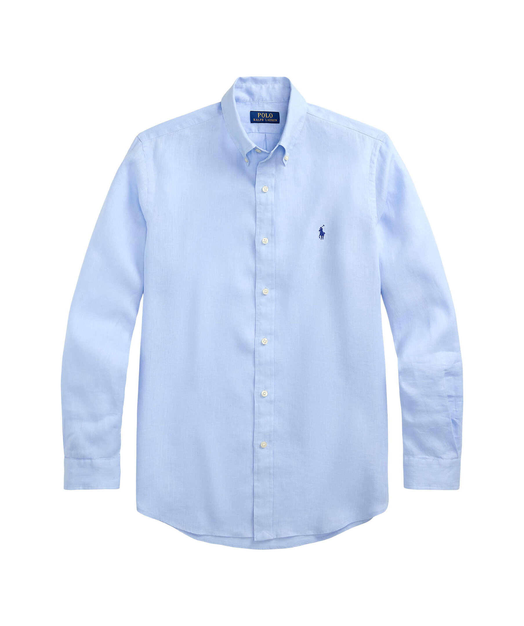 Blå skjorta från Polo Ralph Lauren. Skjortan har knäppning framtill, rundade avslut och en röd broderat logotyp på bröstet. Tillverkad av 100% linne.