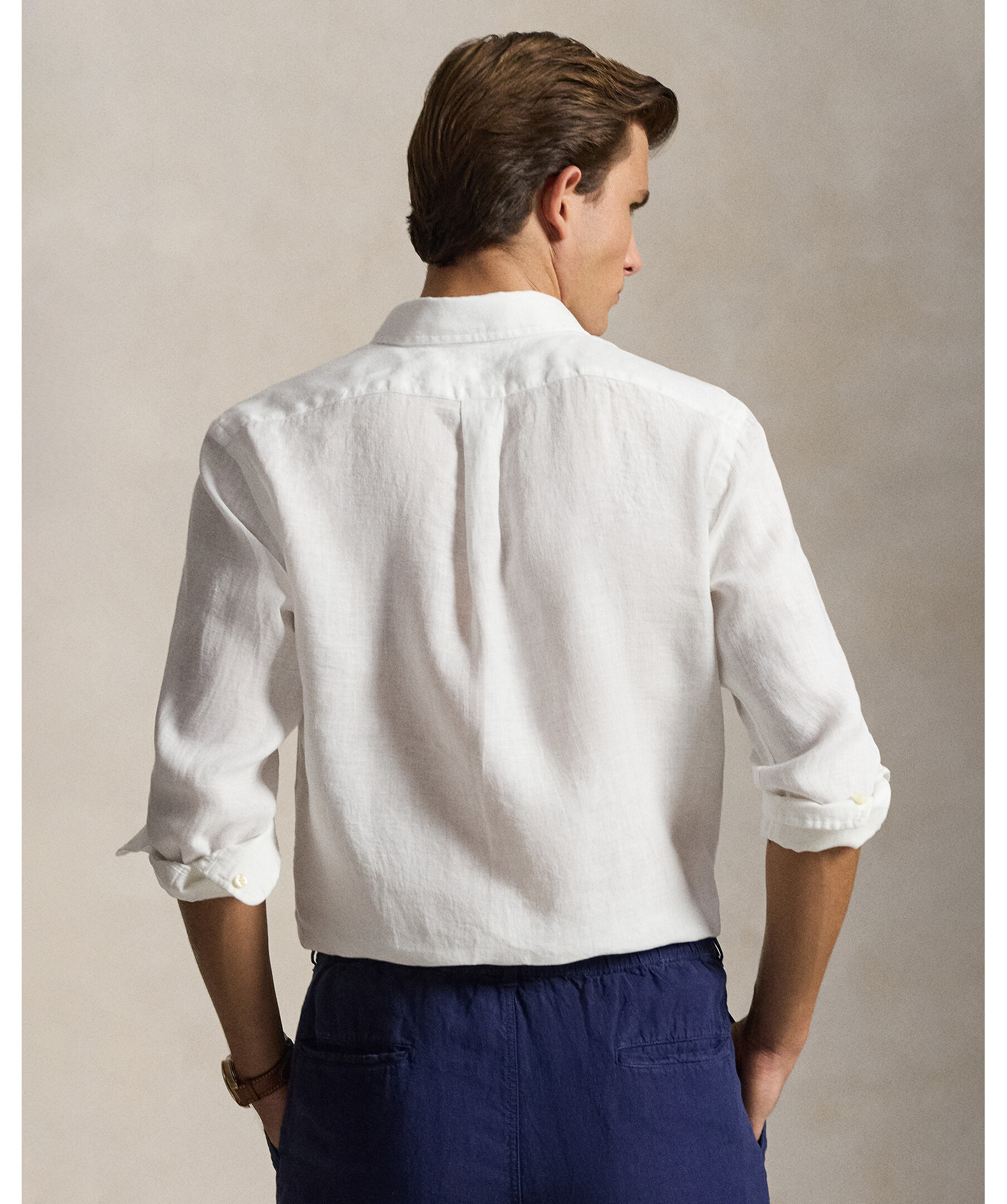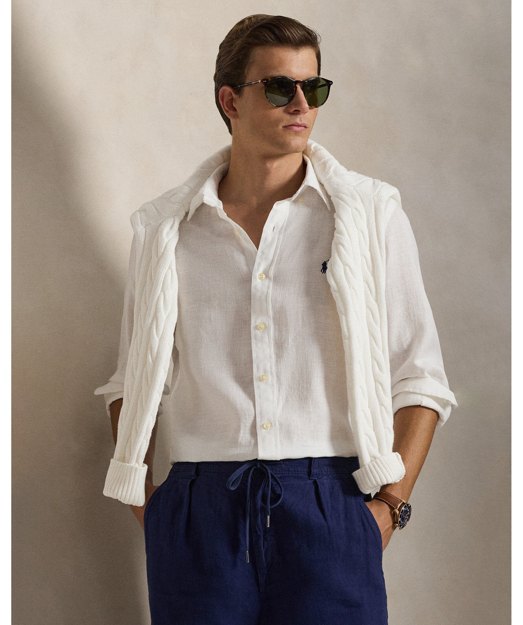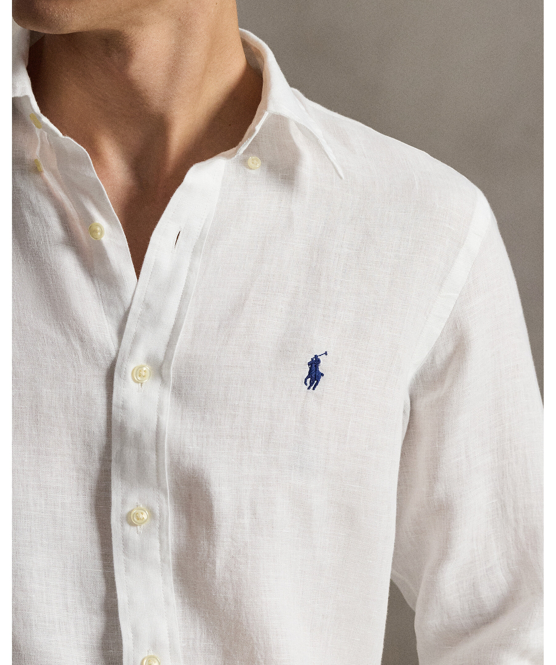 Vit linneskjorta från Polo Ralph Lauren. Lätt, andningsbart linnematerial gör den här skjortan perfekt för varma dagar.